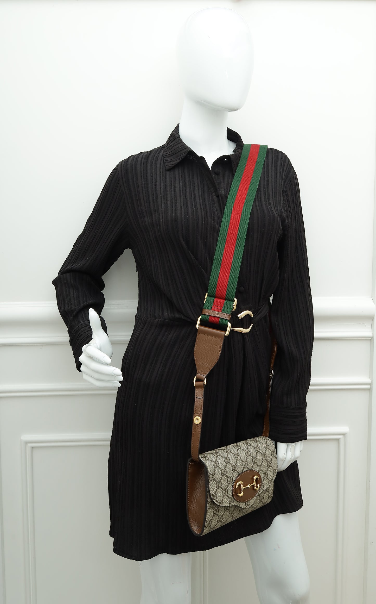Material: Ebony GG Supreme Canvas and Brown Leather Trim with Horsebit Detail and Green/Red Web Strap