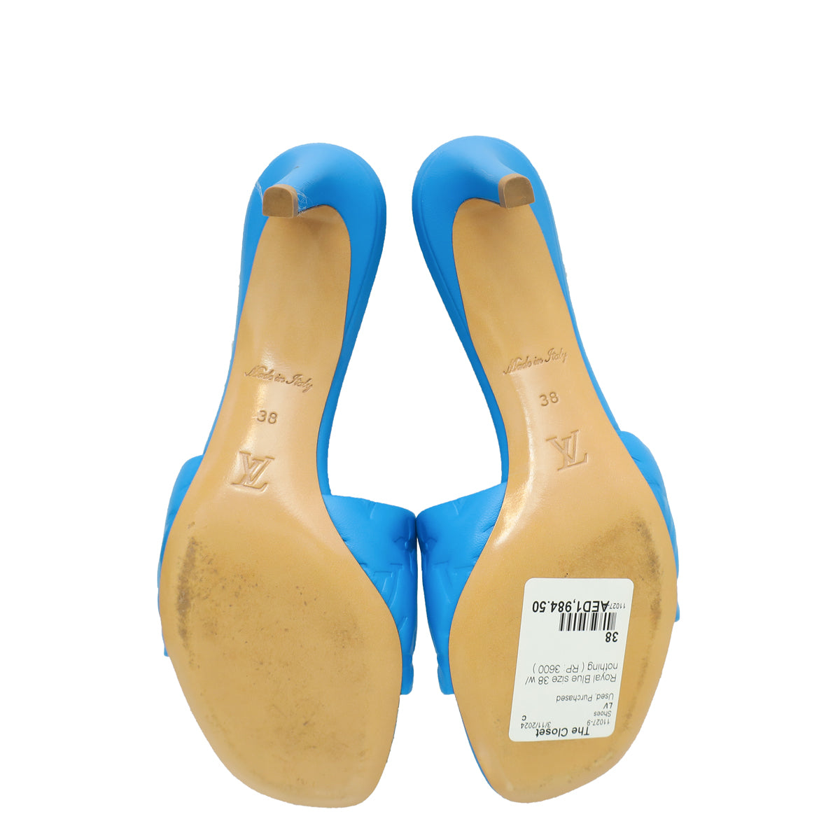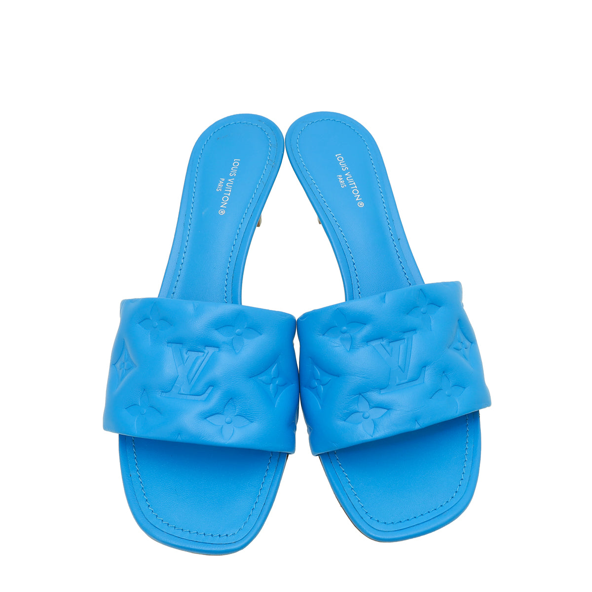 Louis Vuitton Royal Blue Monogram Embossed Revival Mules 38