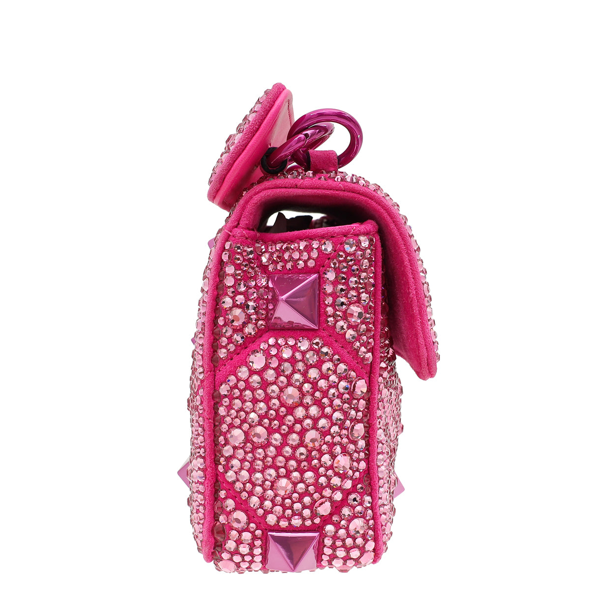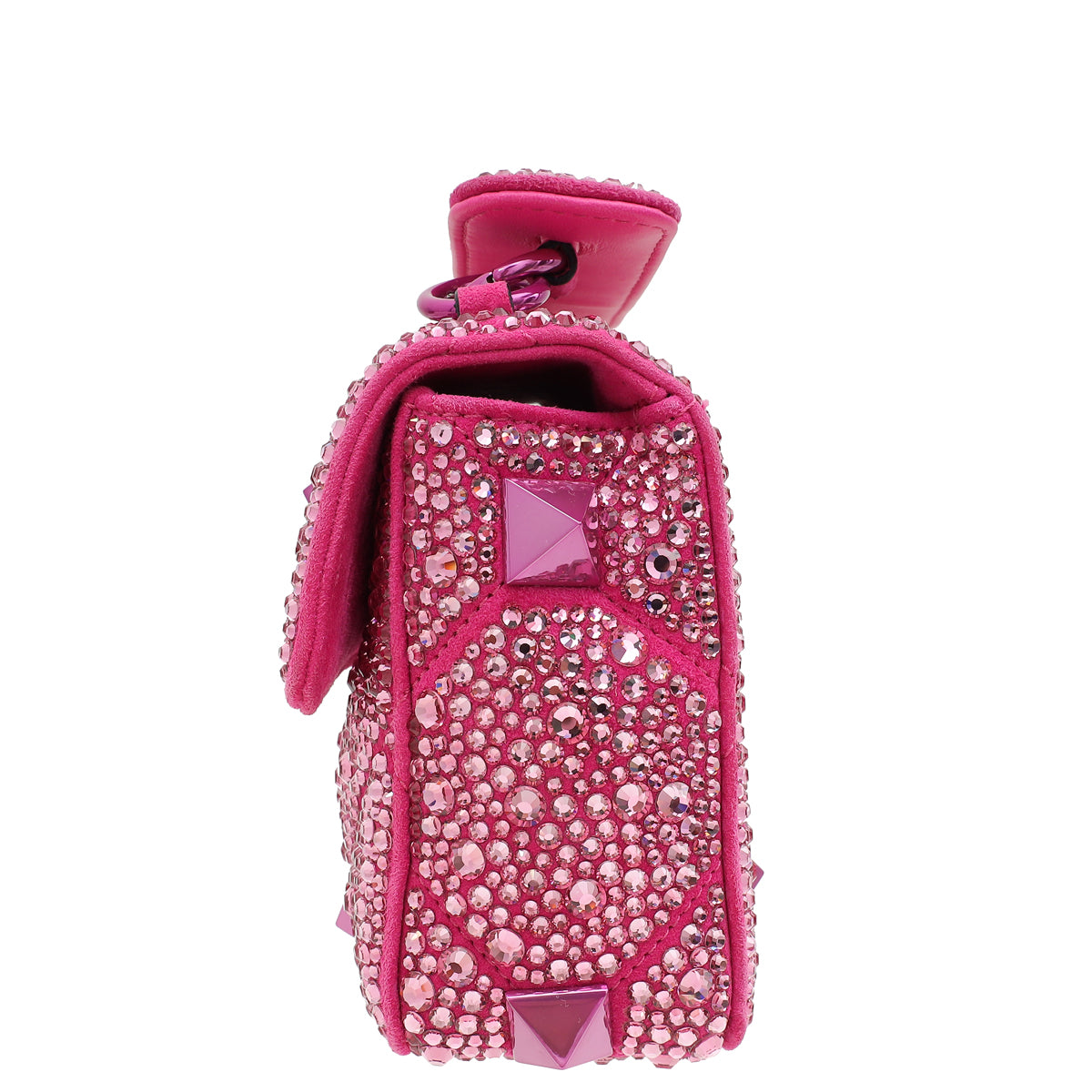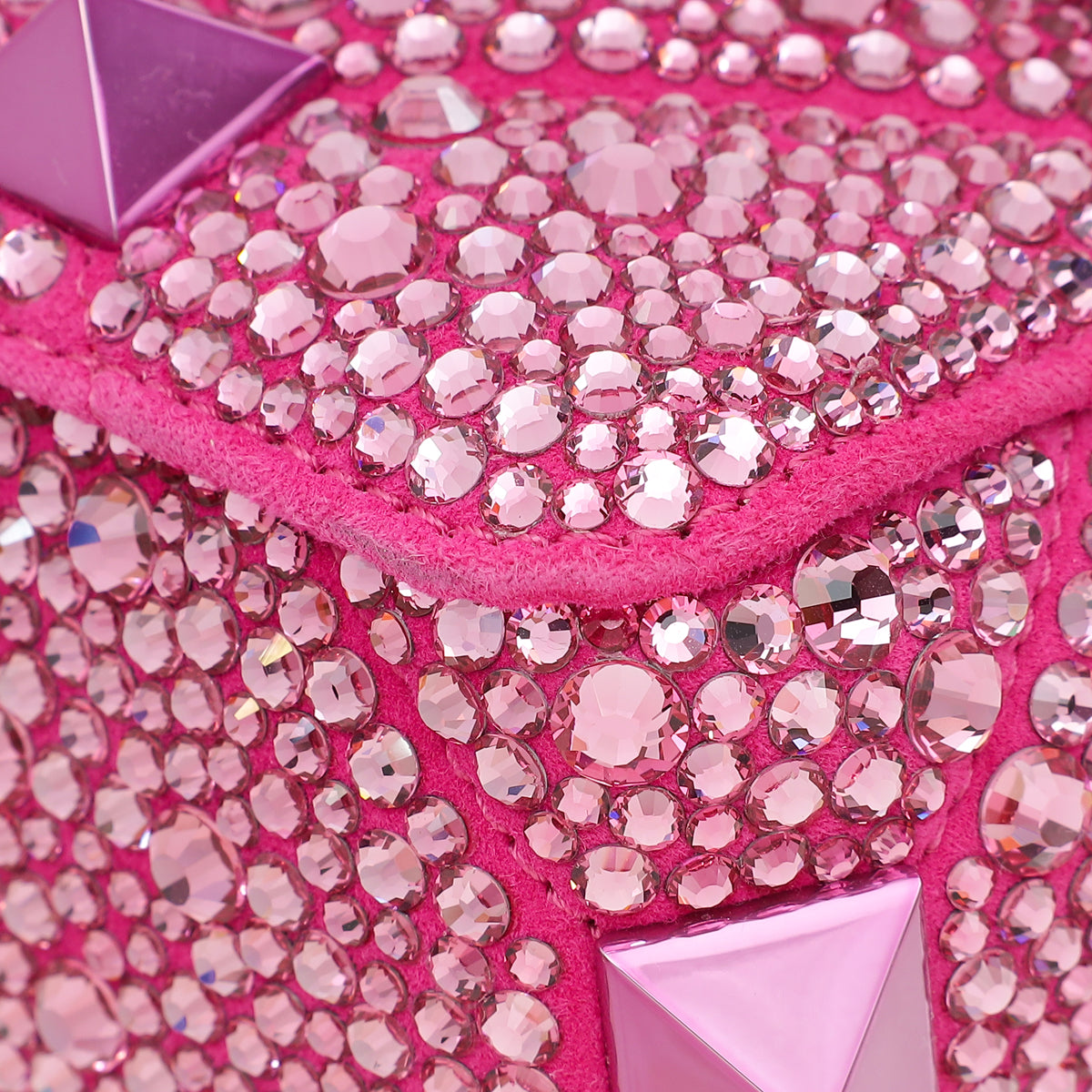 Valentino Hot Pink Small Roman The Stud Crystal Shoulder Bag
