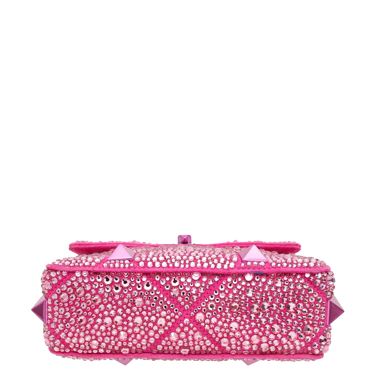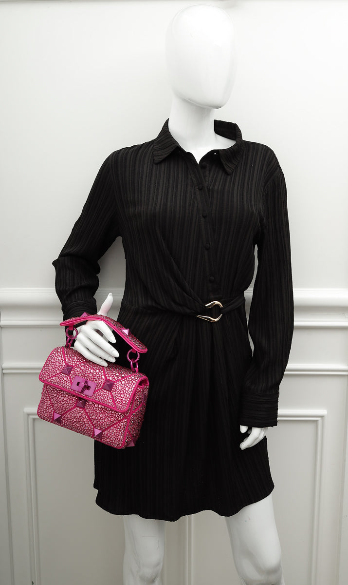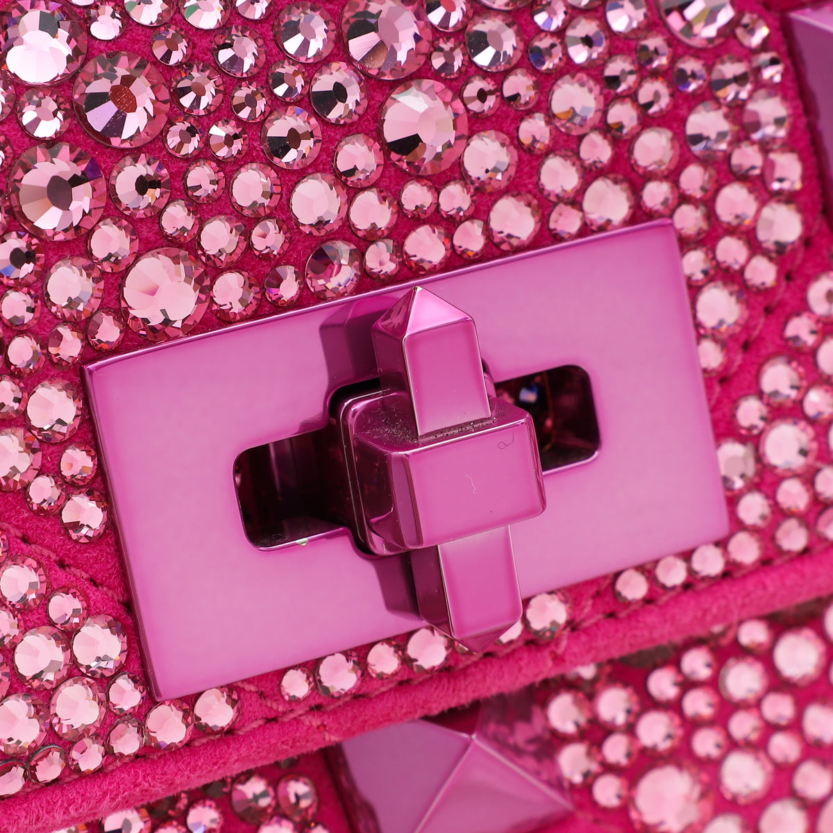 Valentino Hot Pink Small Roman The Stud Crystal Shoulder Bag