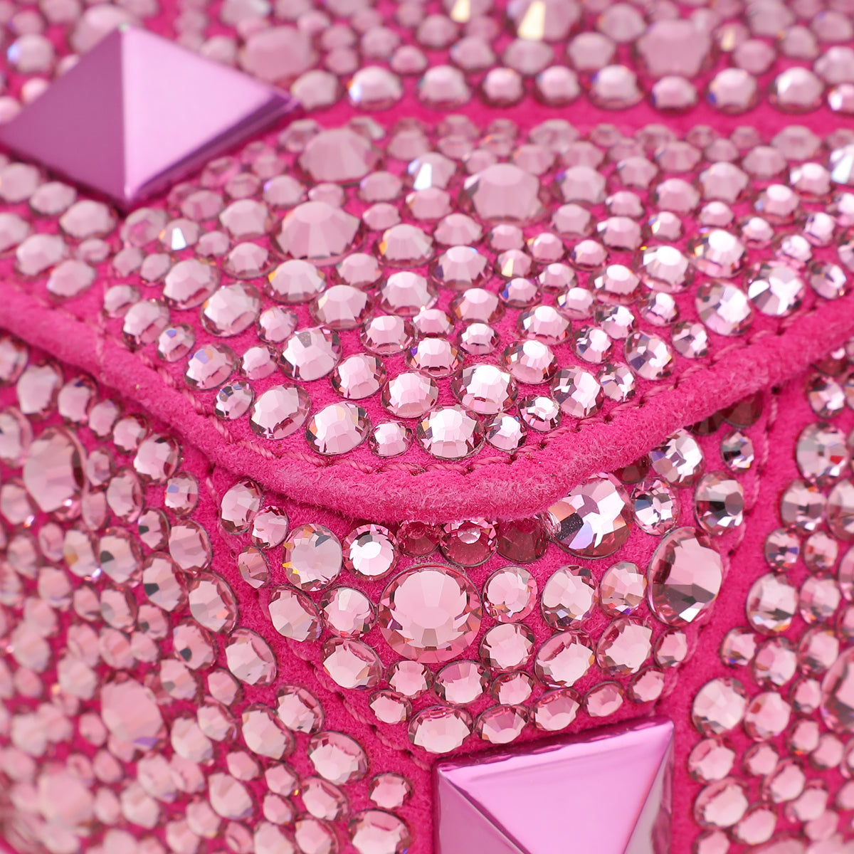 - Material: Hot Pink Suede and Leather Trim with Crystals