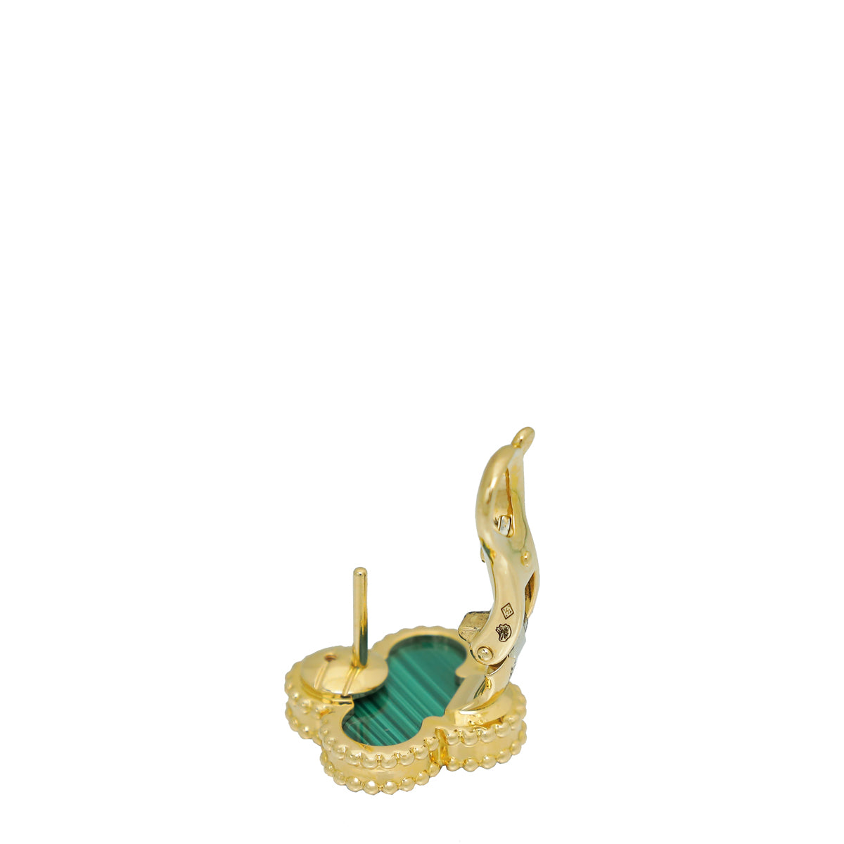 Van Cleef & Arpels 18K Yellow Gold Malachite Vintage Alhambra Earrings
