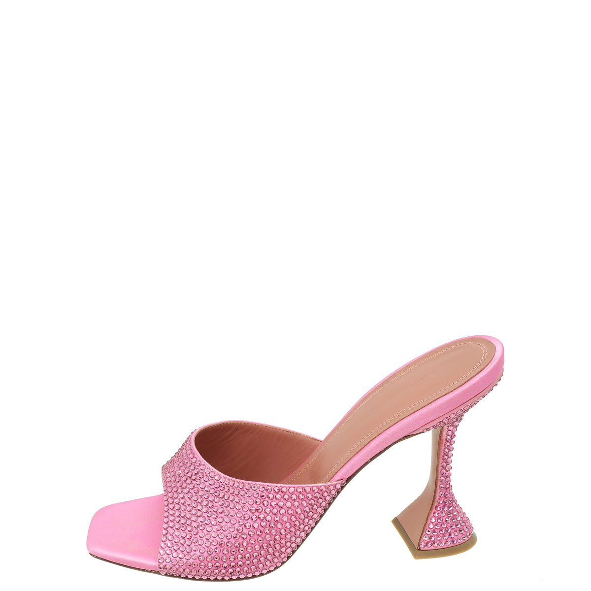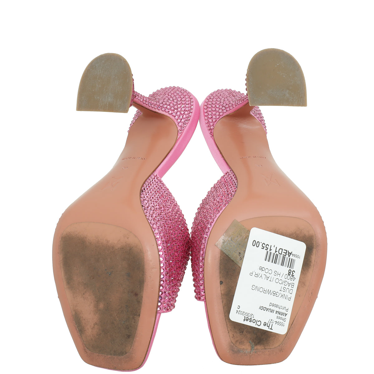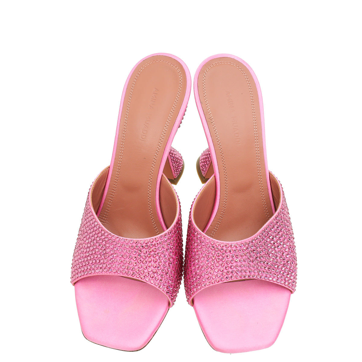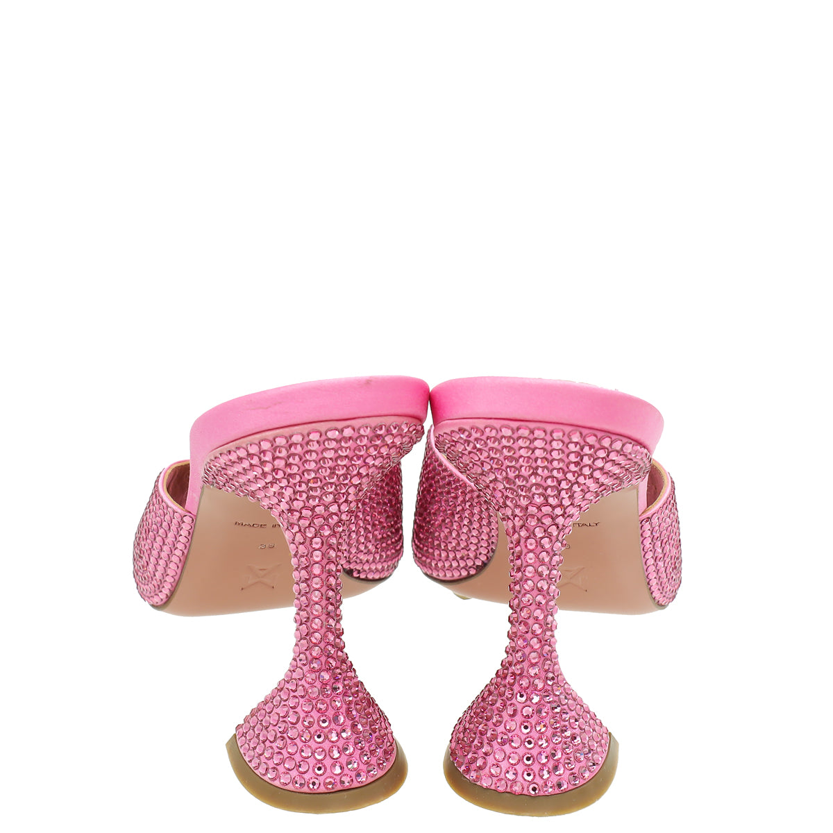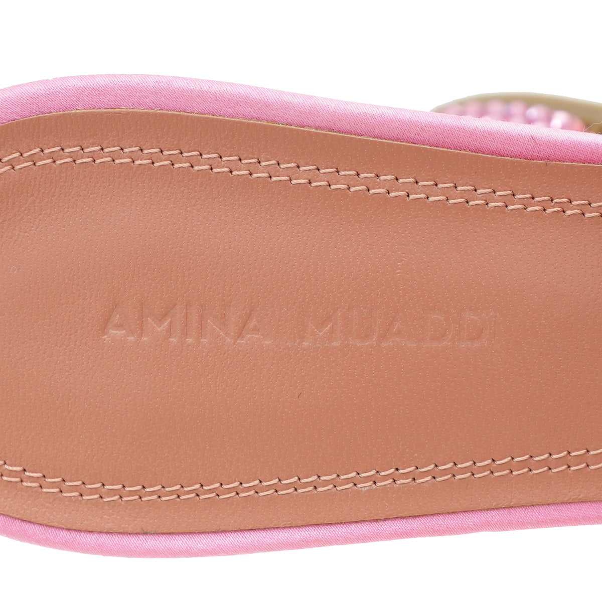 Amina Muaddi Pink Caroline 95 Satin Crystal-Embellished Mules 38