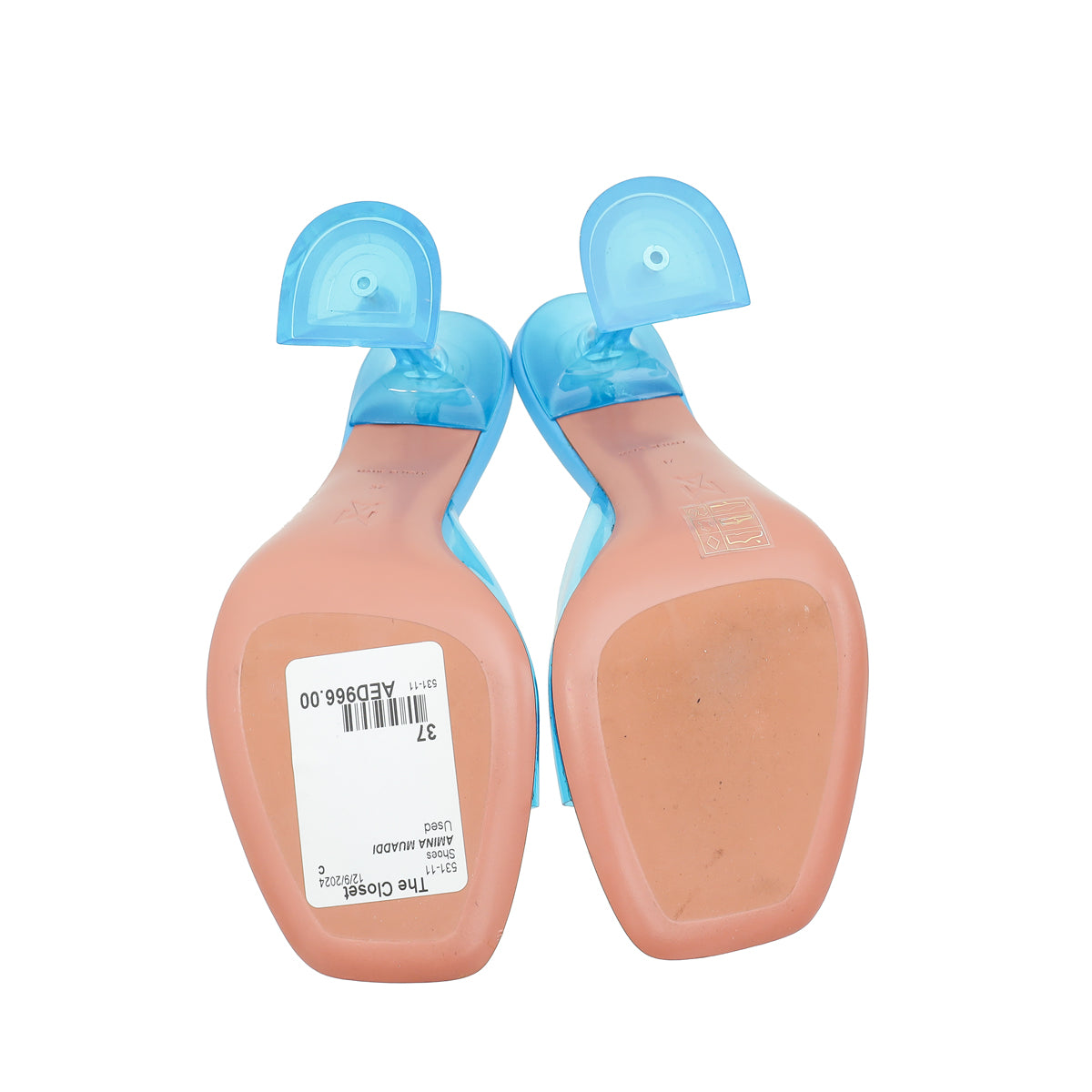 Amina Muaddi Blue Lupita Glass PVC Transparent Slipper 37
