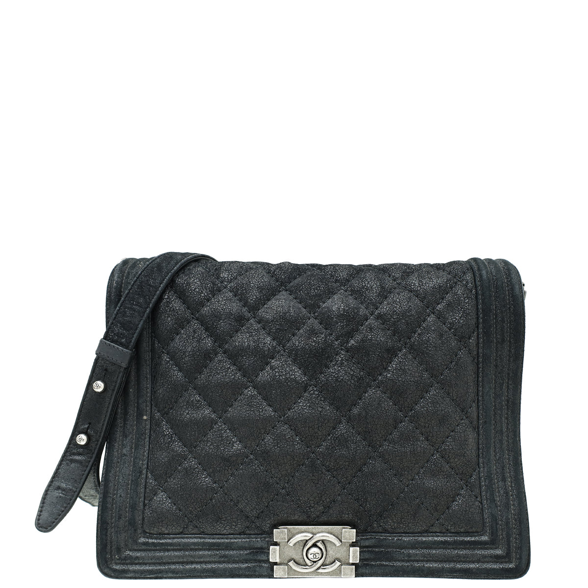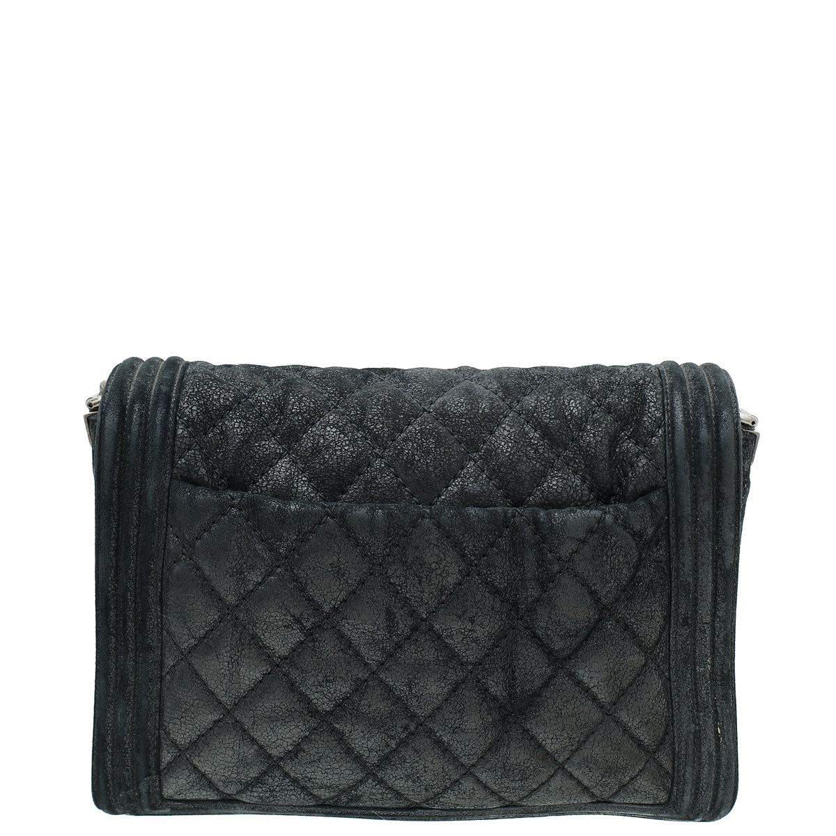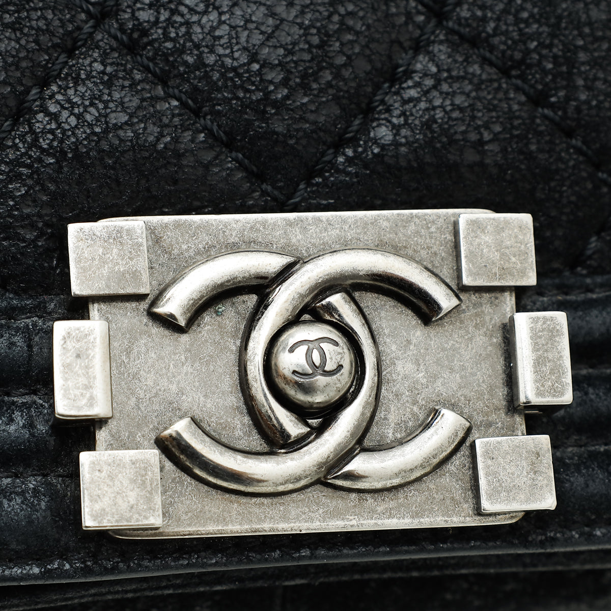 Chanel Black Goatskin Quilted Medium Gentle Boy Flap Bag
