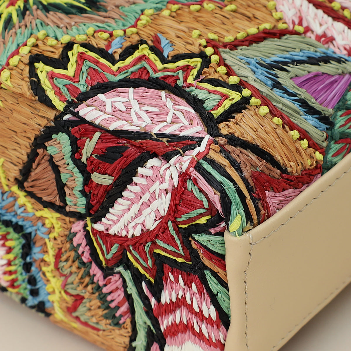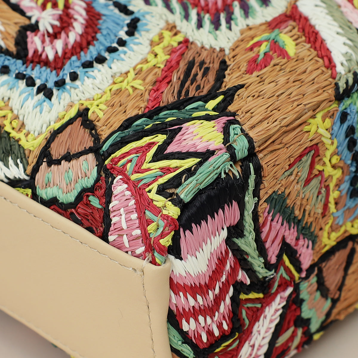 - Material: Beige Multicolor/Natural Raffia Butterfly Printed and Embroidered Calfskin Leather