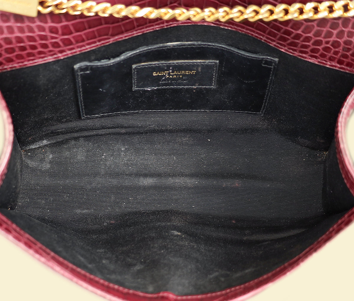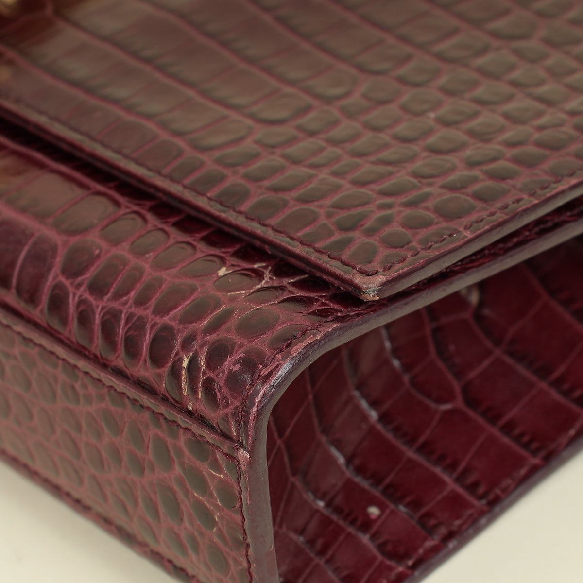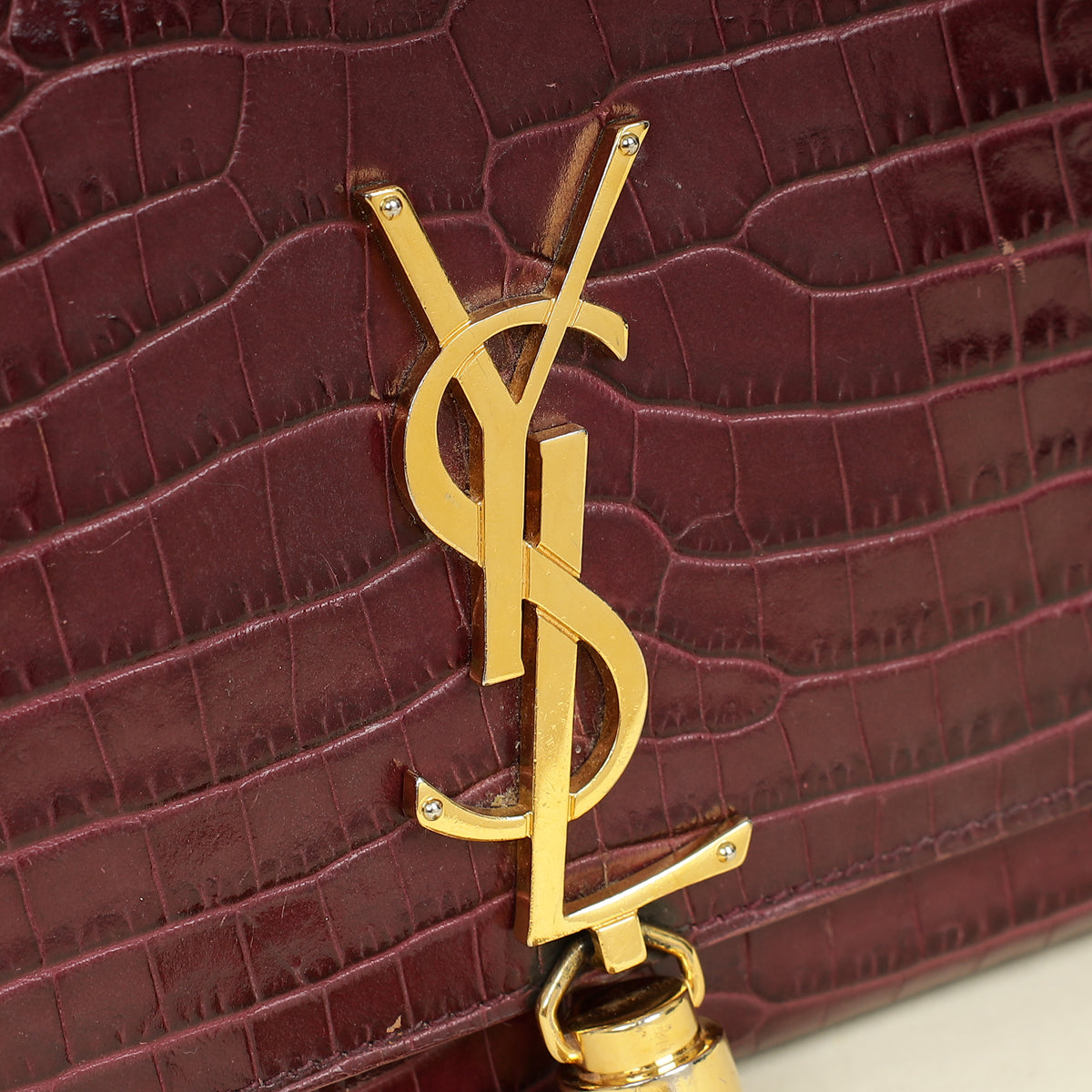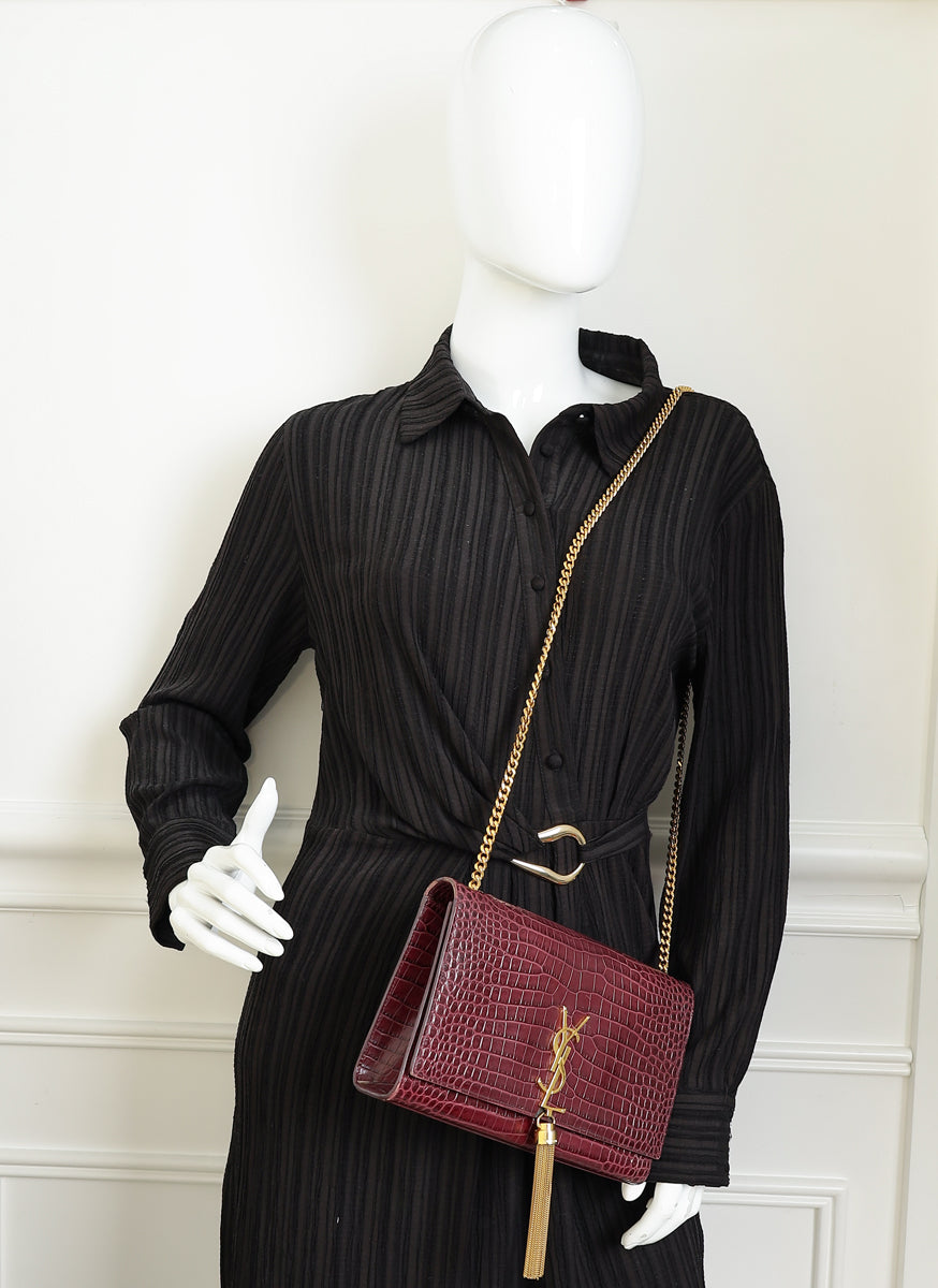 YSL Burgundy Croco Embossed Kate Tassel Medium Chain Bag