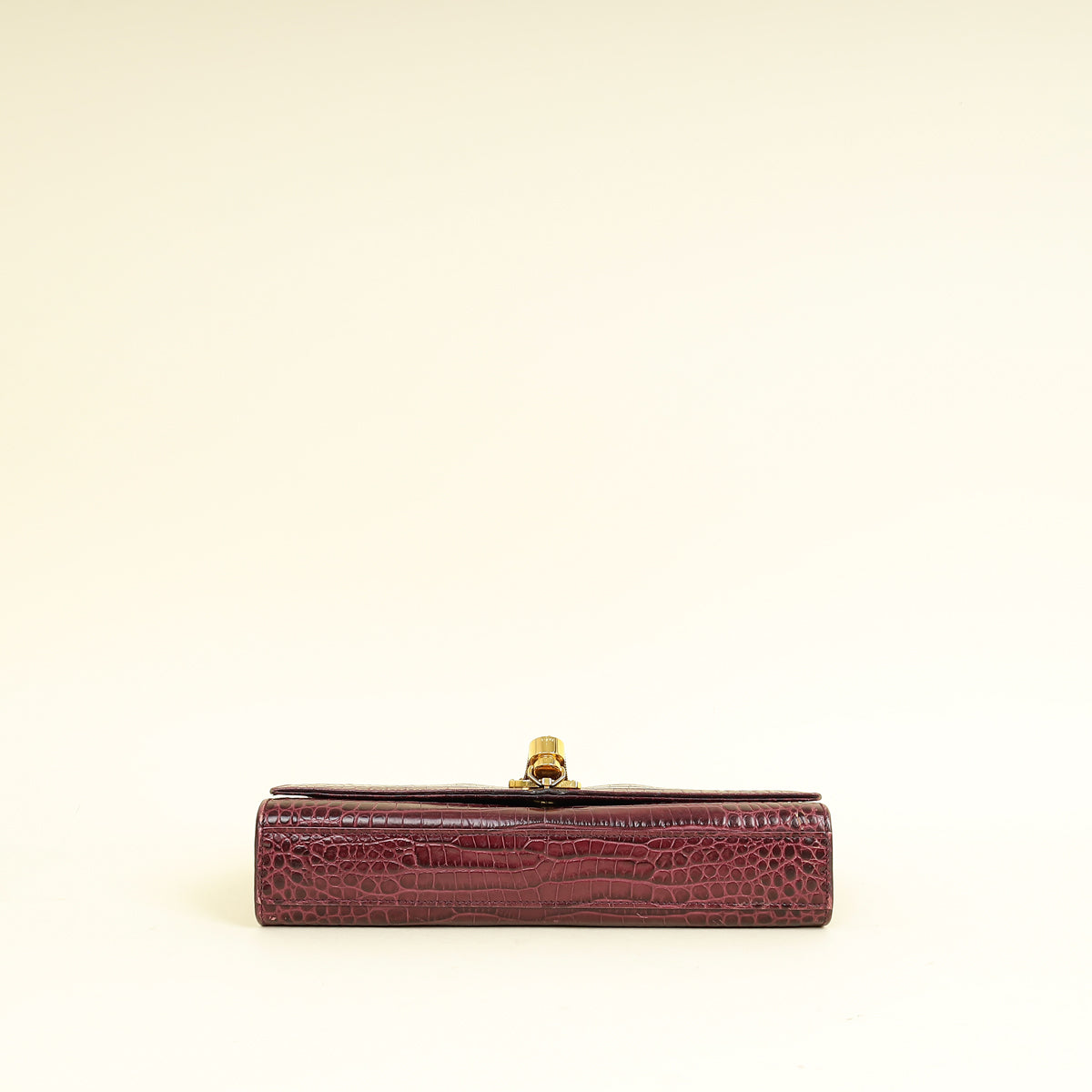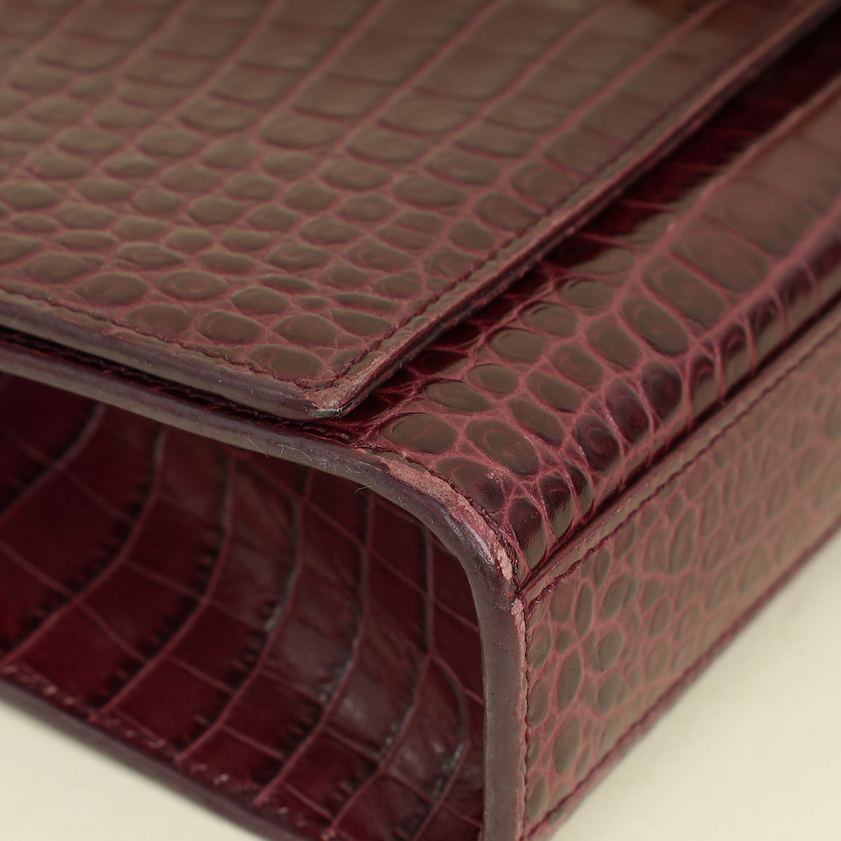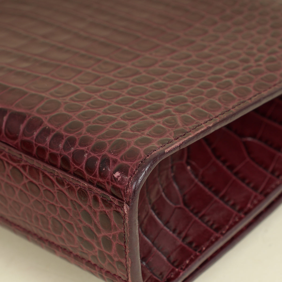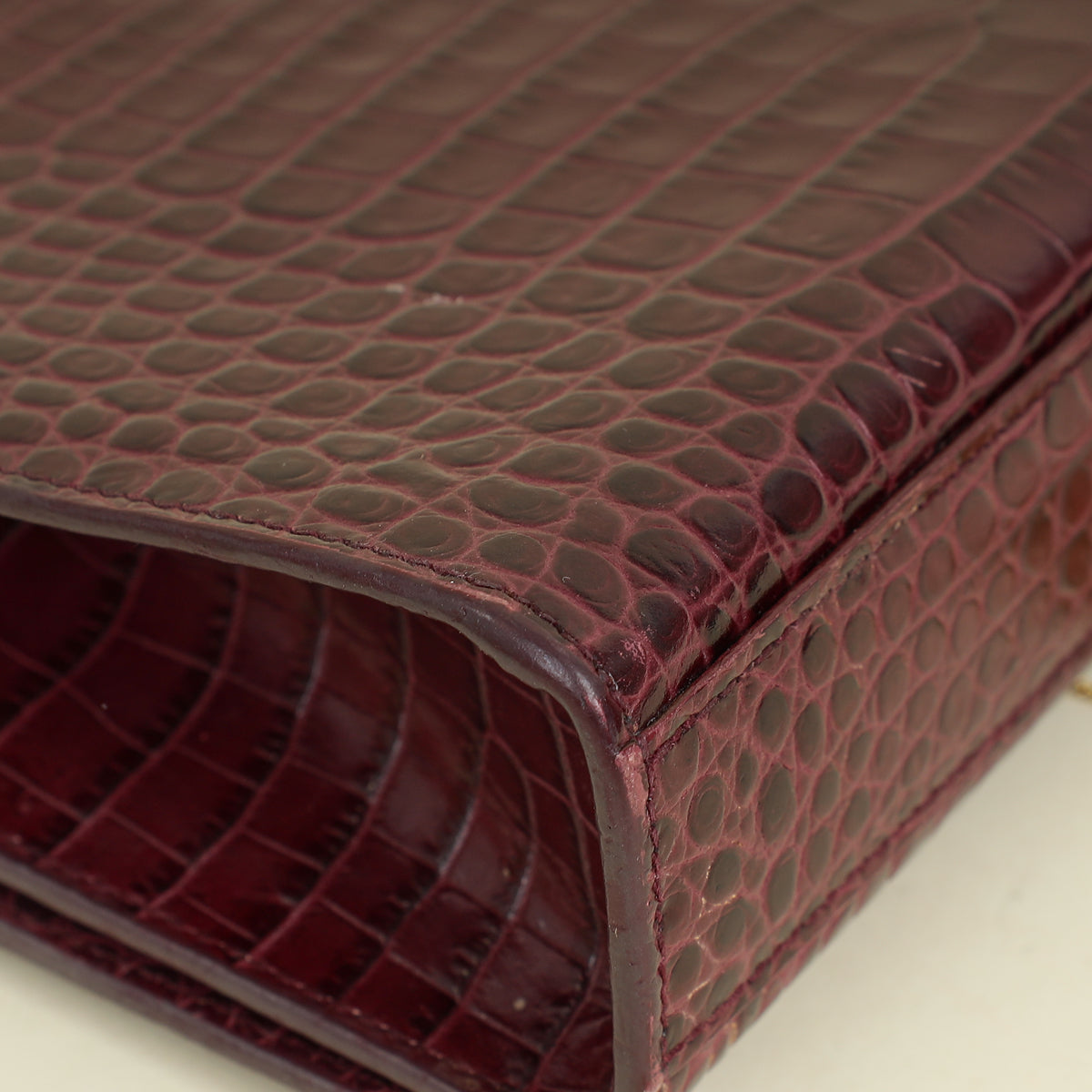 YSL Burgundy Croco Embossed Kate Tassel Medium Chain Bag