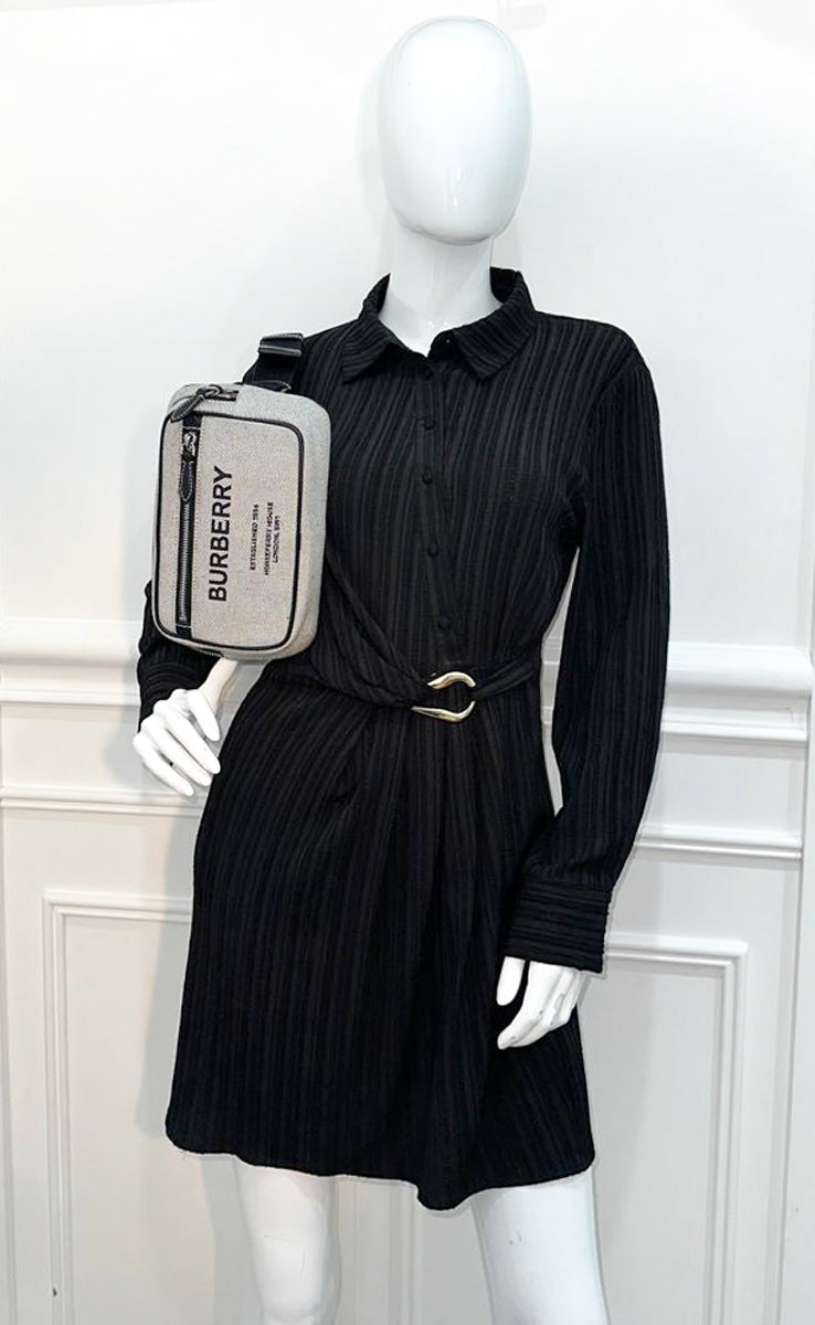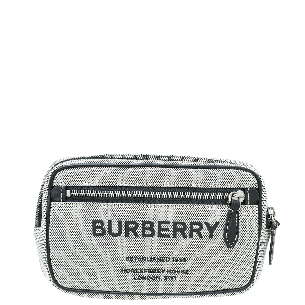 - Material: White/Black Canvas with Black Calfskin Leather and Fabric Strap