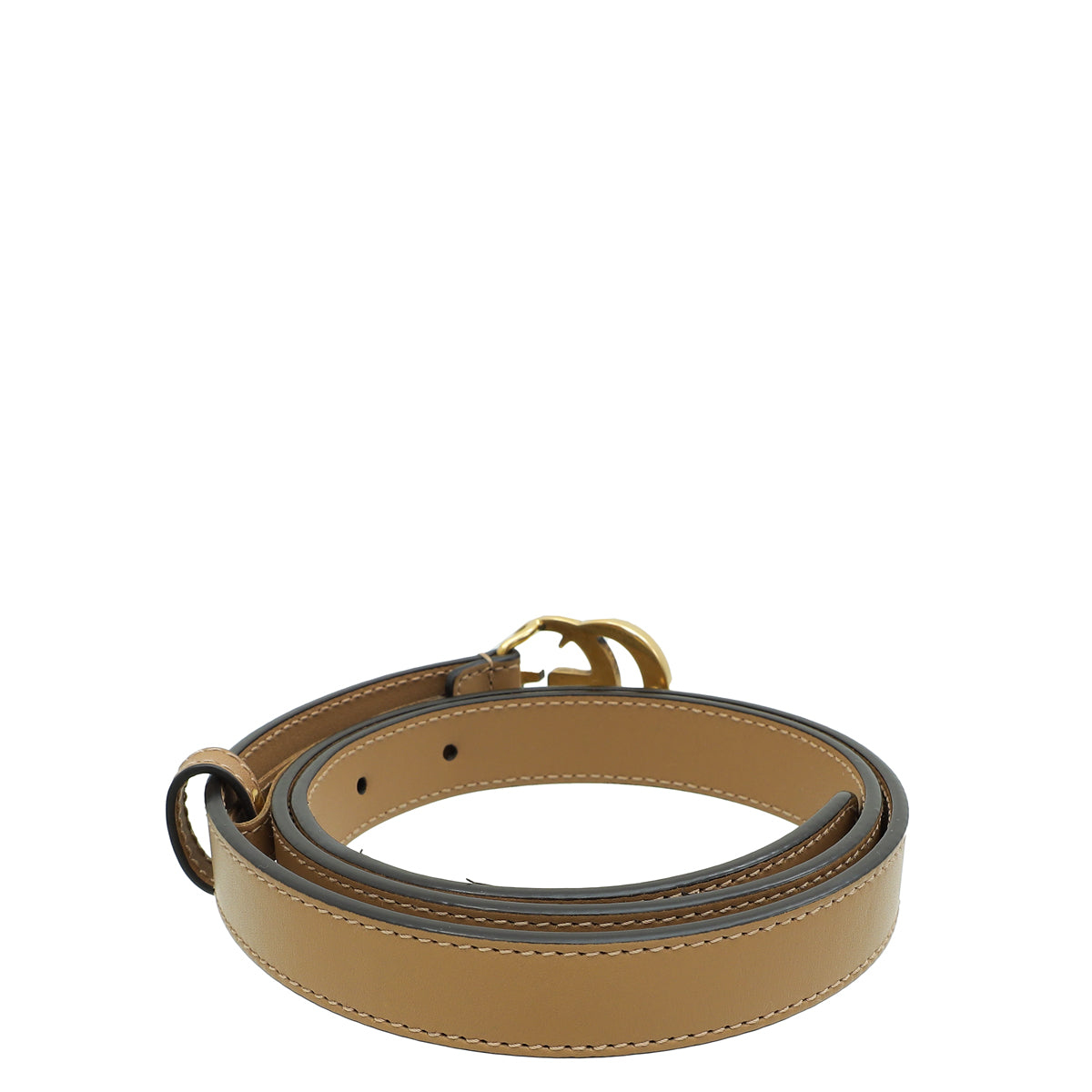 Gucci Light Brown GG Marmont Thin 18mm Belt 32