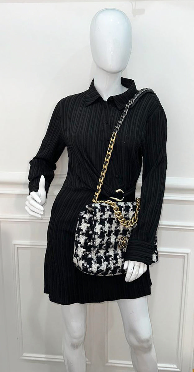 Chanel Bicolor Tweed Ribbon Quilted 19 Flap Large Bag