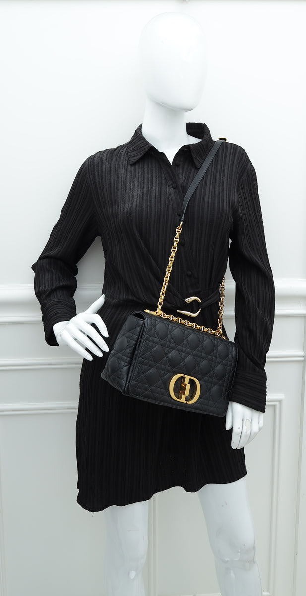 Christian Dior Black Caro Quilted Macrocannage Medium Bag