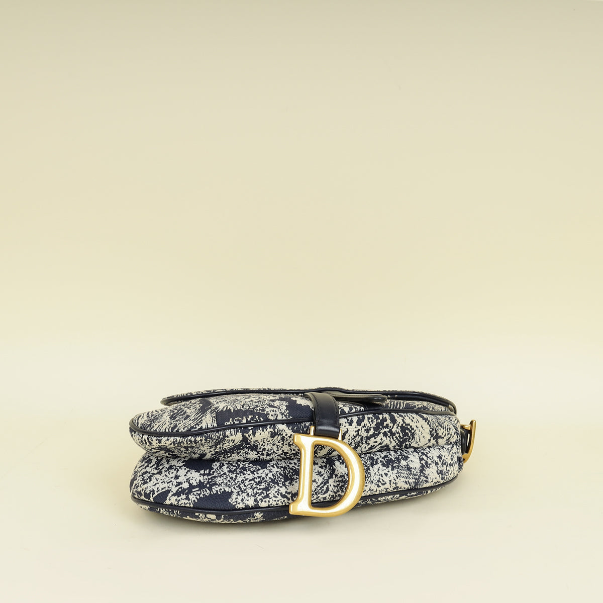 Christian Dior Navy Blue Toile de Jouy Saddle Medium Bag