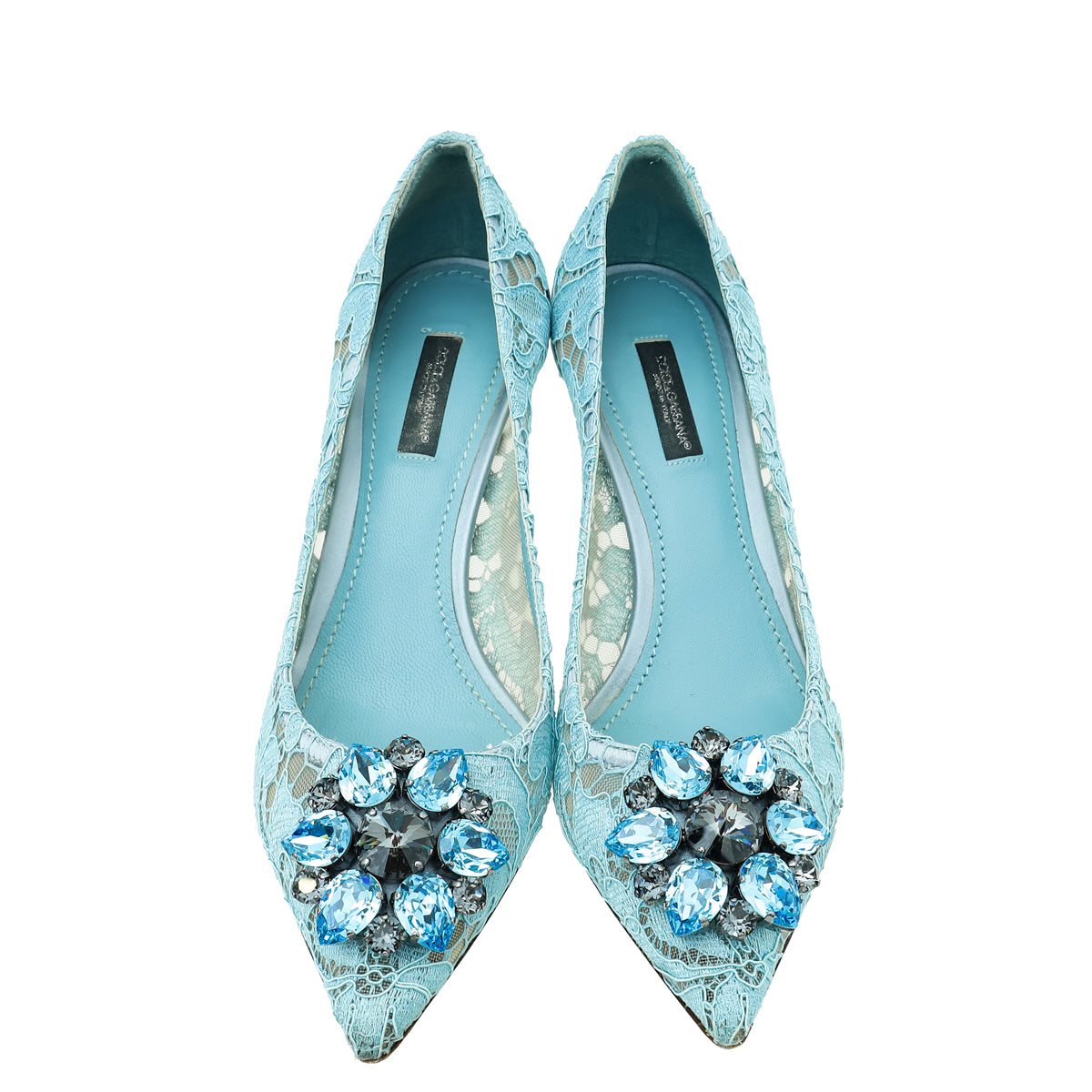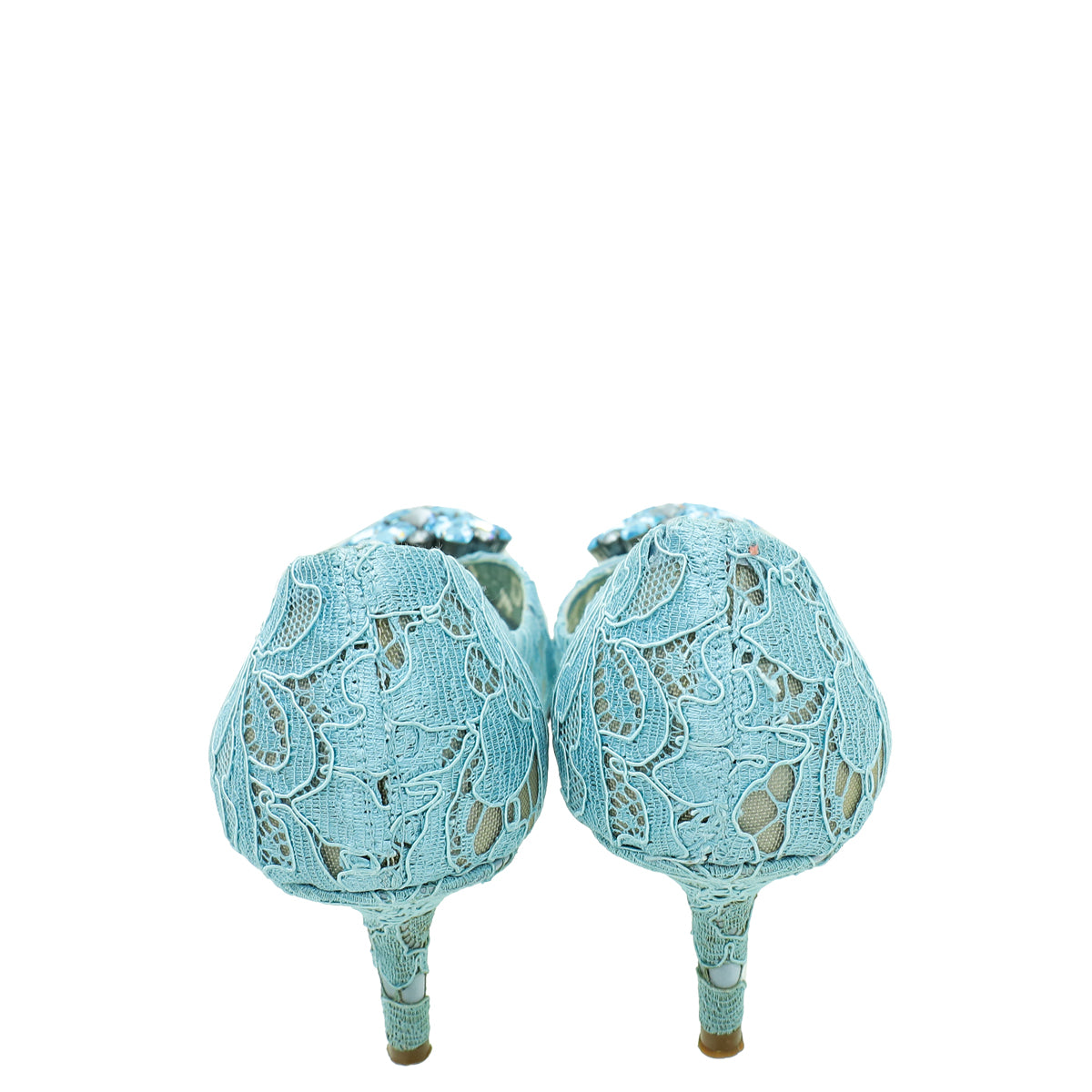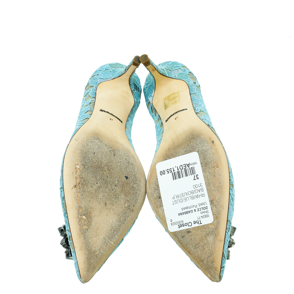 Dolce & Gabbana Blue Bellucci Lace Embellished Pump 37