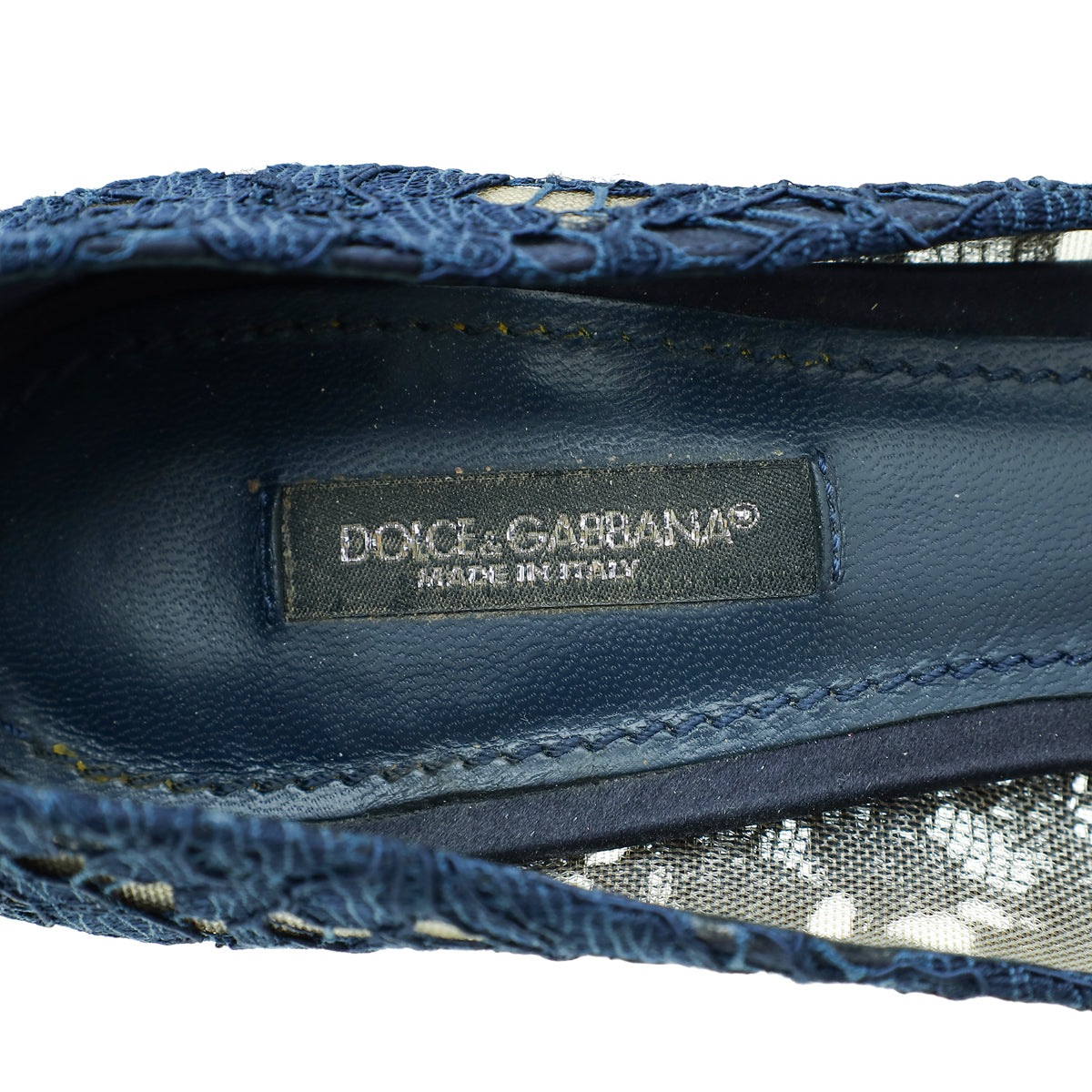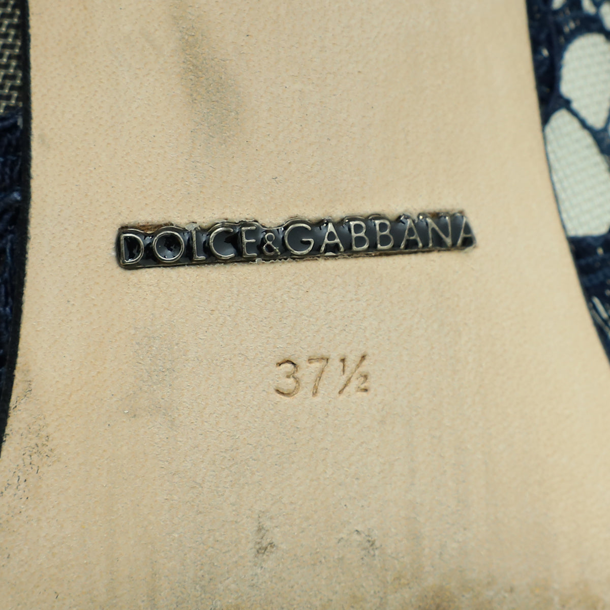 Dolce & Gabbana Navy Blue Bellucci Lace Embellished Pump 37.5