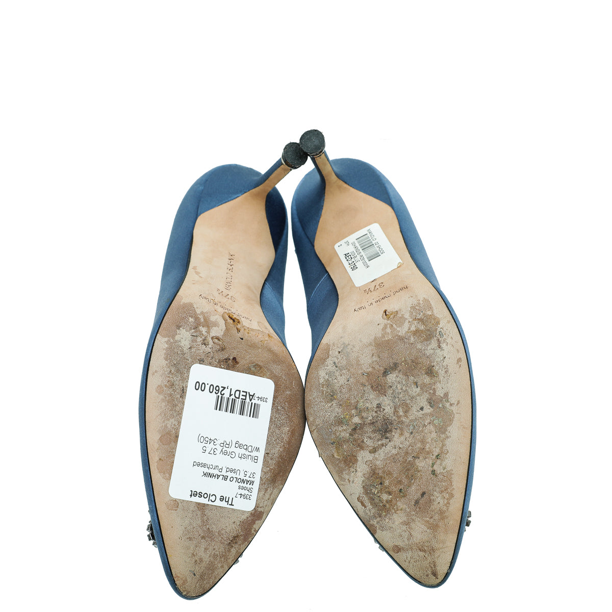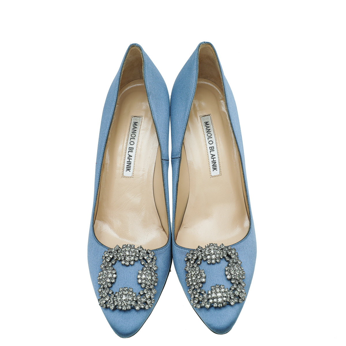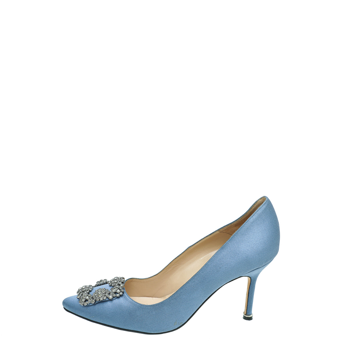 Manolo Blahnik Bluish Grey Satin Hangisi Pumps 37.5-Christian Louboutin-THE CLOSET
