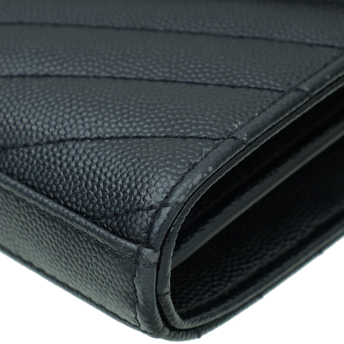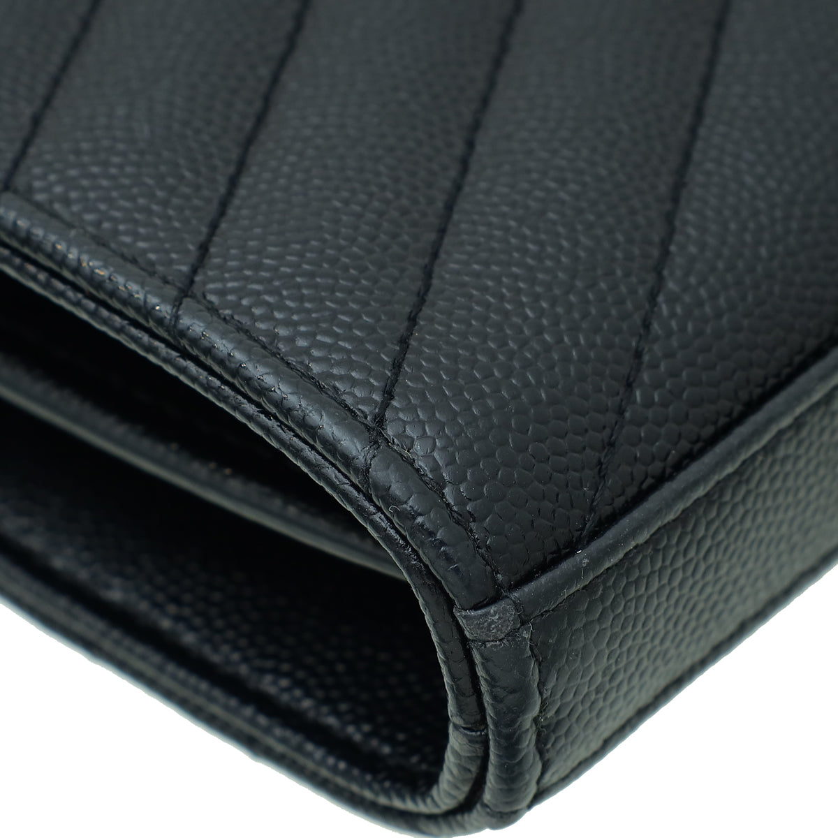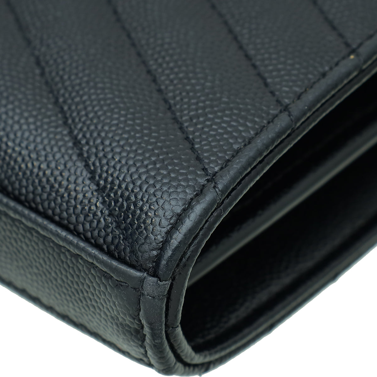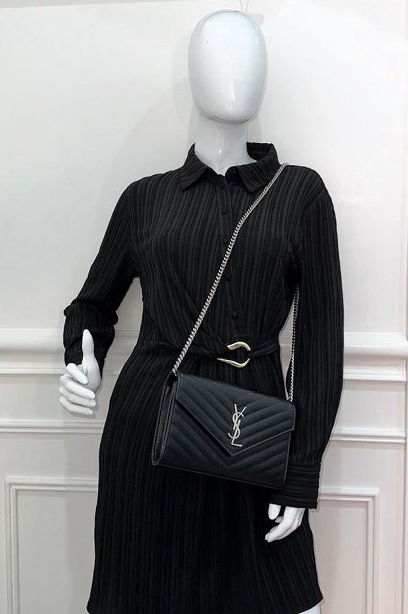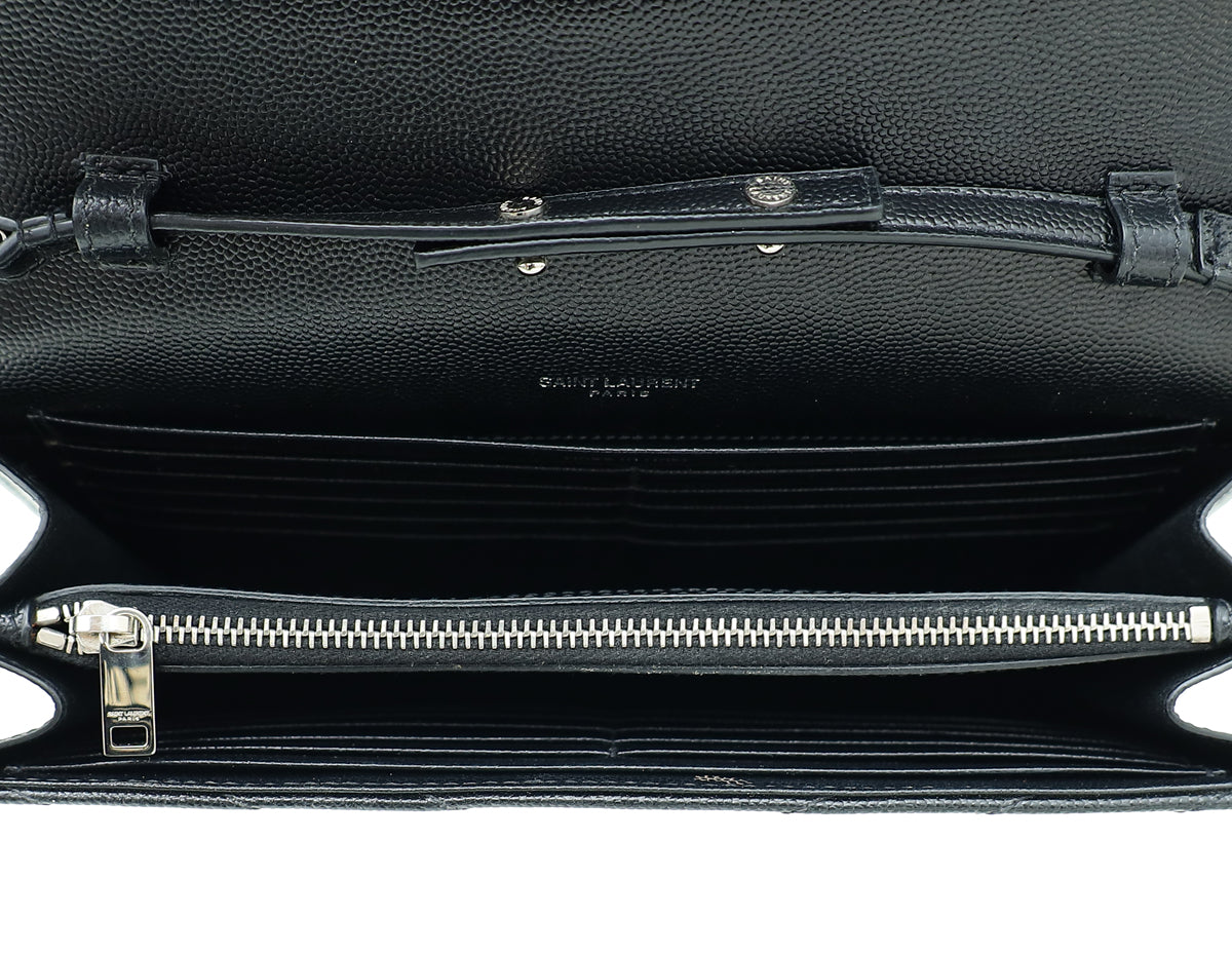 YSL Black Cassandre Chevron Wallet On Chain
