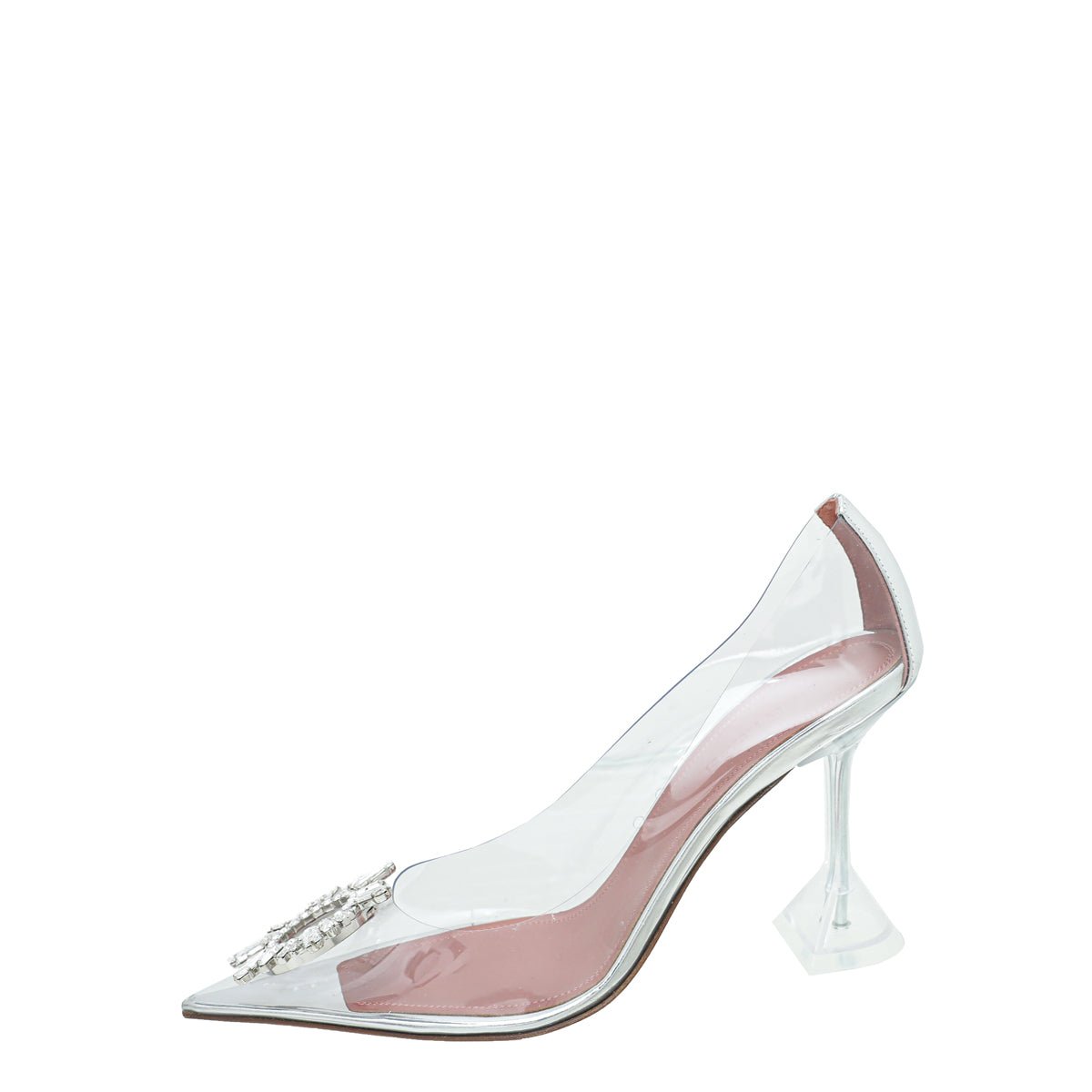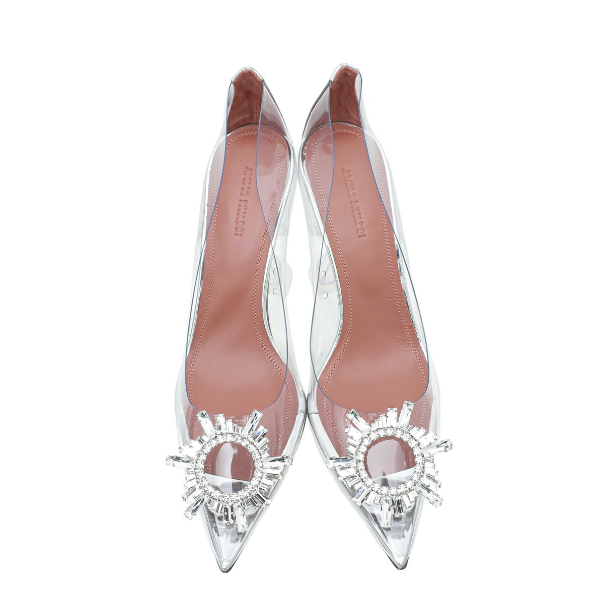 Amina Muaddi White Transparent PVC Begum Glass Pumps 38.5