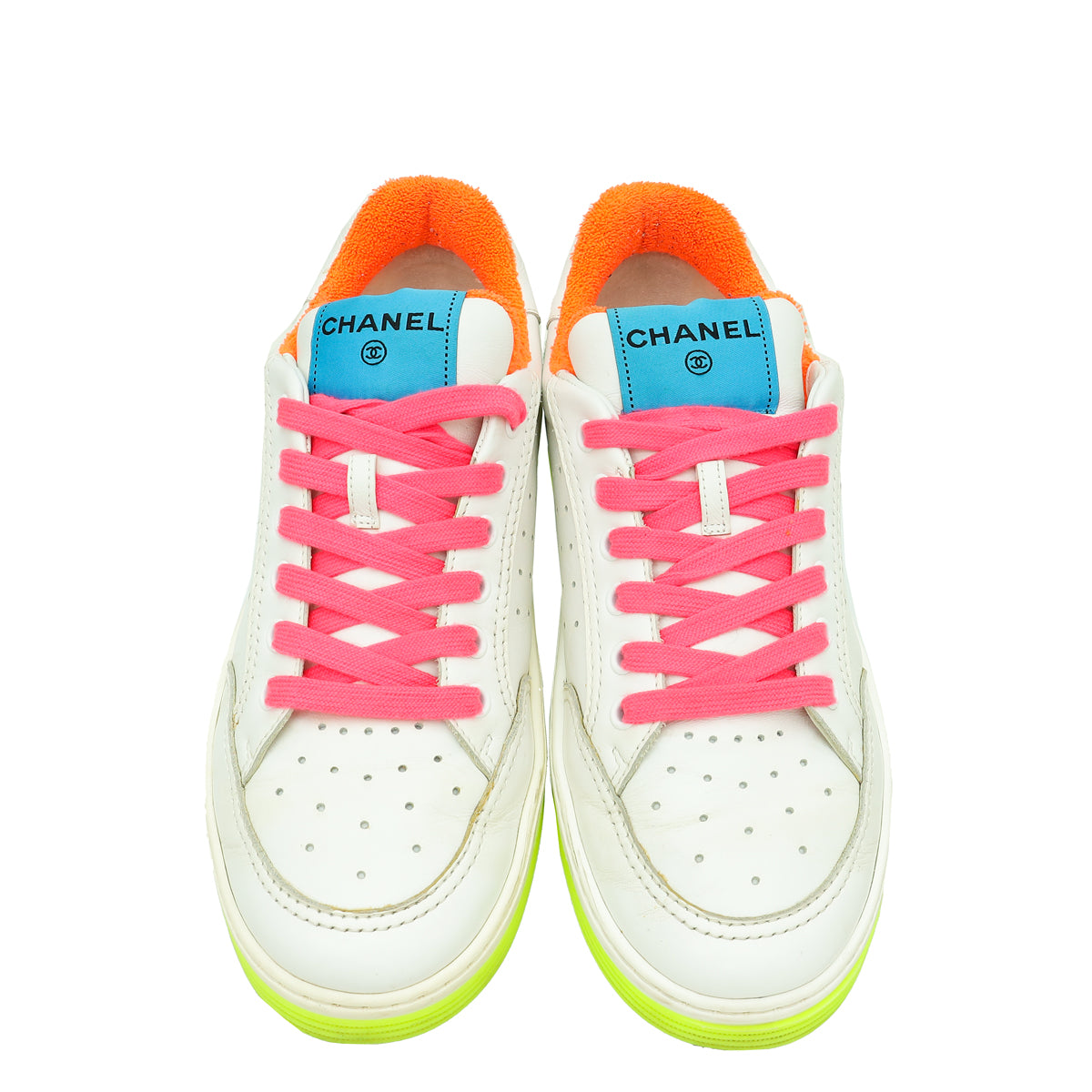 Chanel White CC Multicolor Logo Terry Cloth Sneakers 39.5