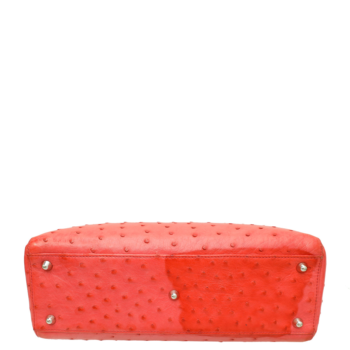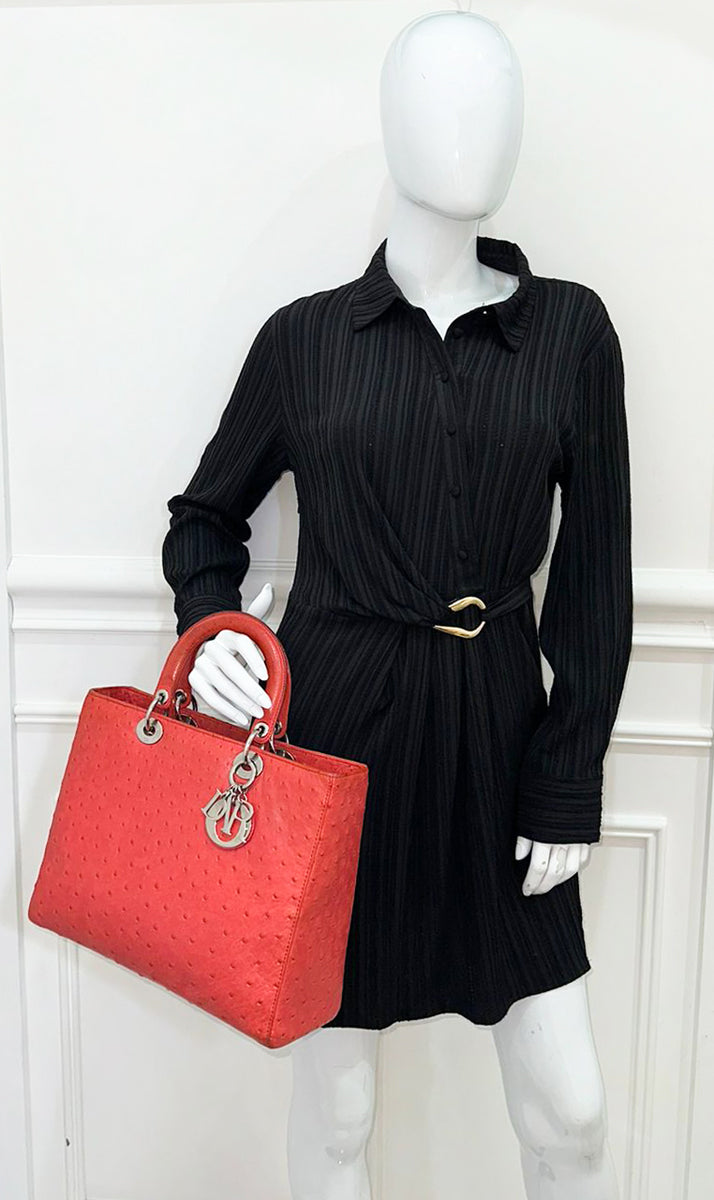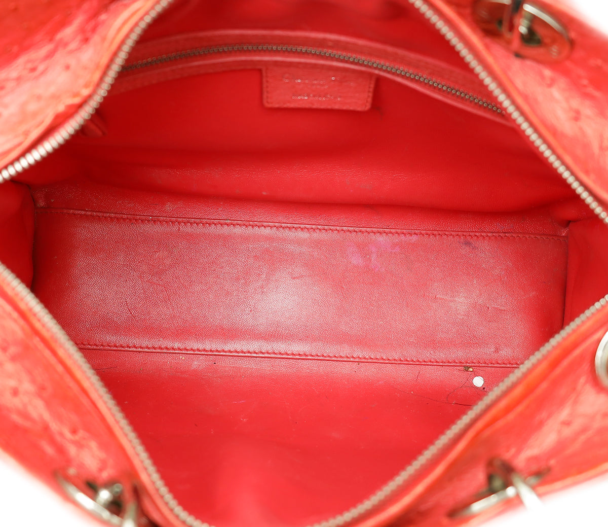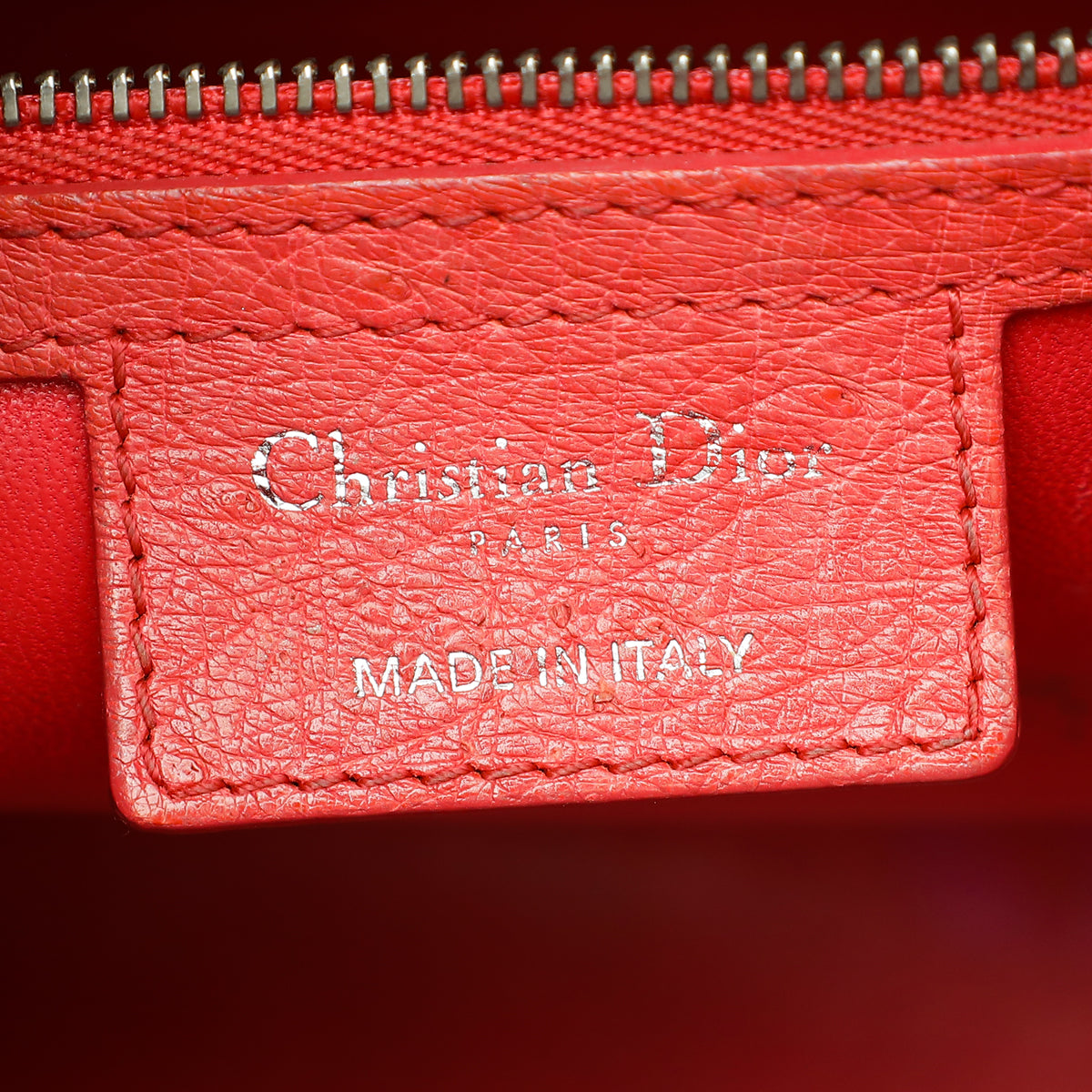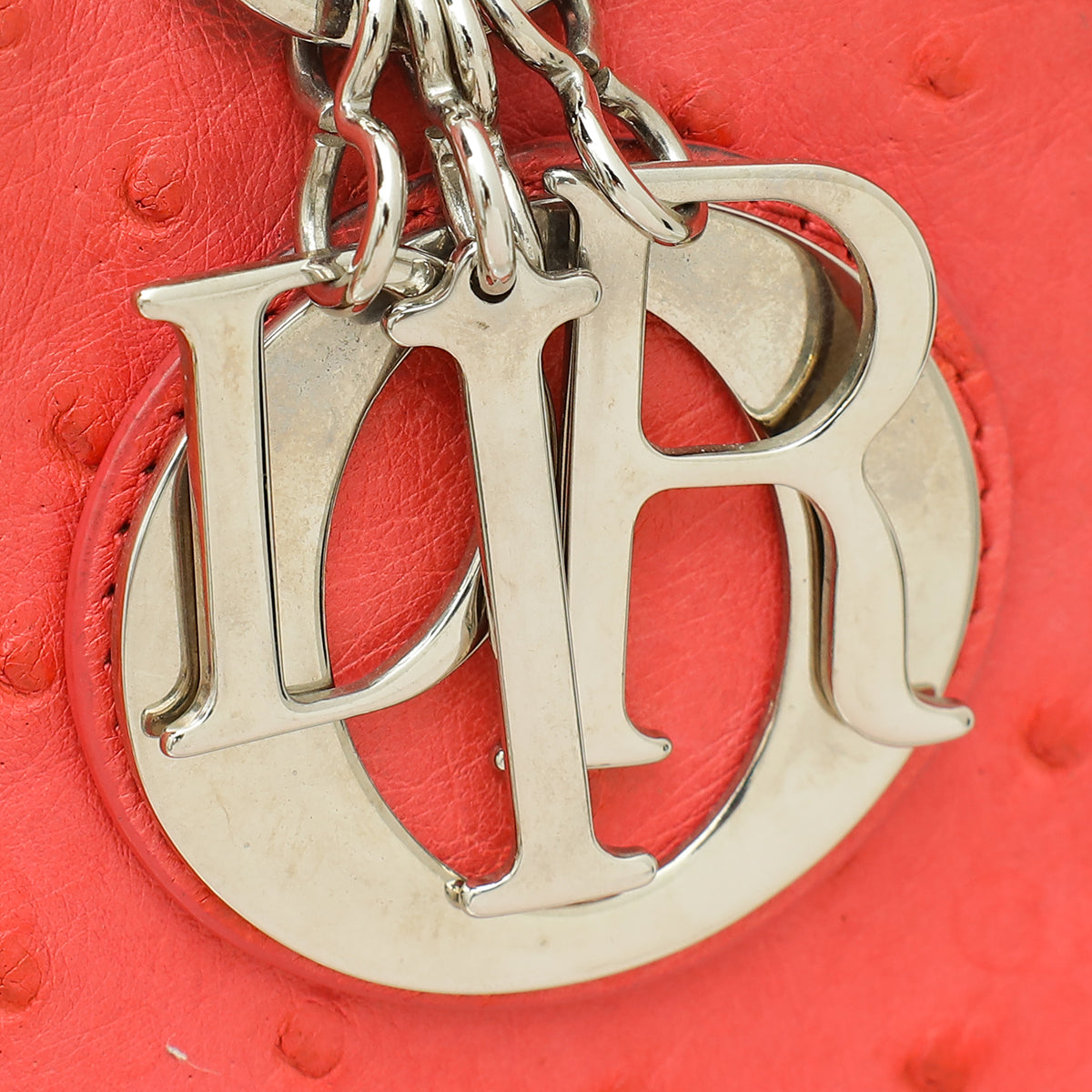 Christian Dior Coral Ostrich Lady Dior Large Bag