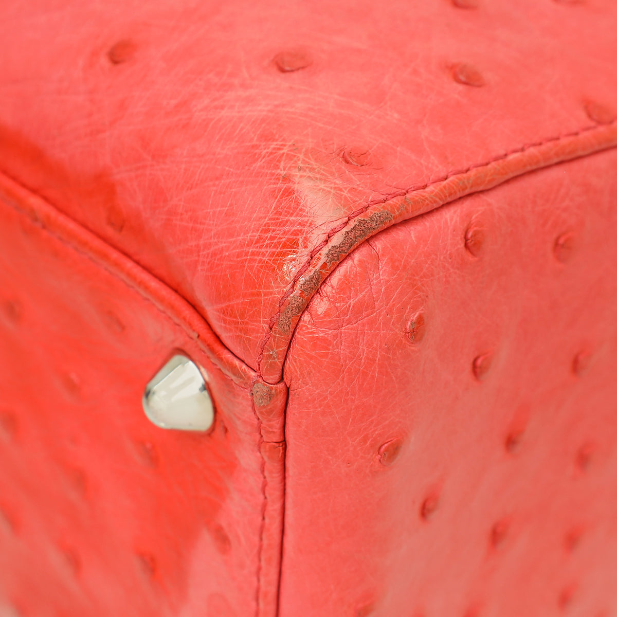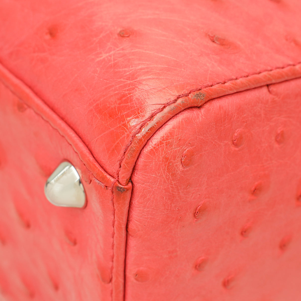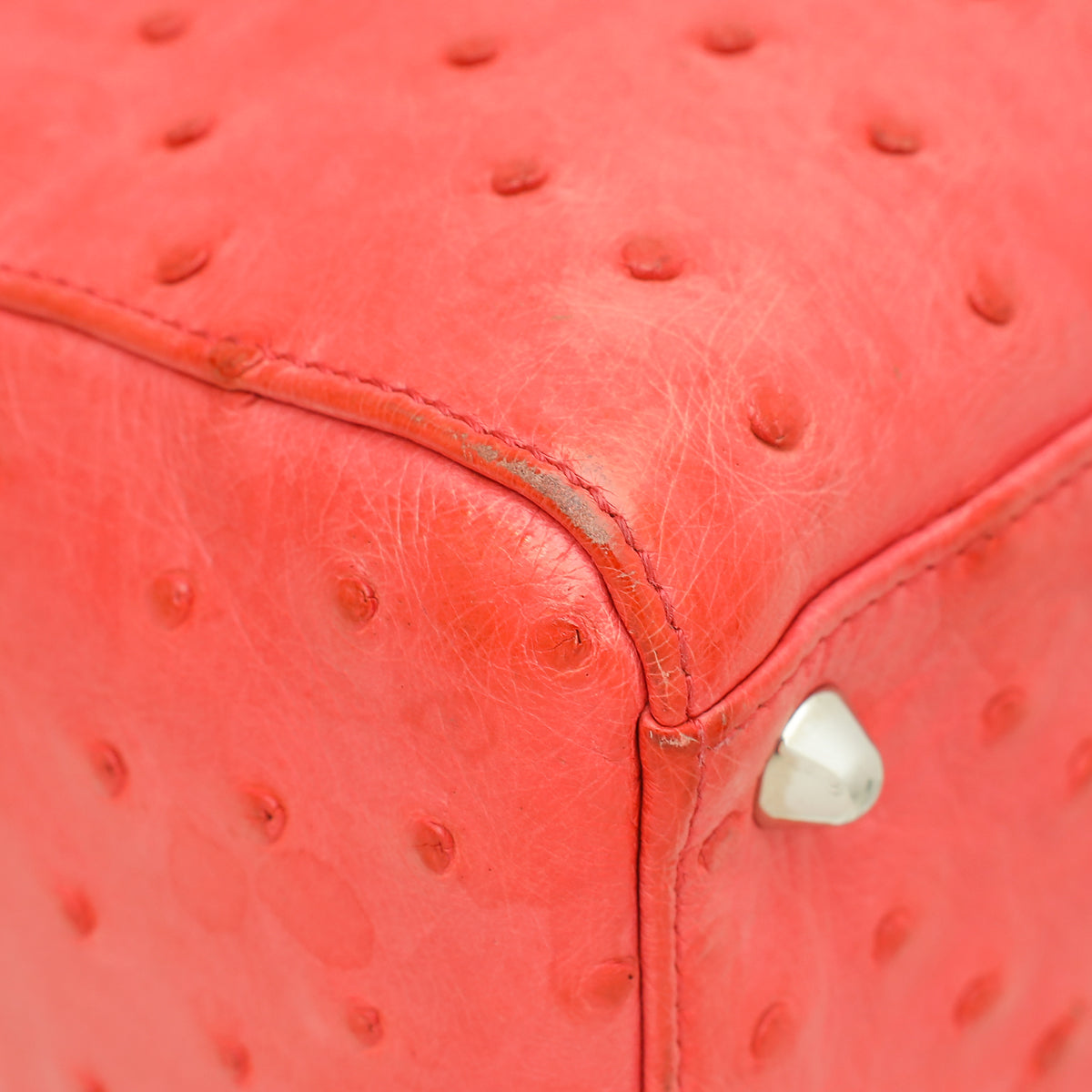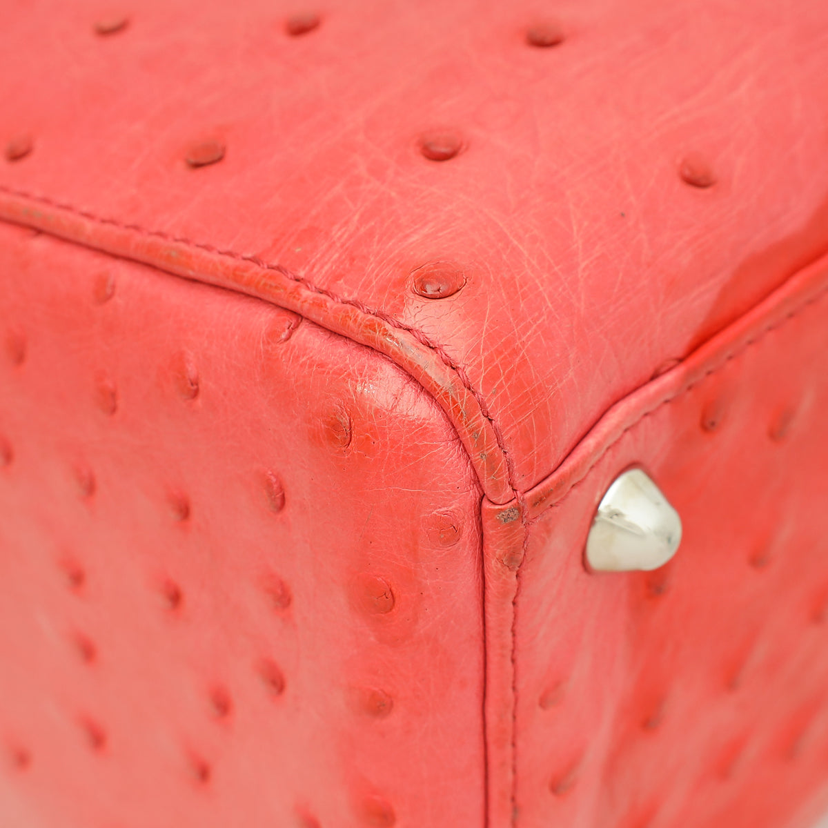 Christian Dior Coral Ostrich Lady Dior Large Bag