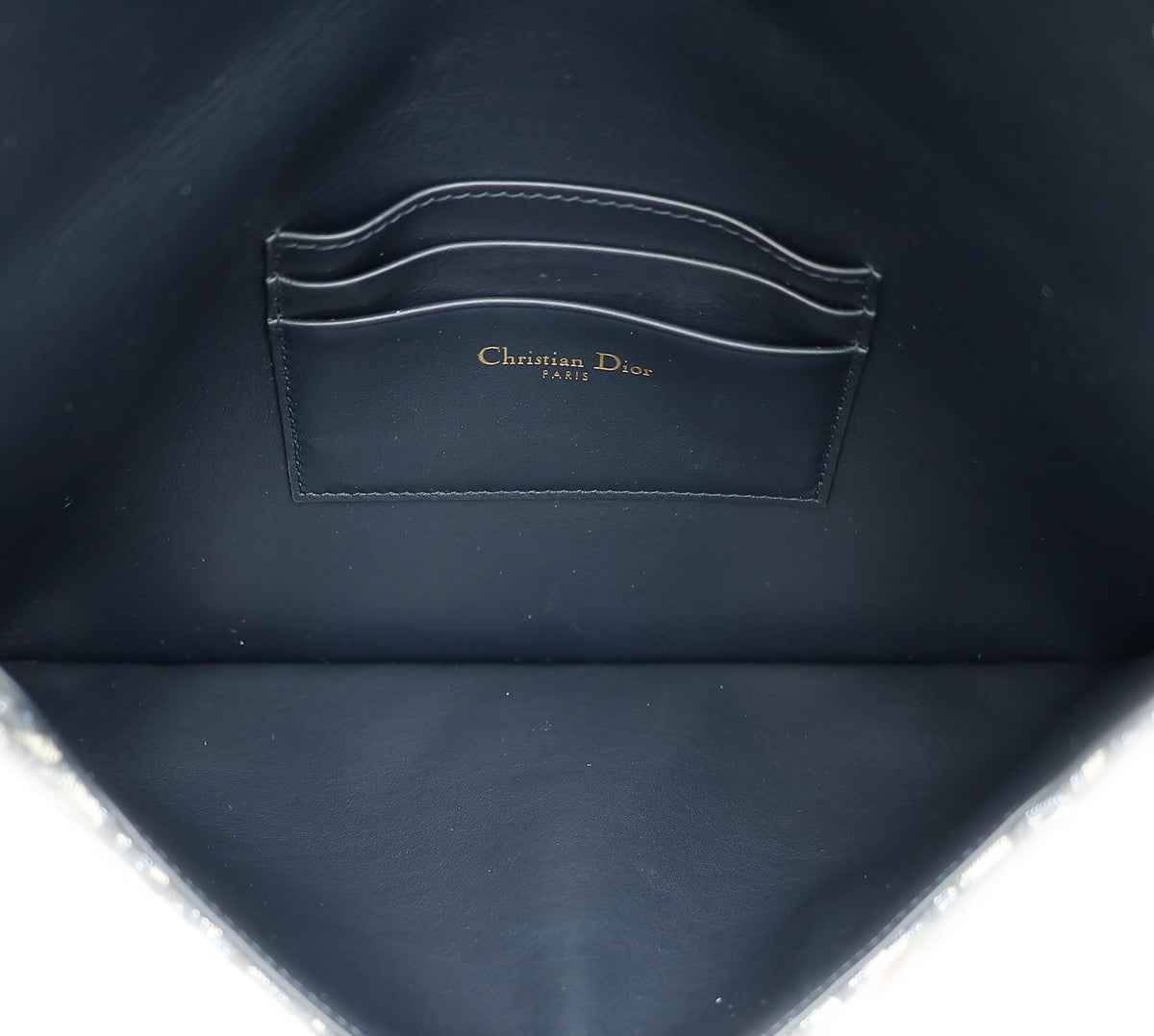 Christian Dior Navy Blue Oblique Saddle Pouch Clutch