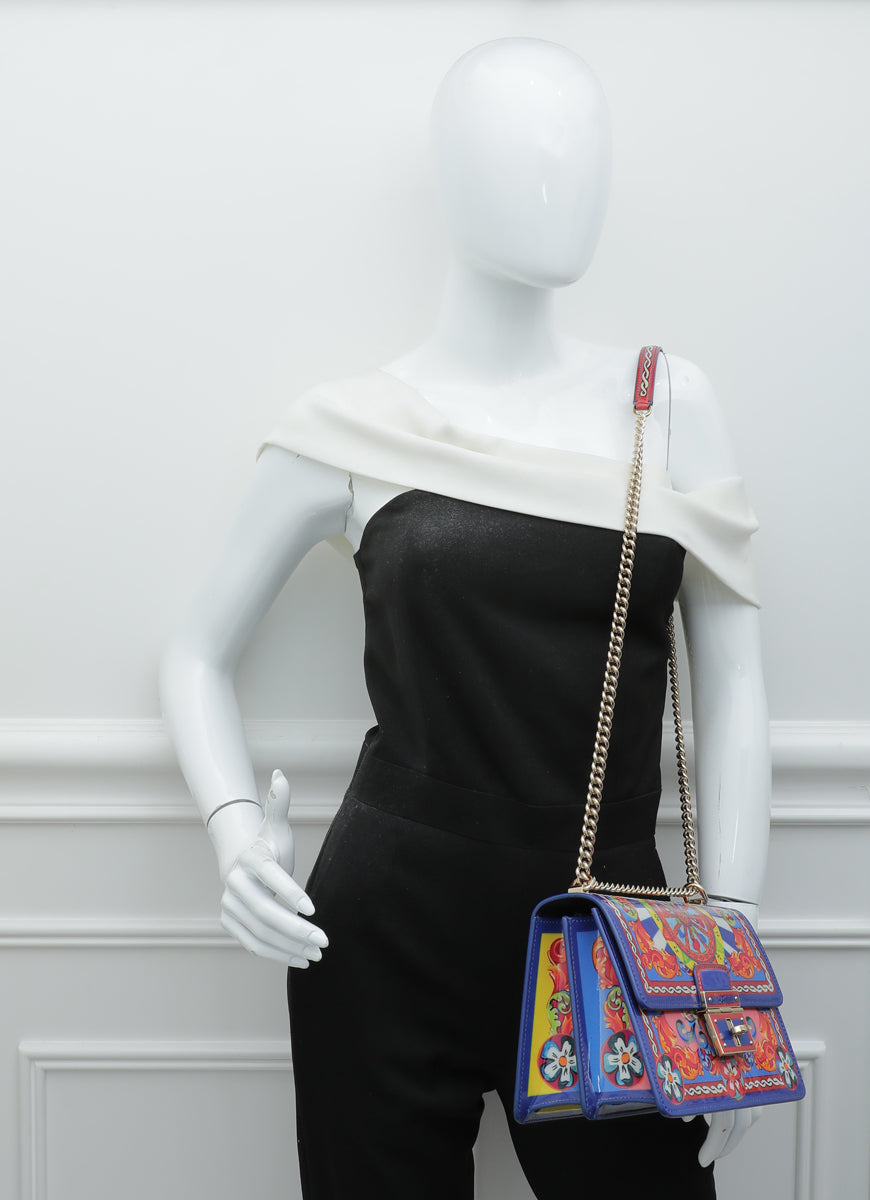 Dolce & Gabbana Blue Rosalia Multicolor Flap Chain Bag