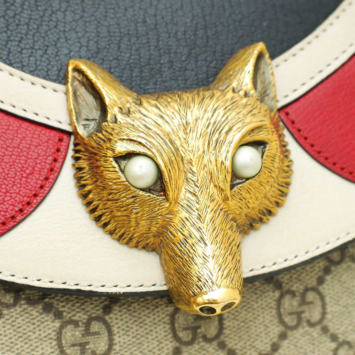 Gucci Multicolor GG Supreme FOX Broche Mini Bamboo Top Handle Bag