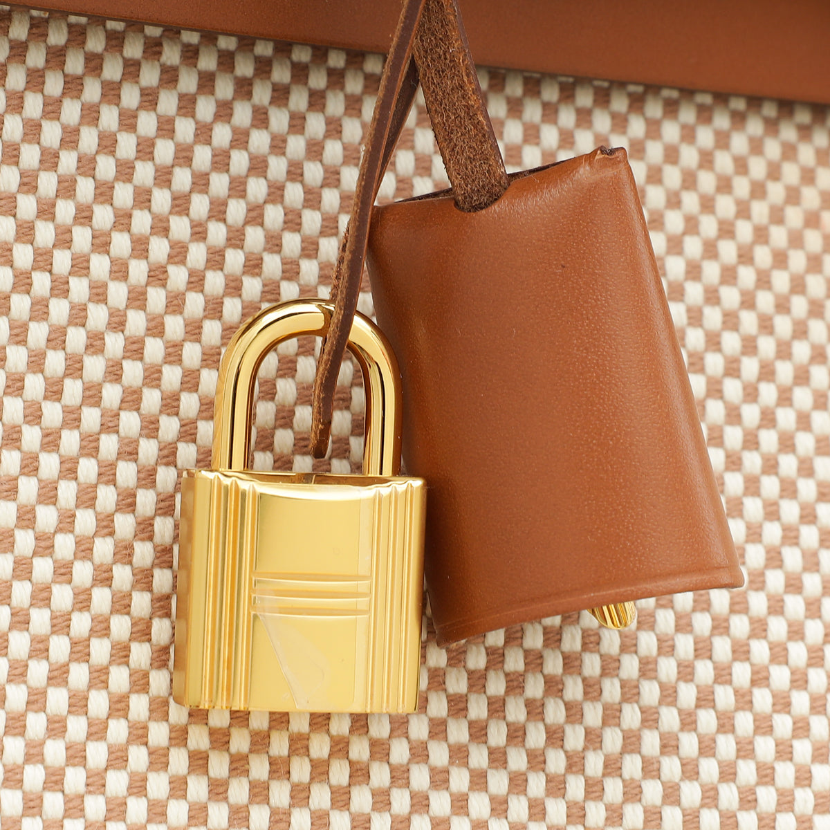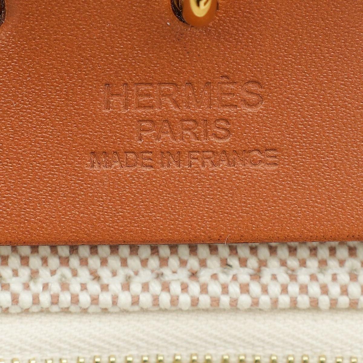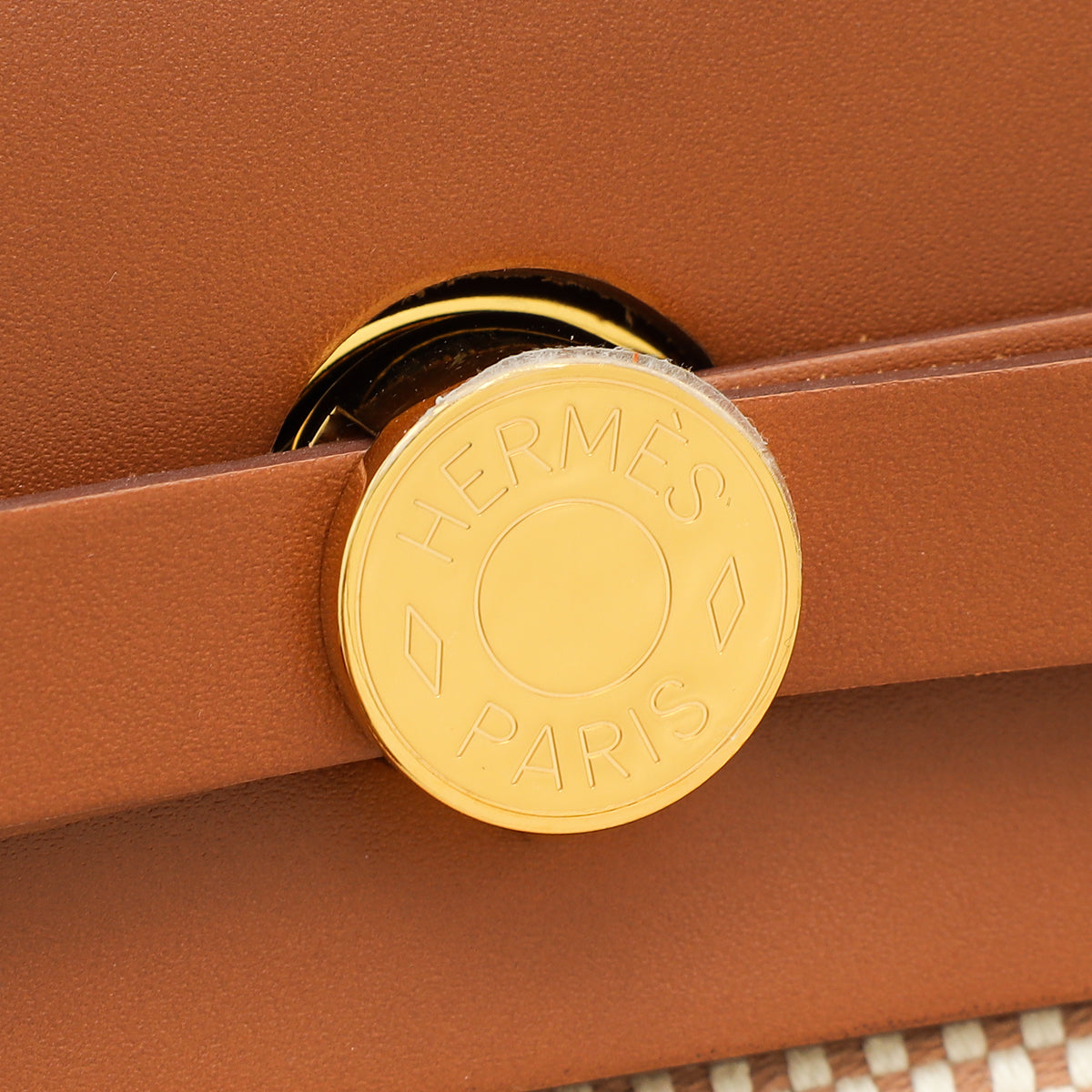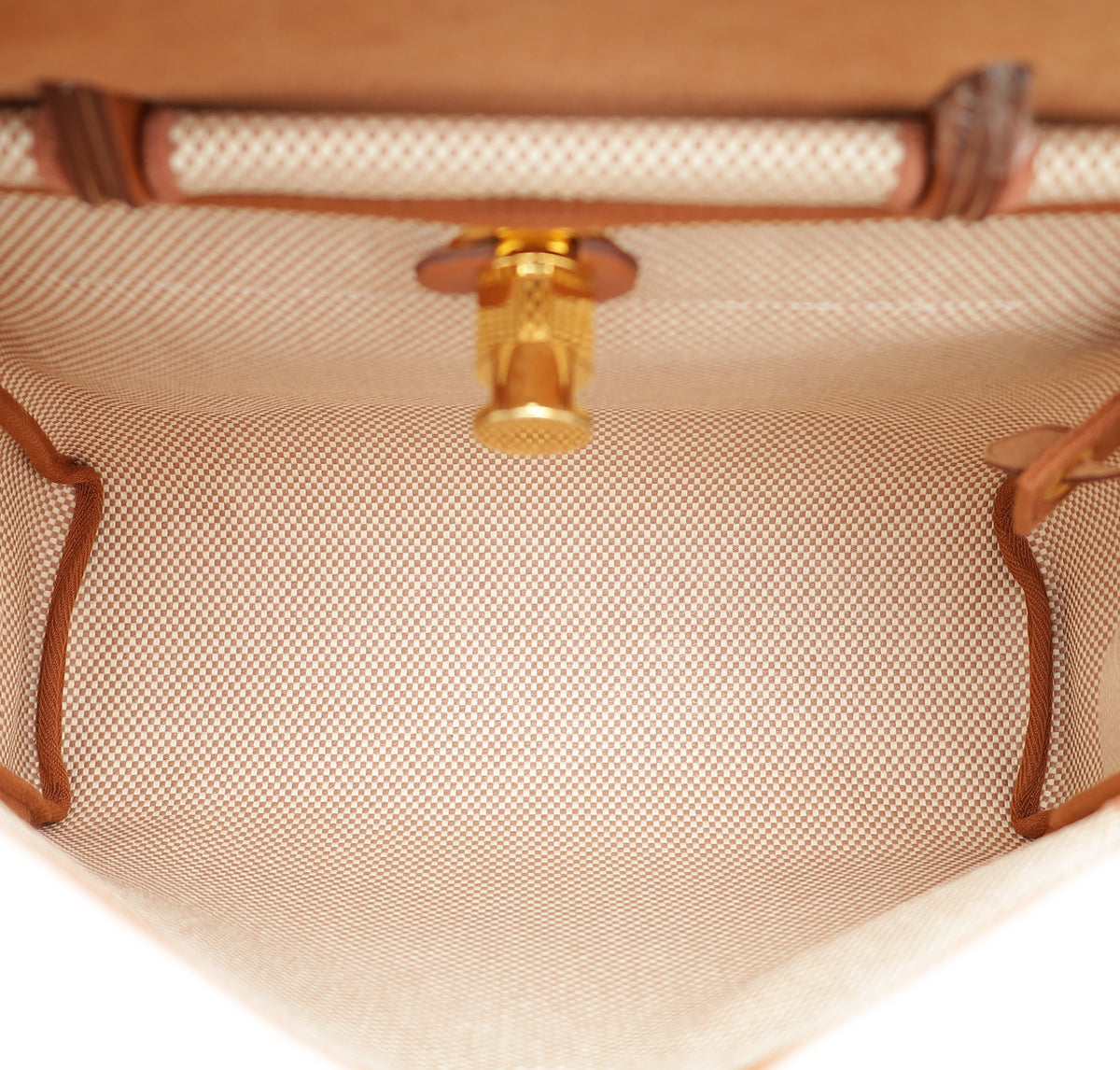 Material: Gold/Ecru Beige Canvas and Vache Hunter Leather