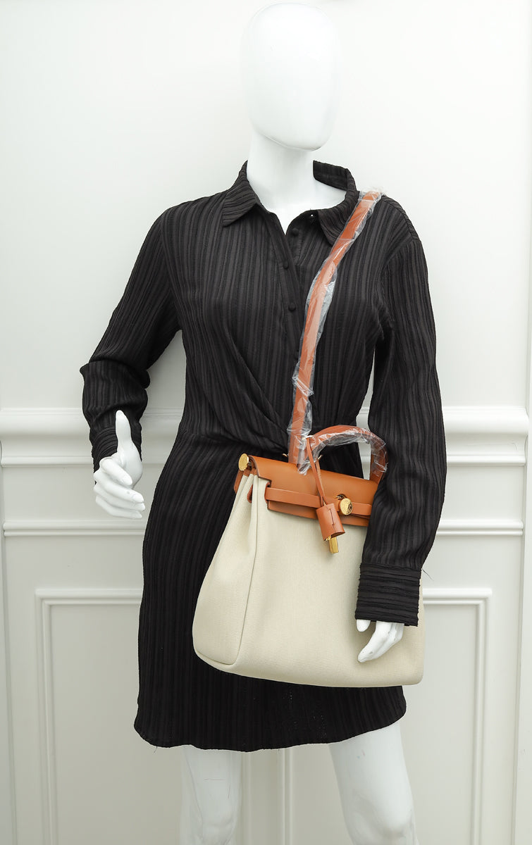 Hermes Bicolor Herbag 31 PM Retourne Toile Militaire Vache Hunter Bag
