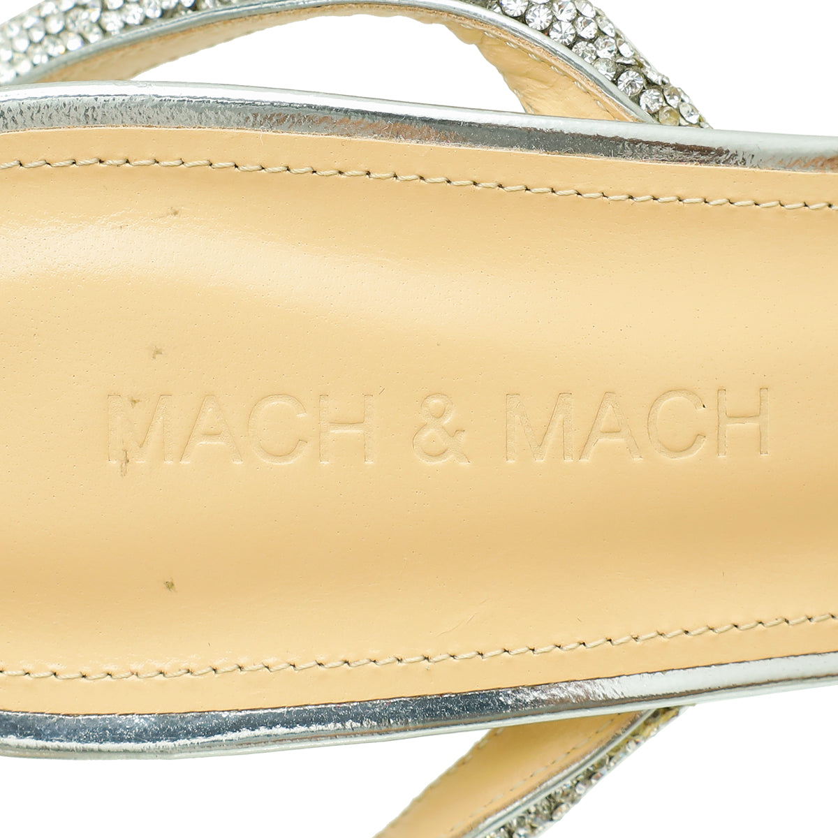 Mach & Mach Silver Crystal Embellished PVC Crystal Bow Ankle Strap Pumps 38.5