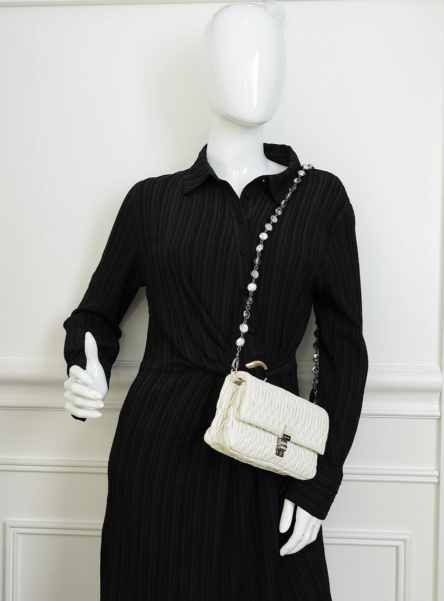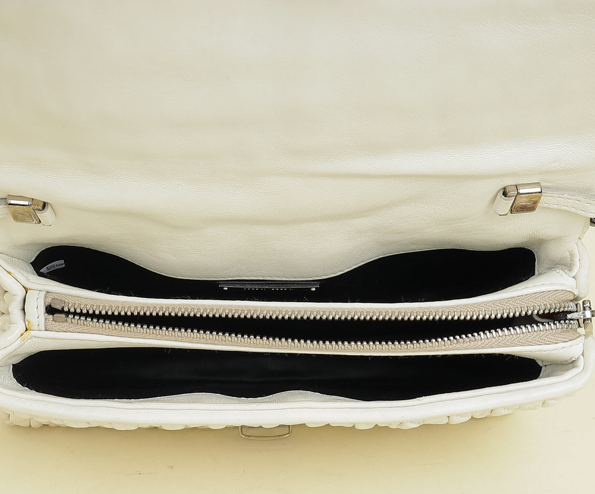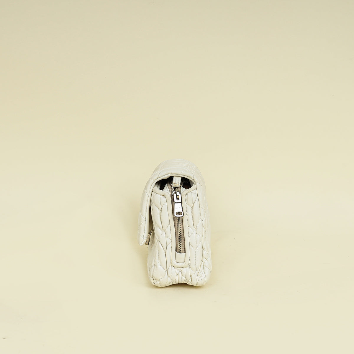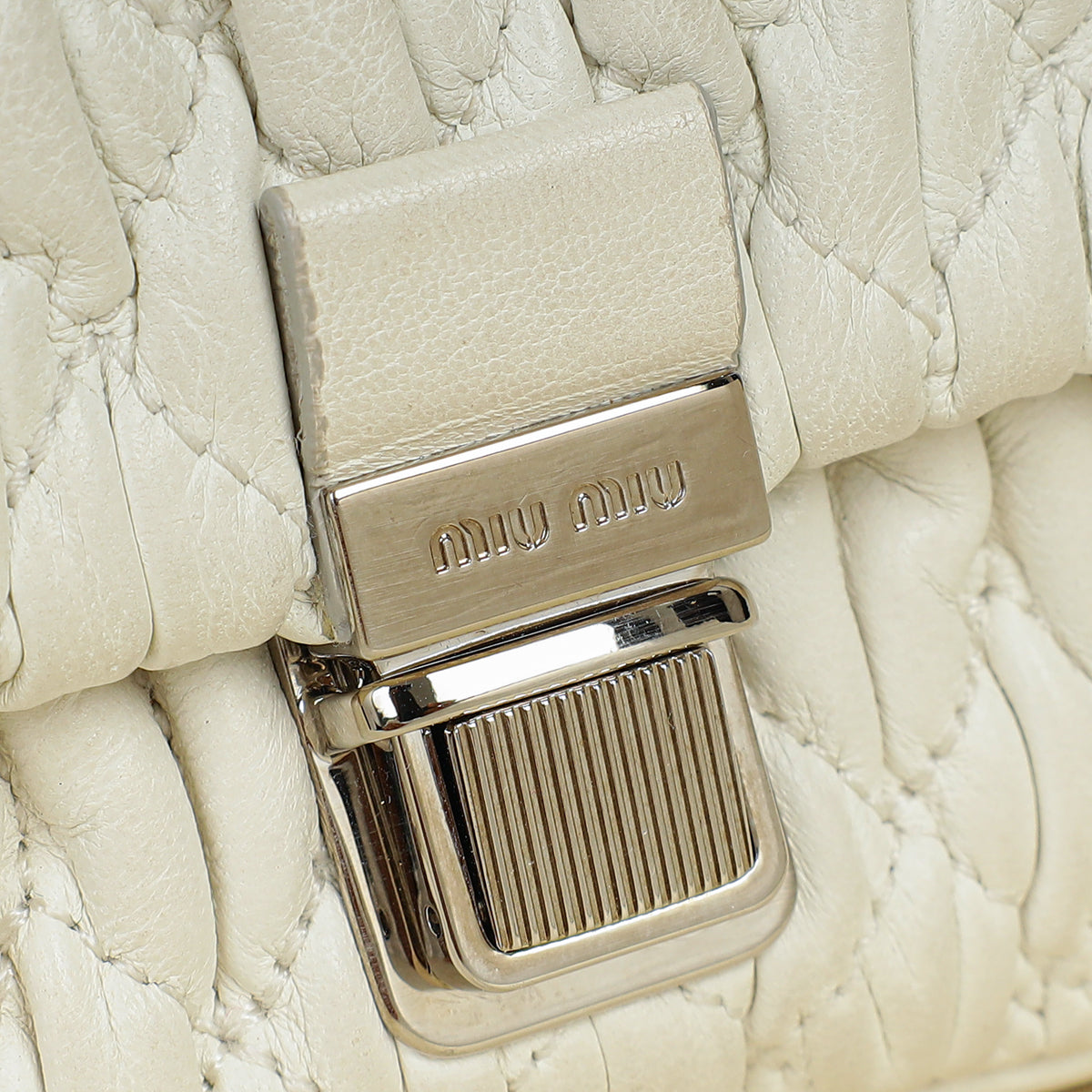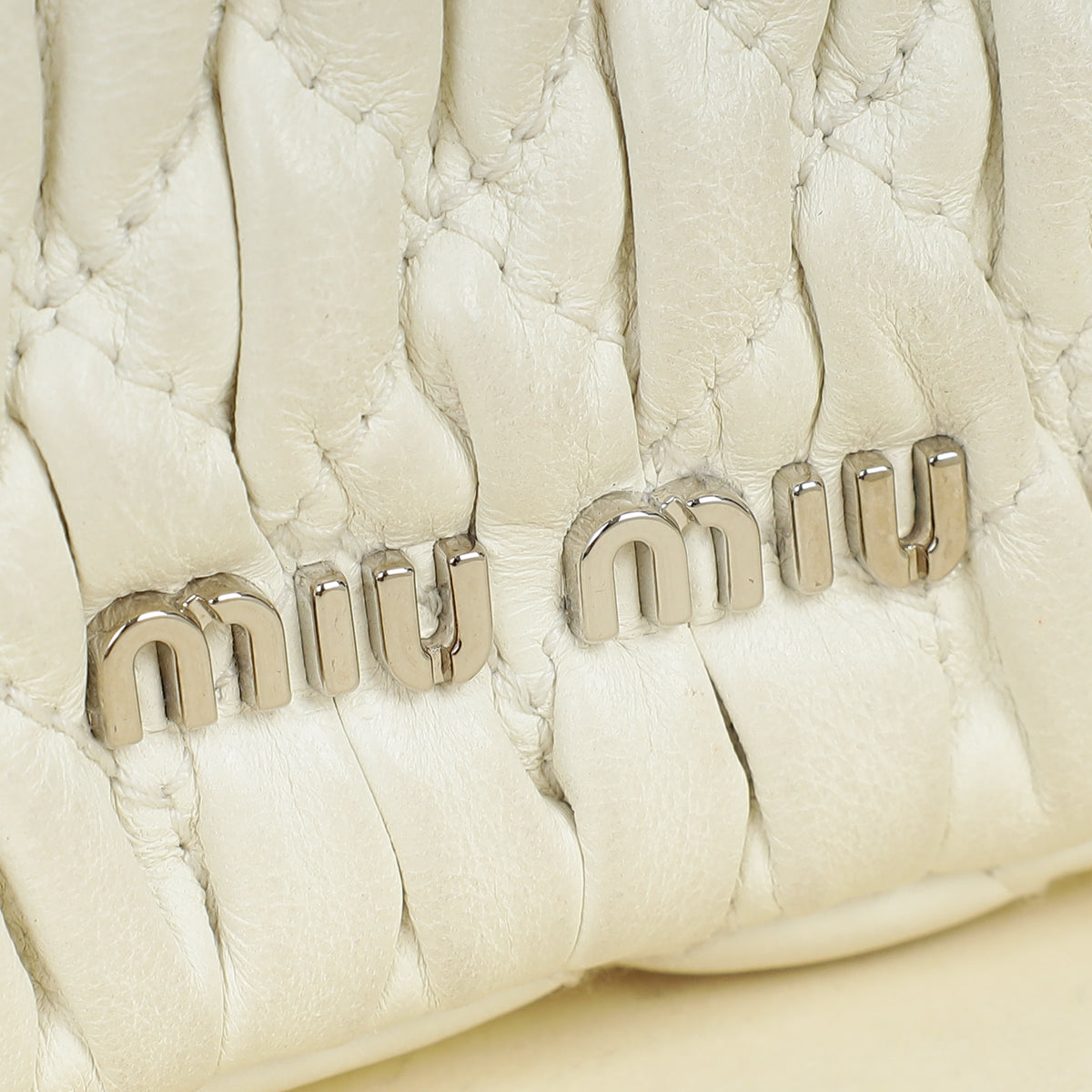 Miu Miu White Nappa Matelasse Crystal Shoulder Bag