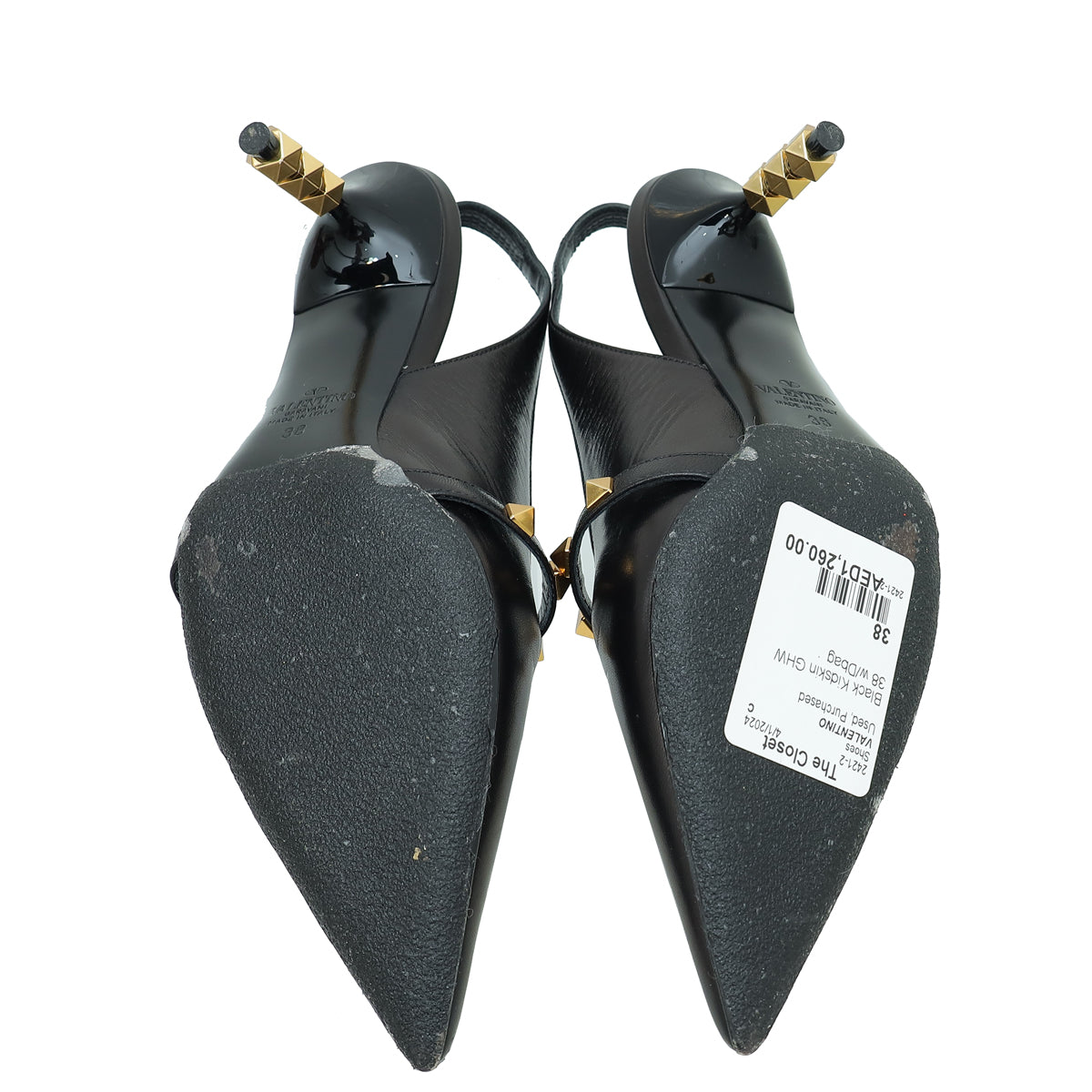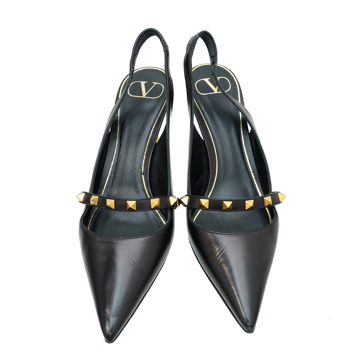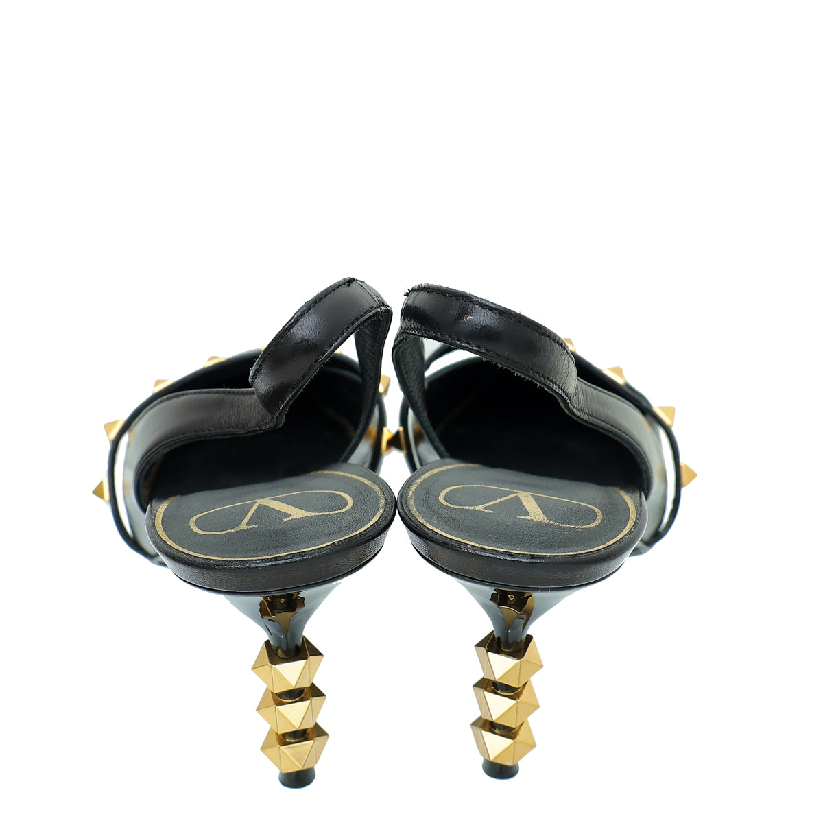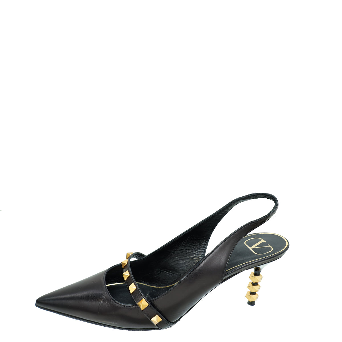 Valentino Black Rockstud Slingback Sculpted Heels 38