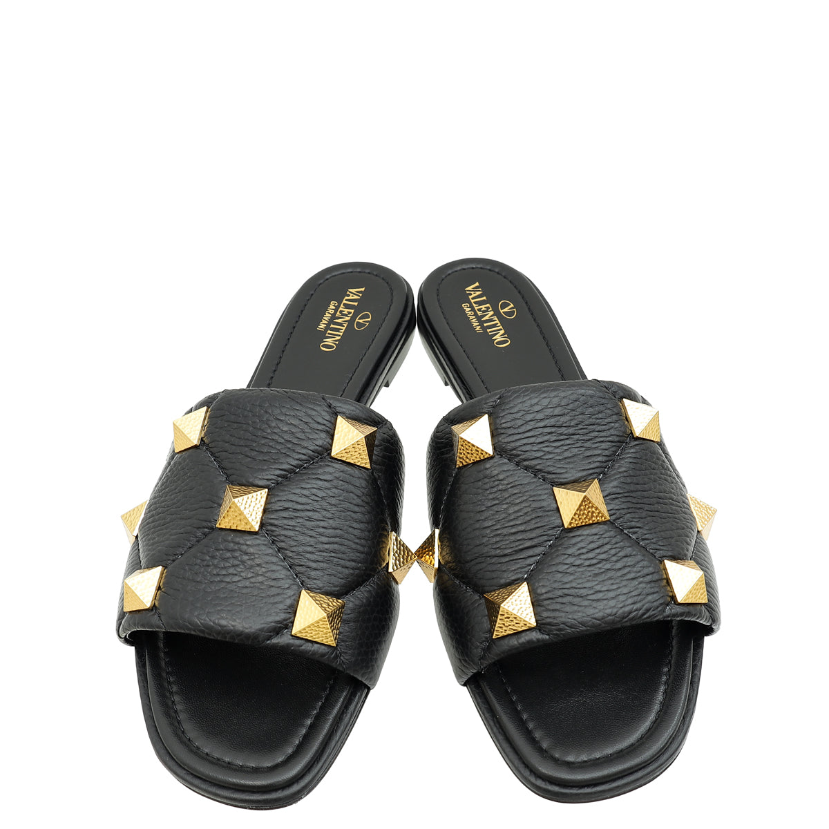 Valentino Black Roman Stud Flat Slide Sandals 41