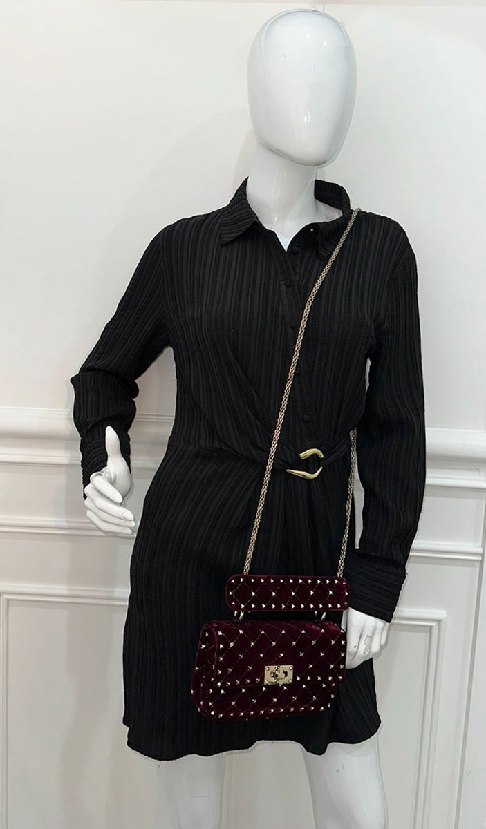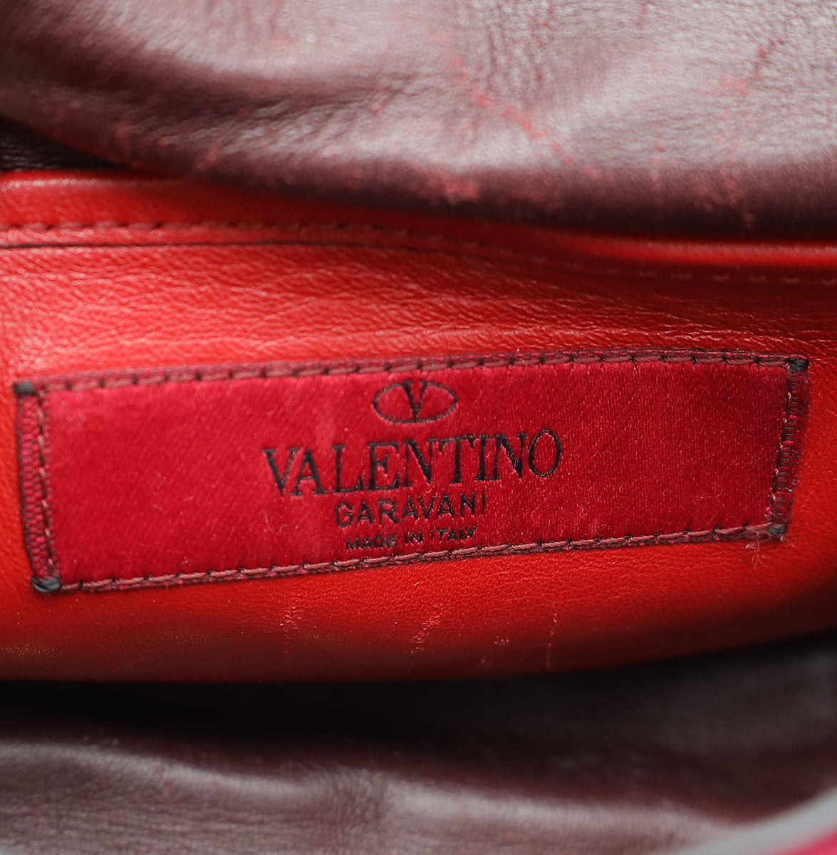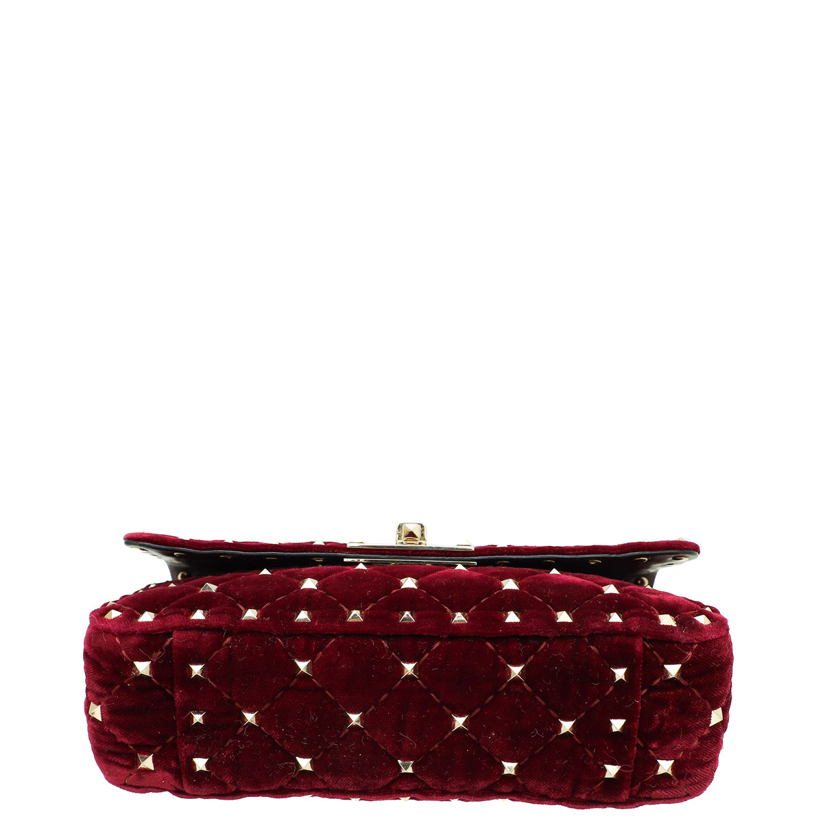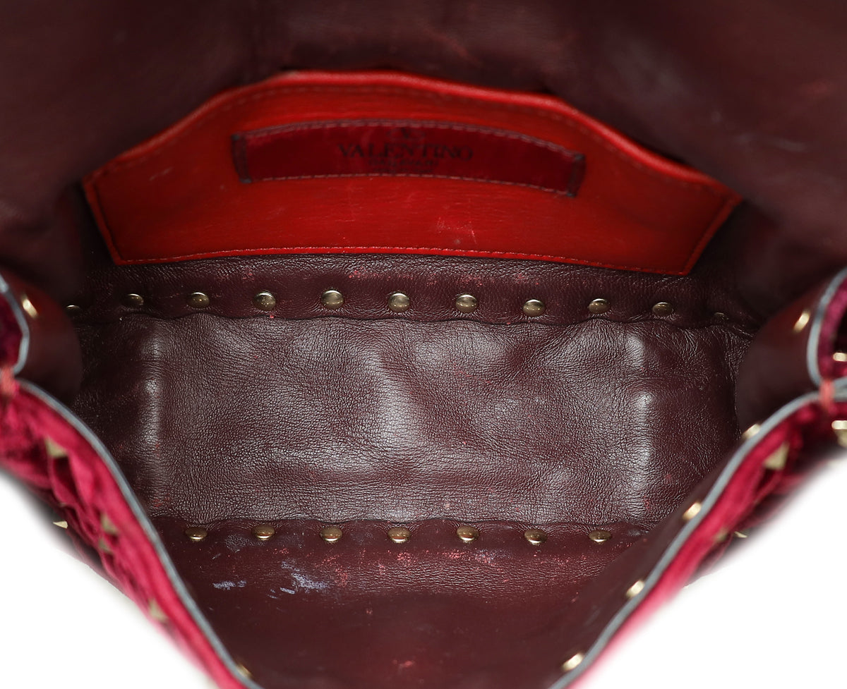 Valentino Burgundy Velvet Rockstud Spike Small Chain Bag