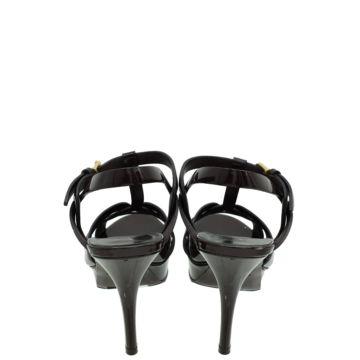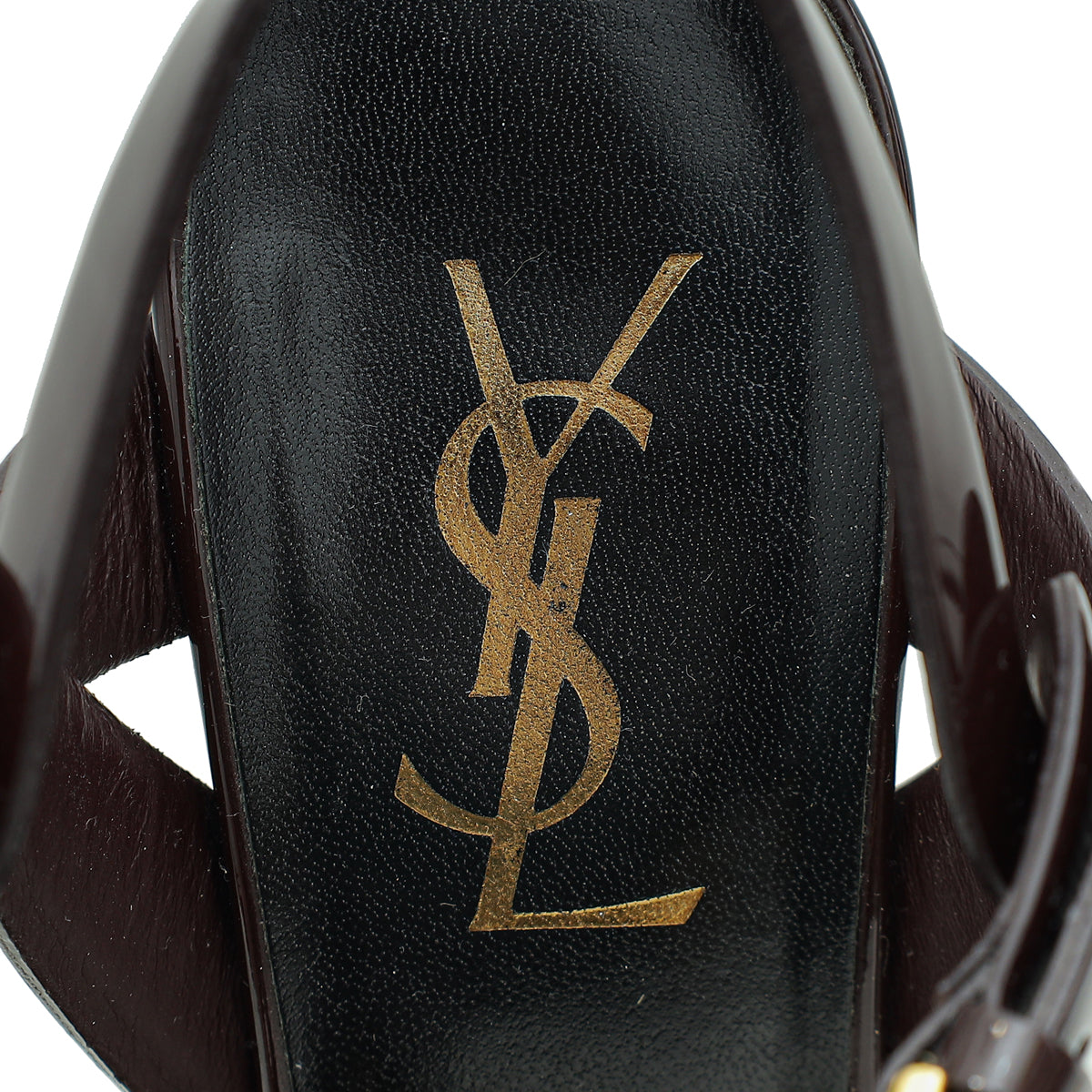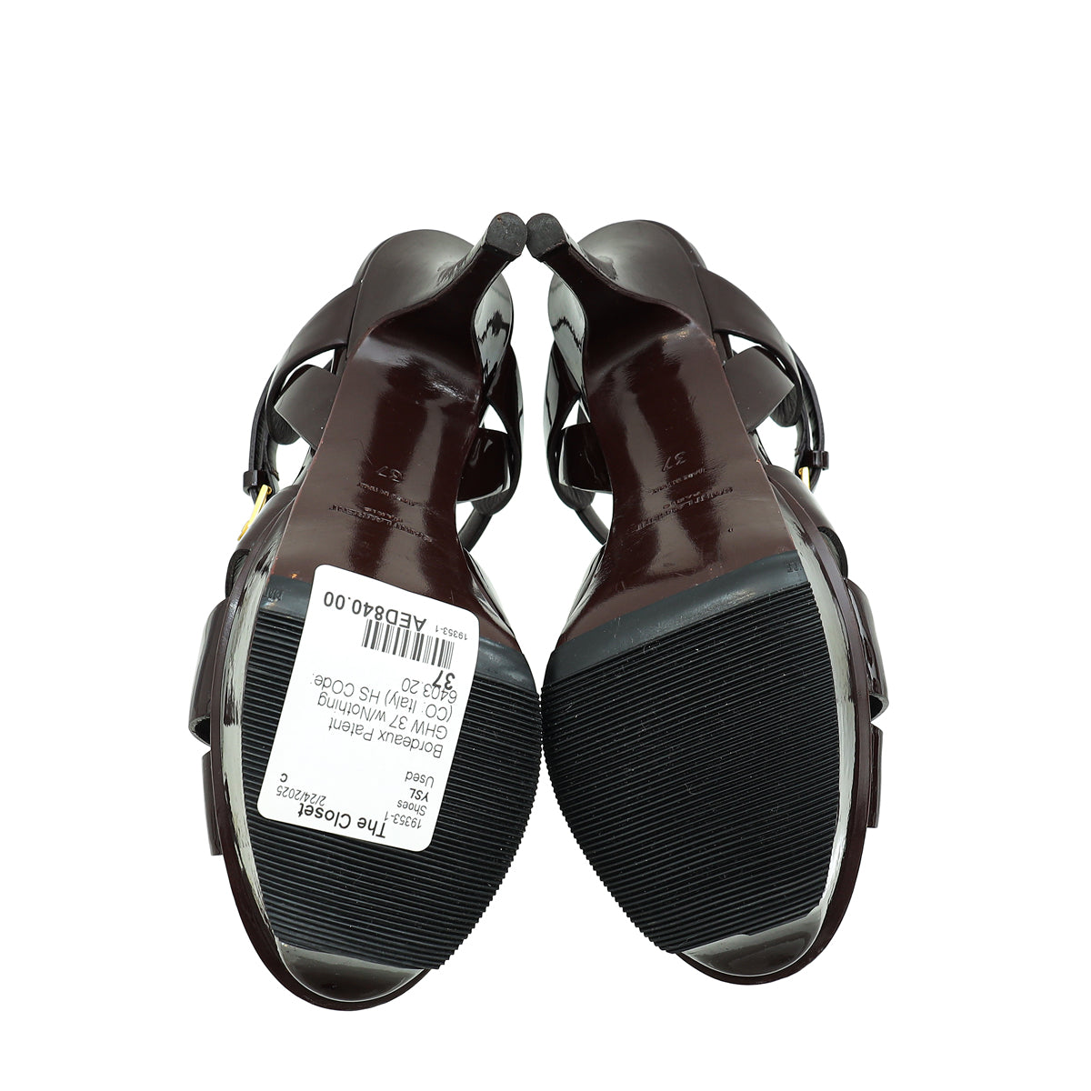 YSL Bordeaux Mid Heel Tribute Sandals 37