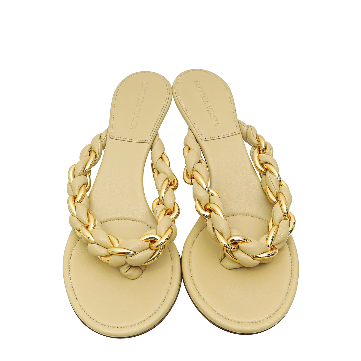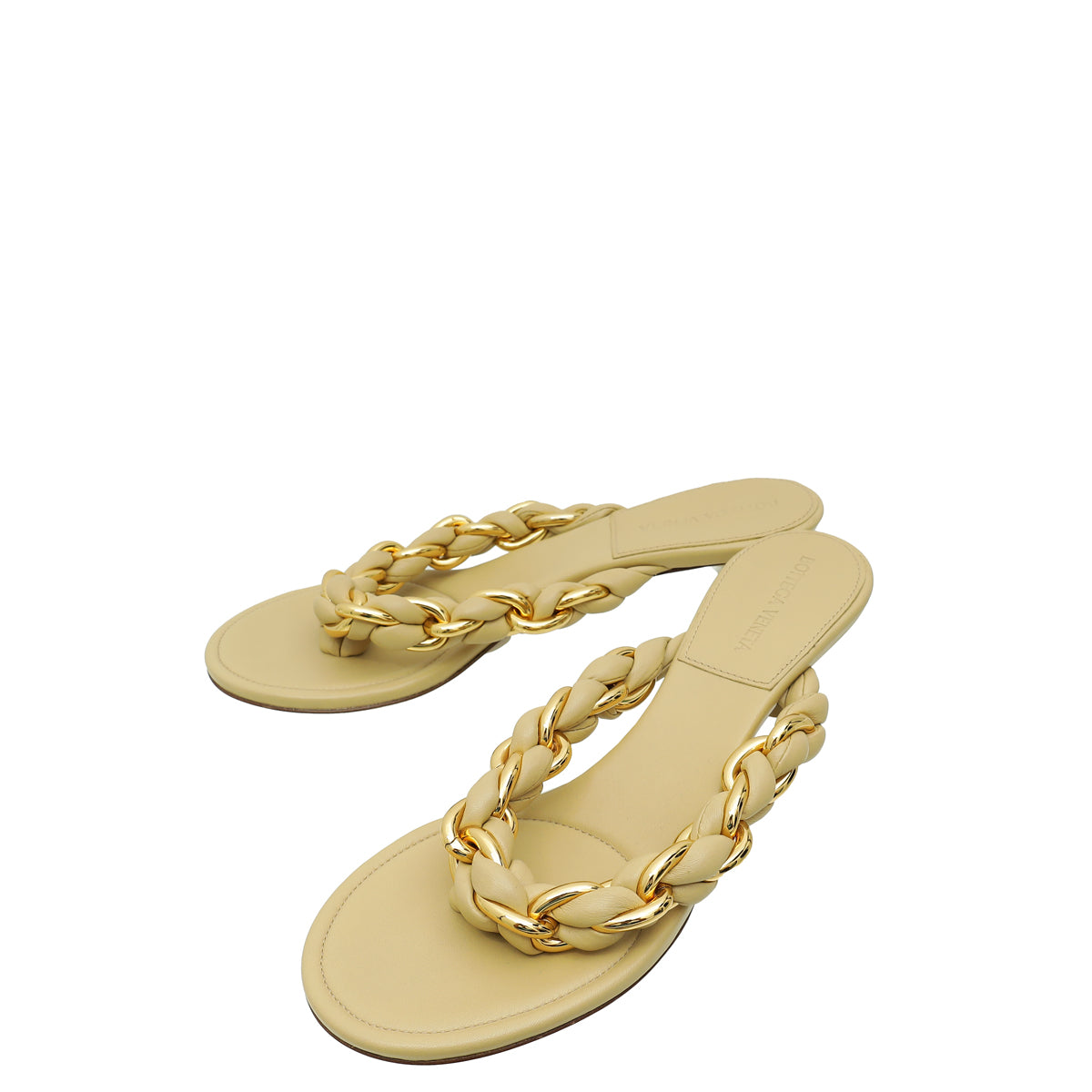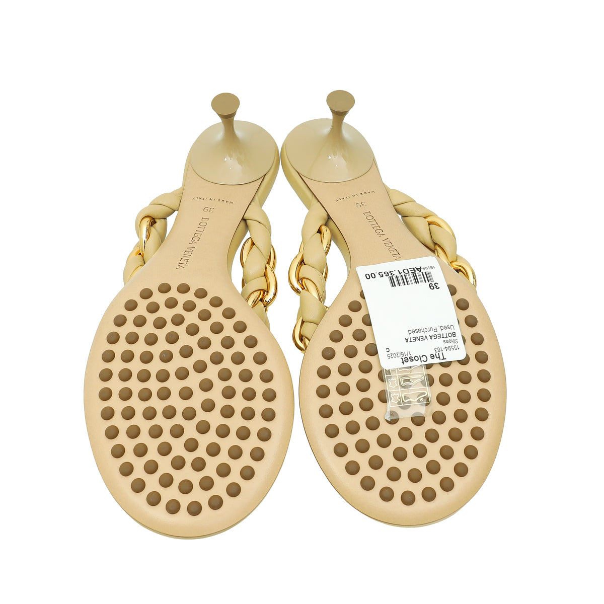 Bottega Veneta Beige Braided Leather & Chain Thong Sandals 39