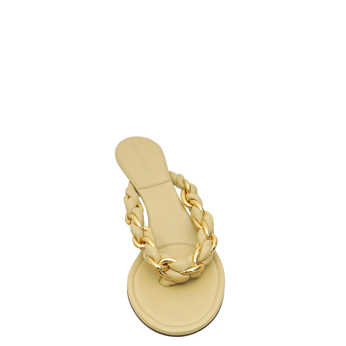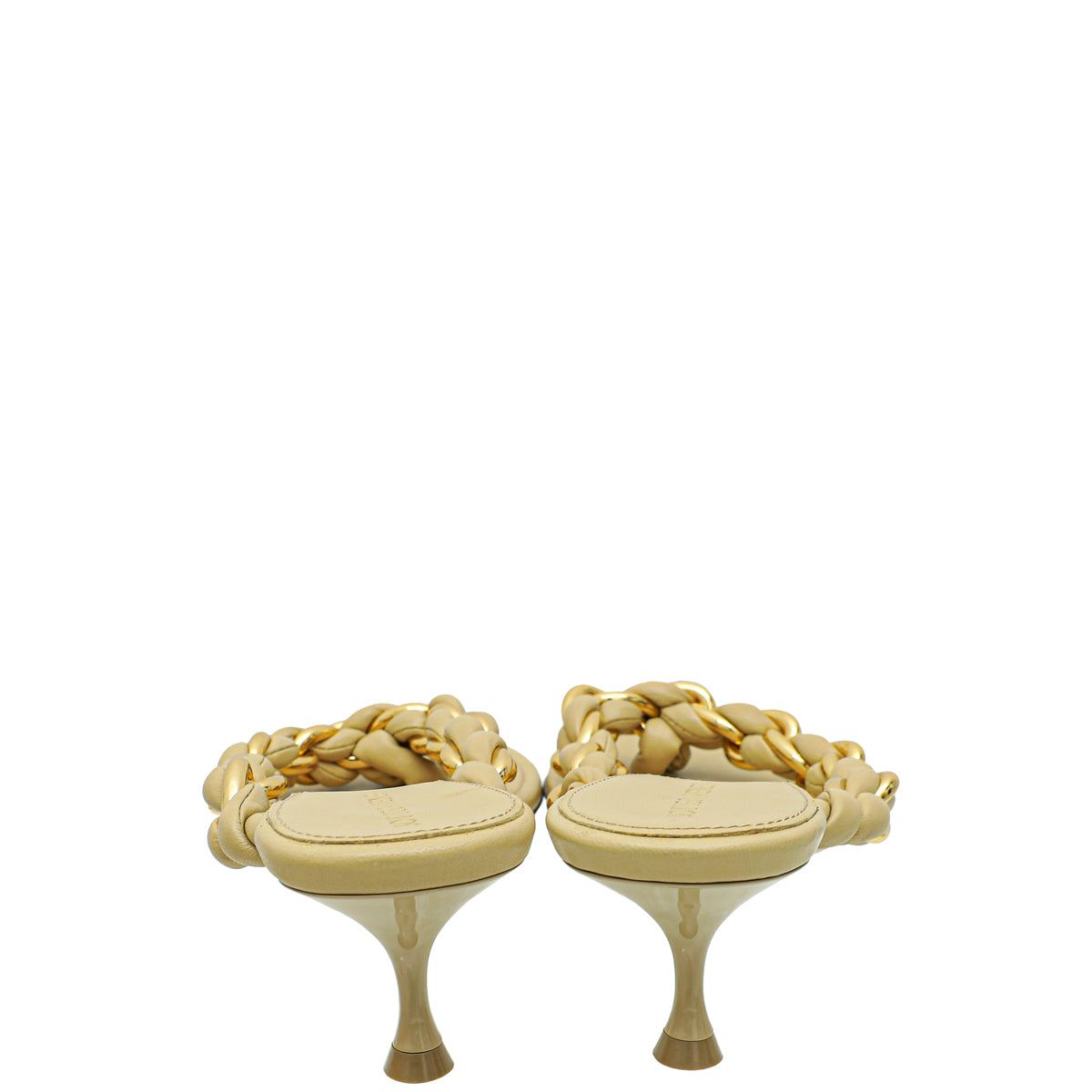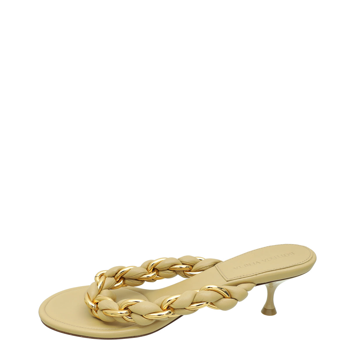 Bottega Veneta Beige Braided Leather & Chain Thong Sandals 39