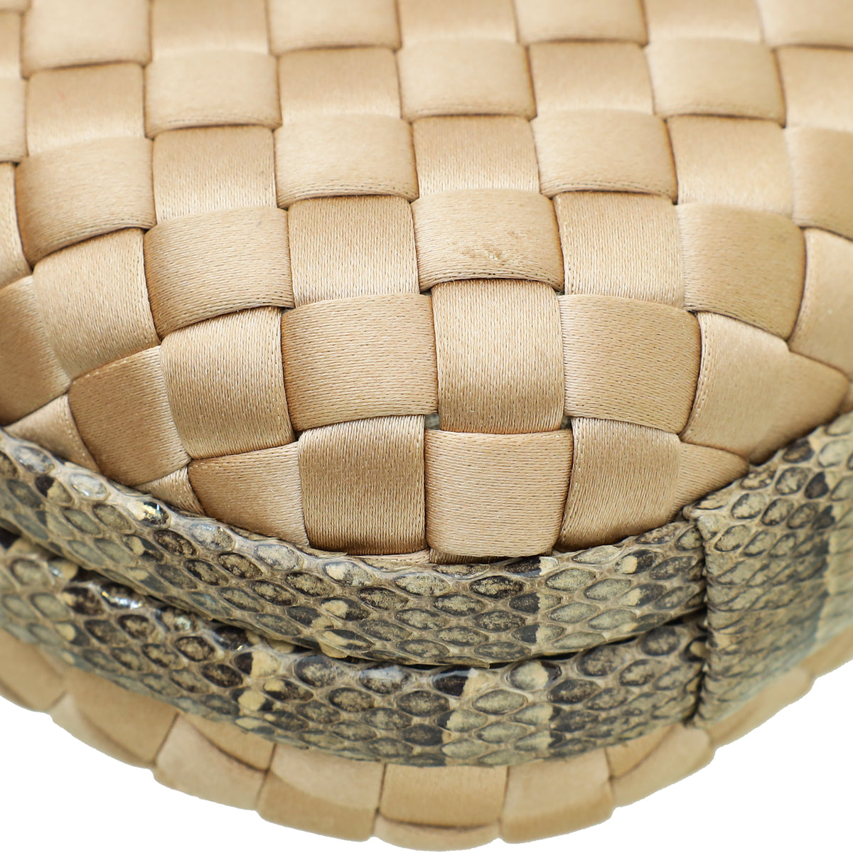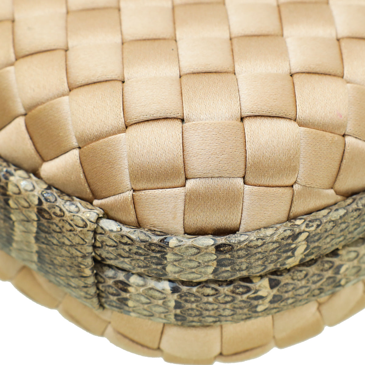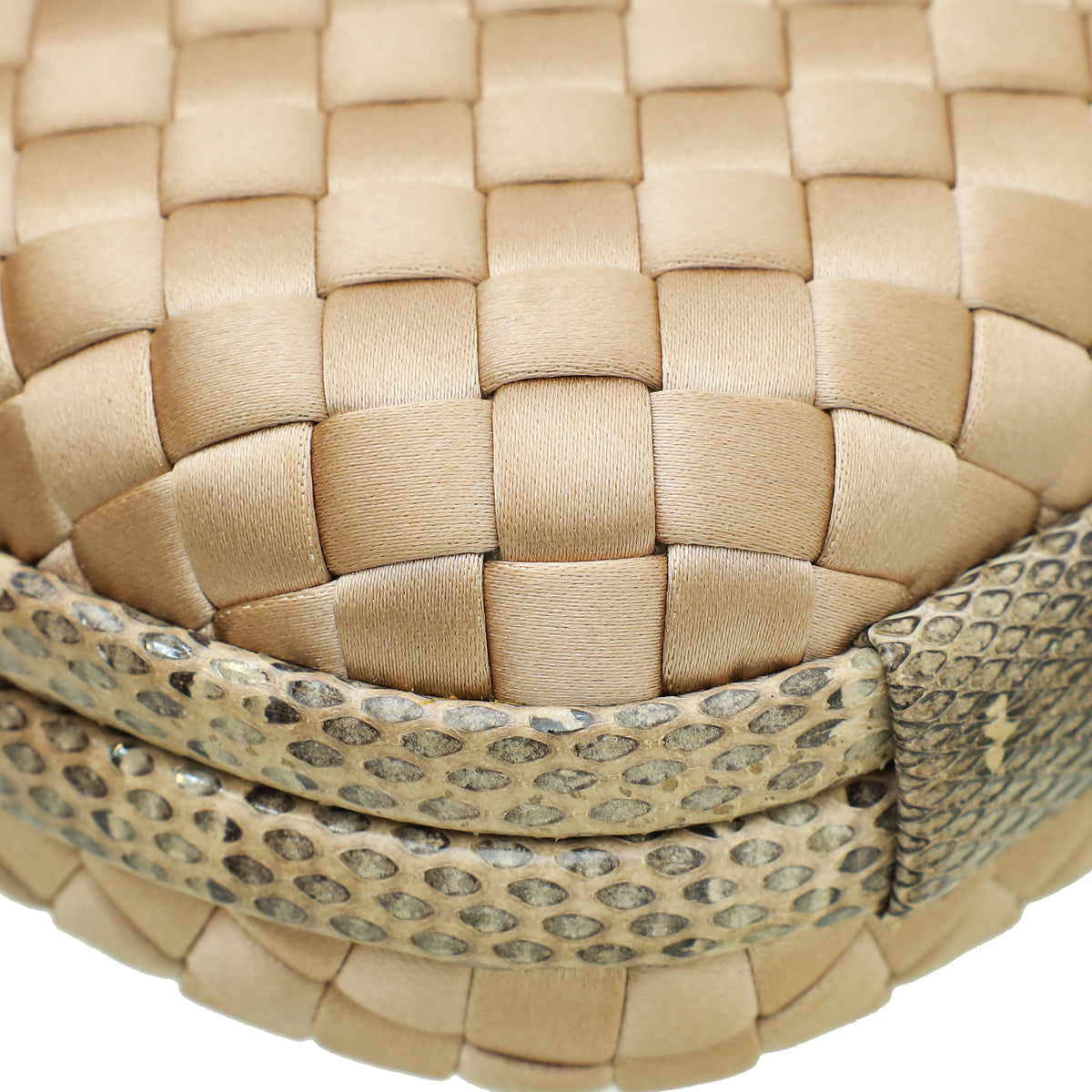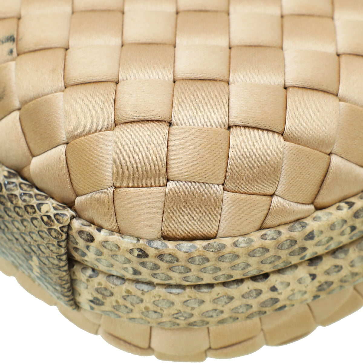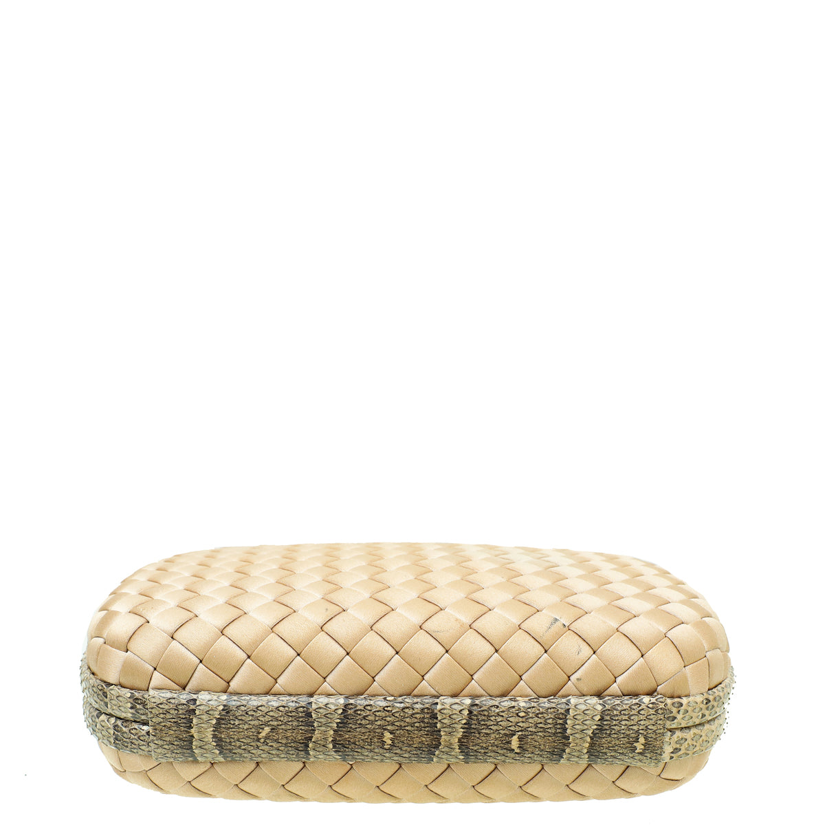 Bottega Veneta Beige Knot Intrecciato Silk Chain Clutch Bag