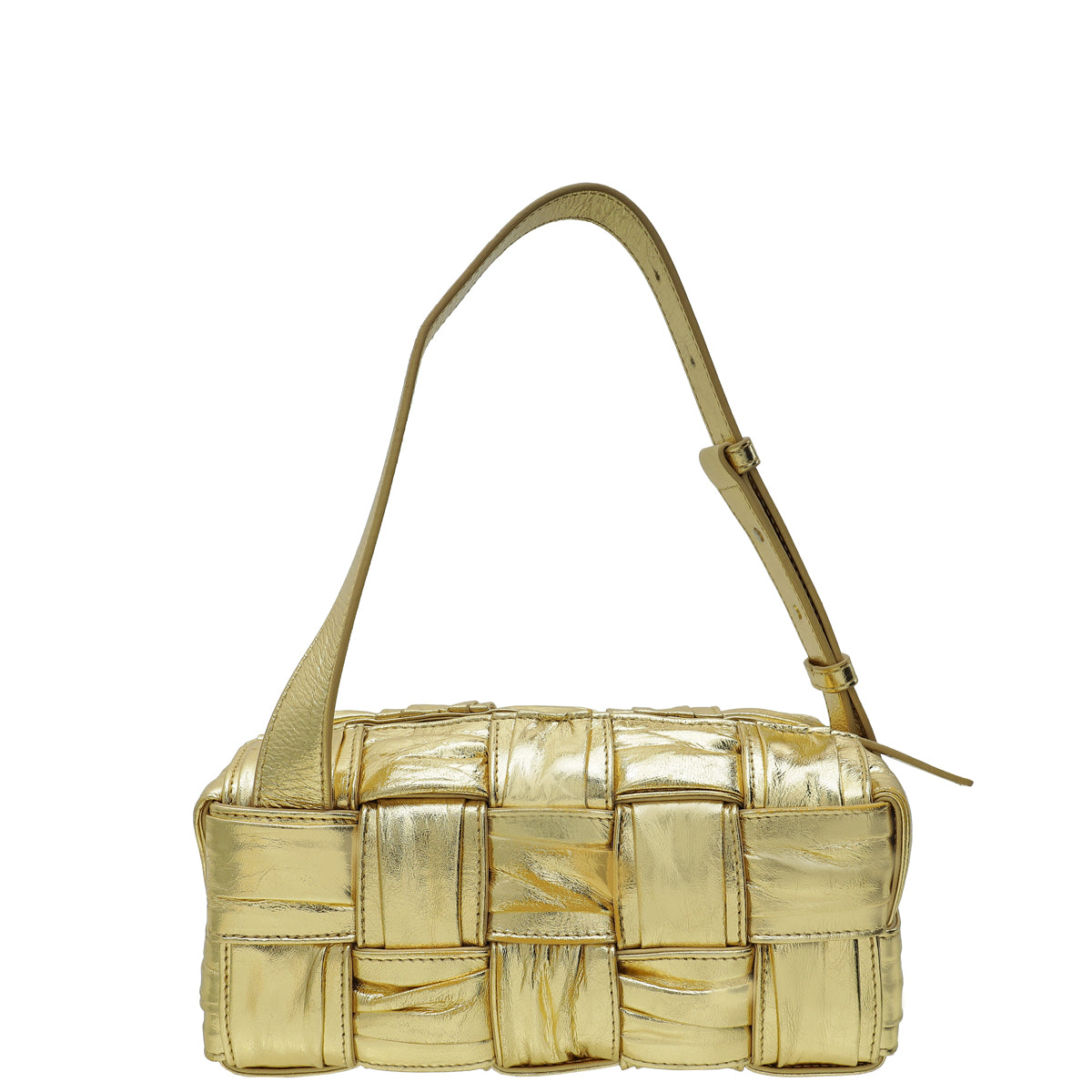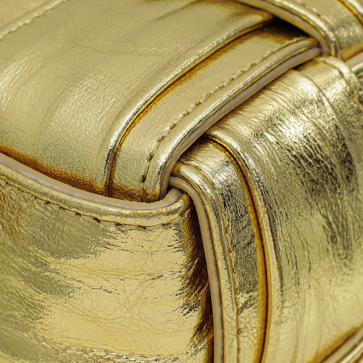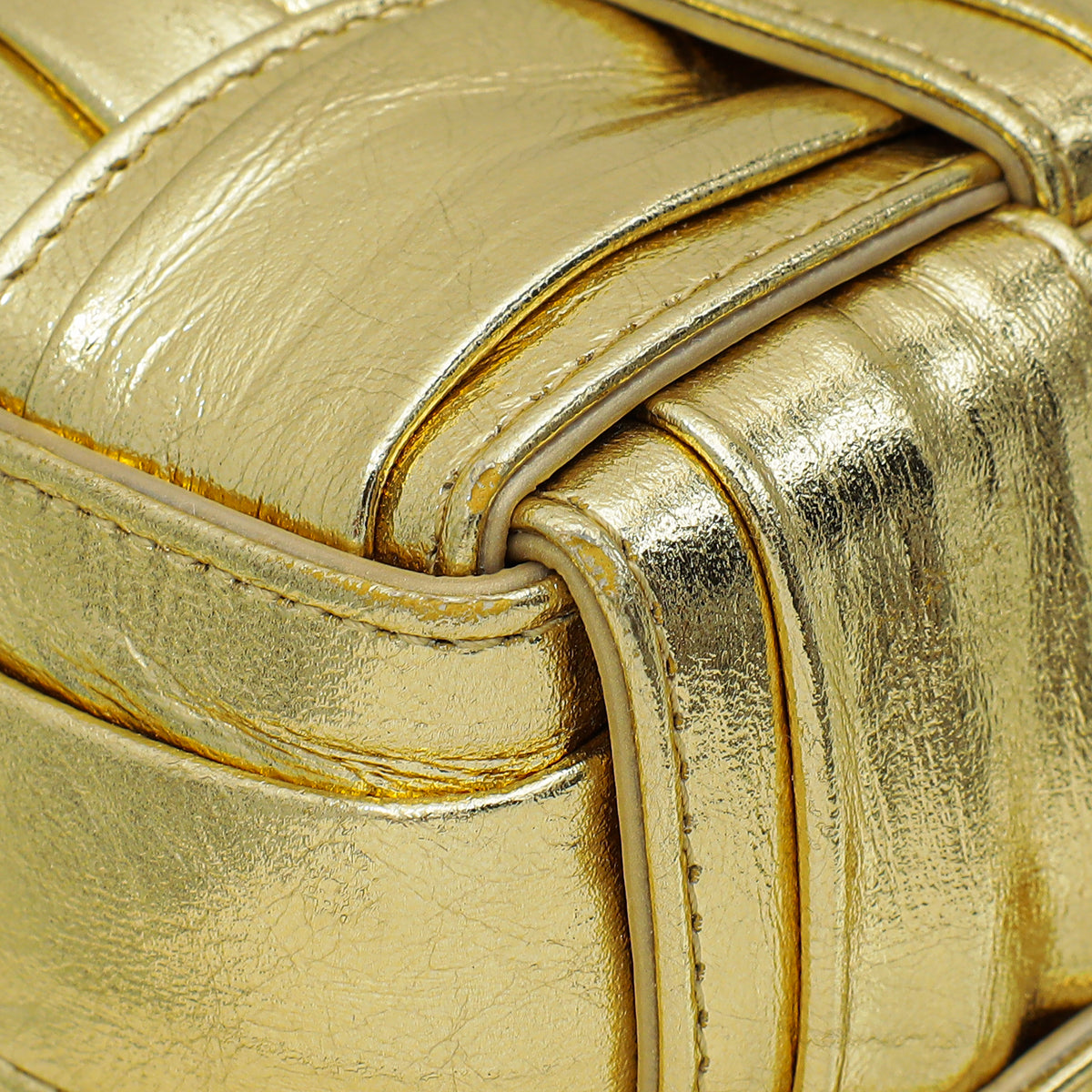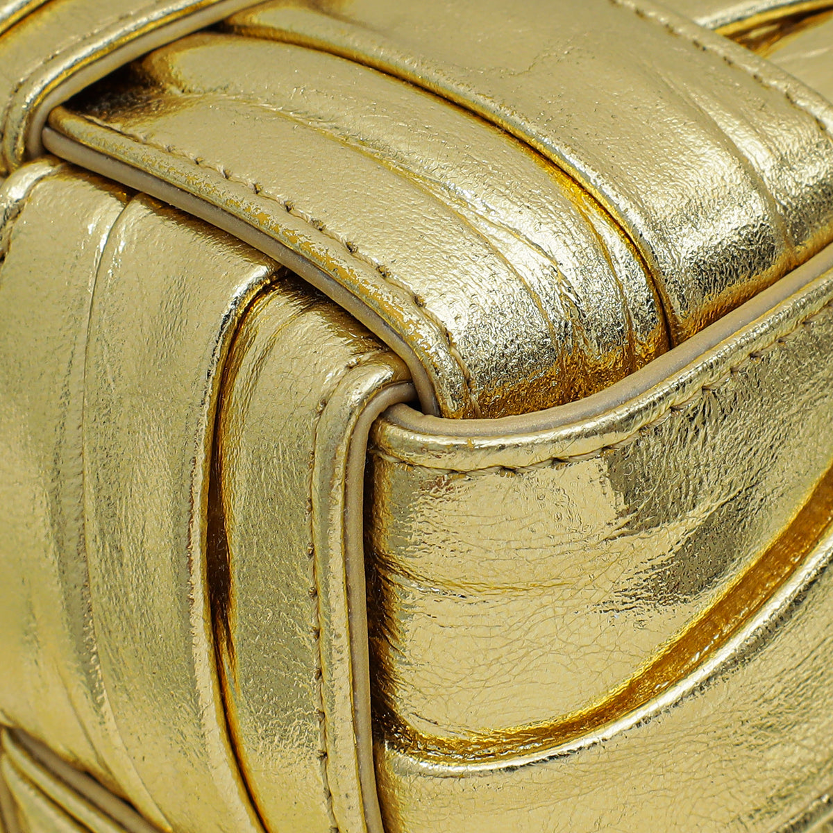 Bottega Veneta Metallic Gold Laminated Brick Cassette Small Shoulder Bag