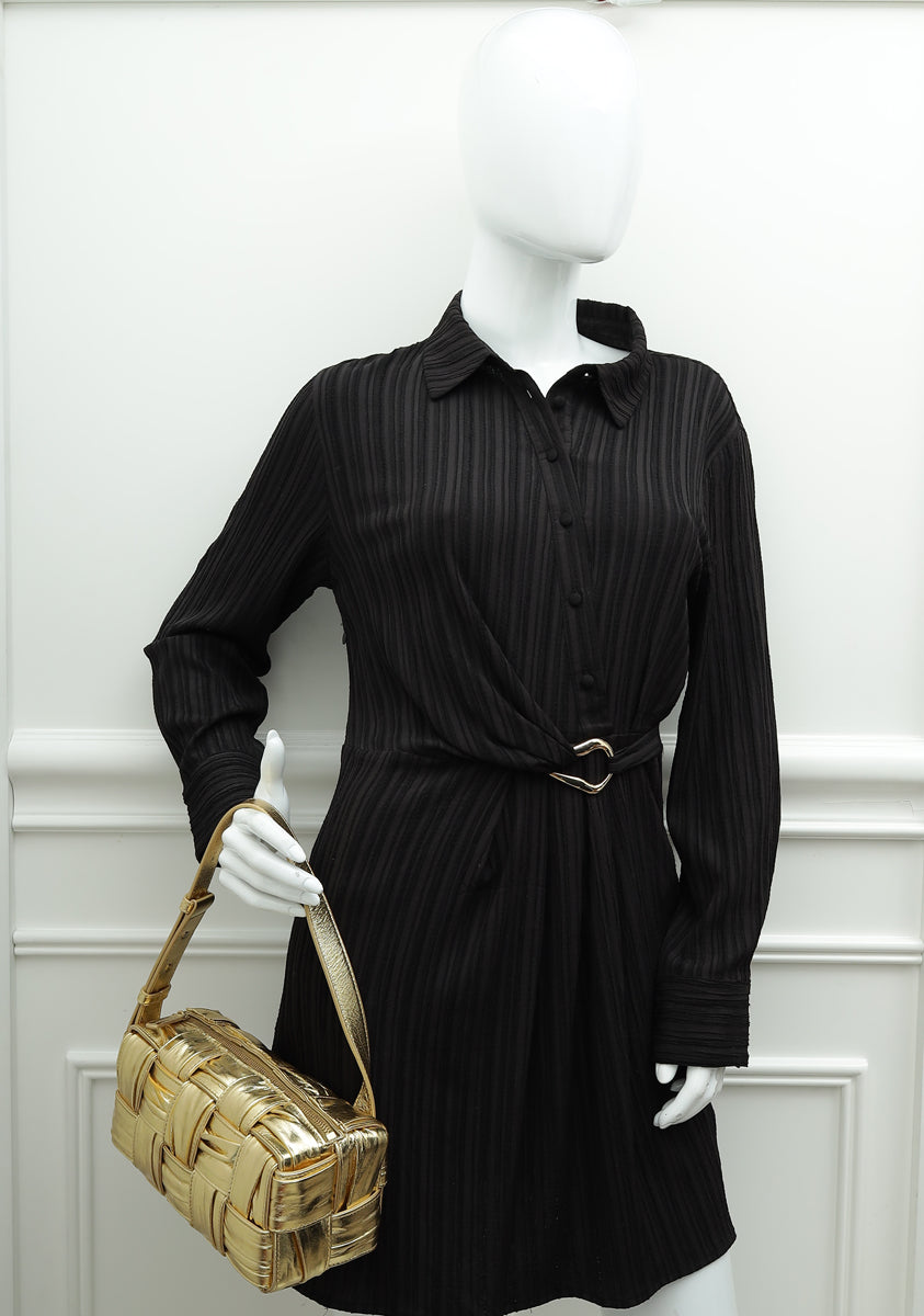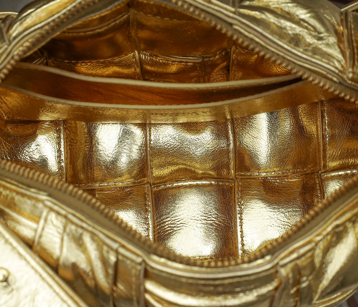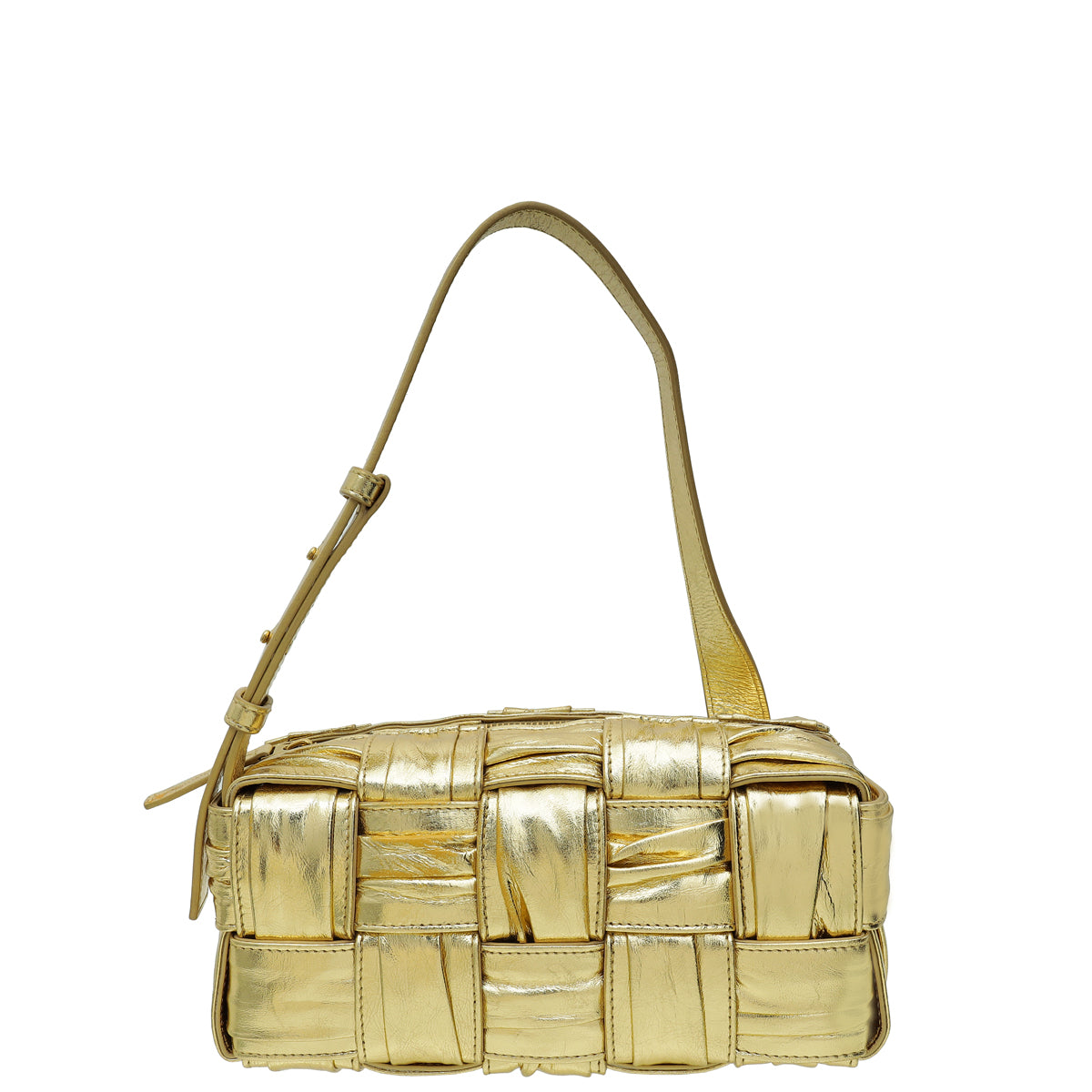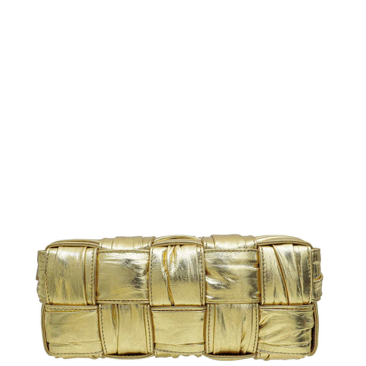 Bottega Veneta Metallic Gold Laminated Brick Cassette Small Shoulder Bag