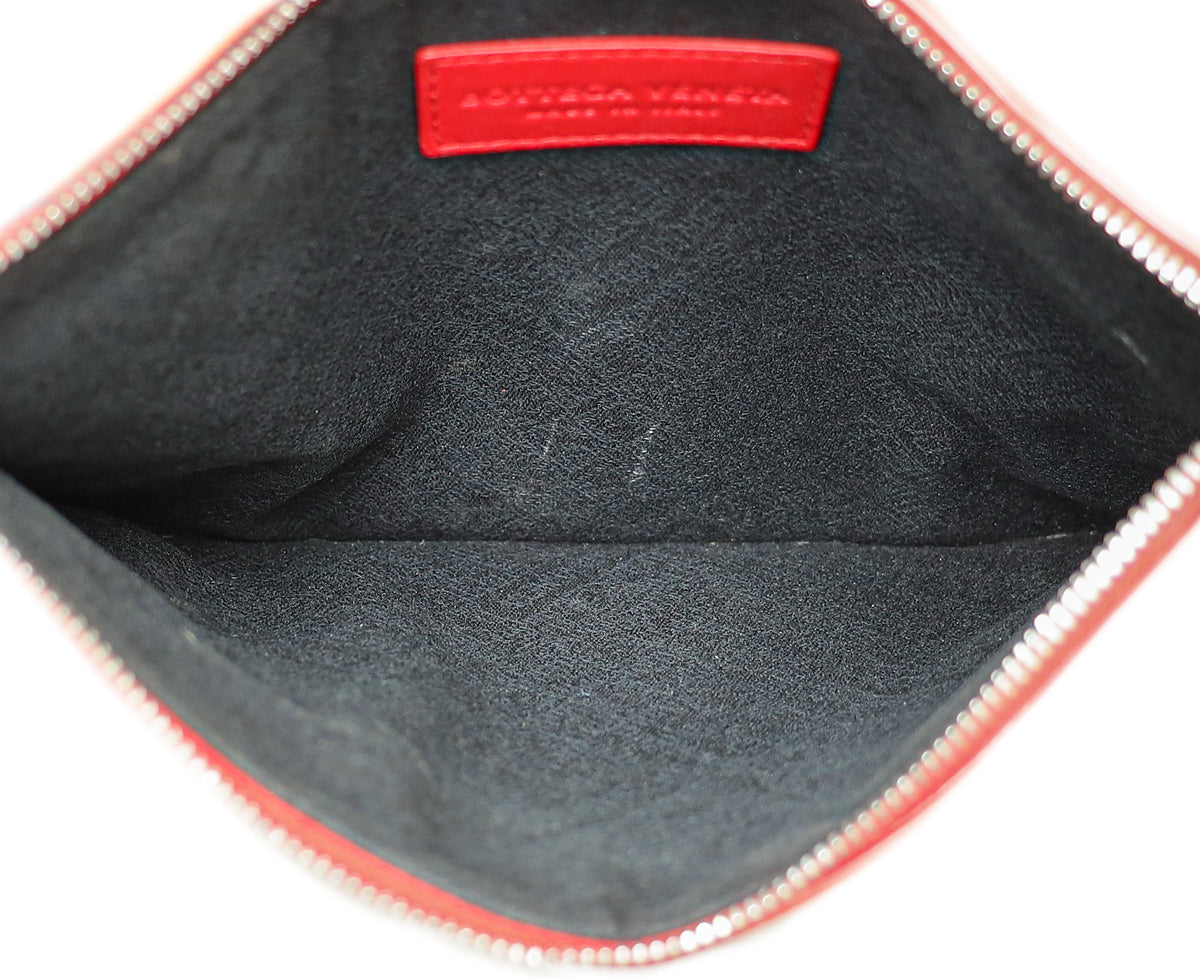 Bottega Veneta Red Maxi Intrecciato Cassette Wristlet Pouch
