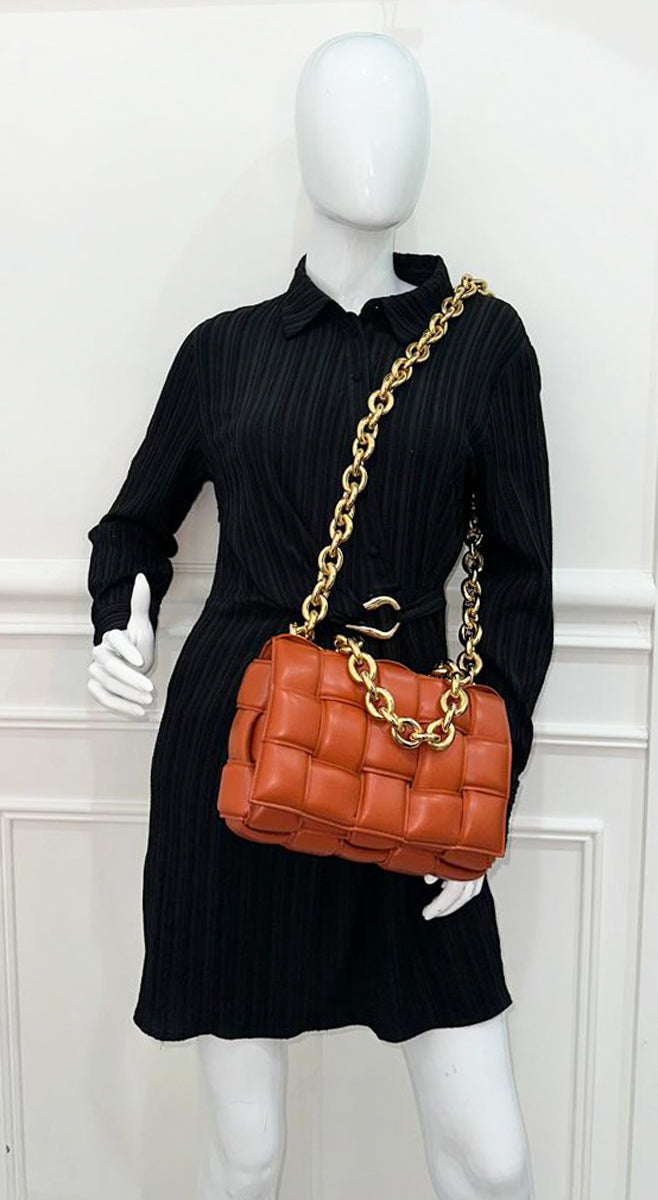 Bottega Veneta Rust Orange Padded Intrecciato Chain Cassette Bag