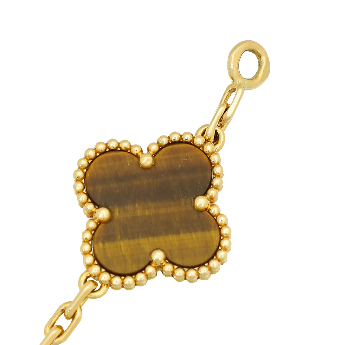 Van Cleef & Arpels 18K Yellow Gold Tiger's Eye 5 Motifs Vintage Alhambra Bracelet