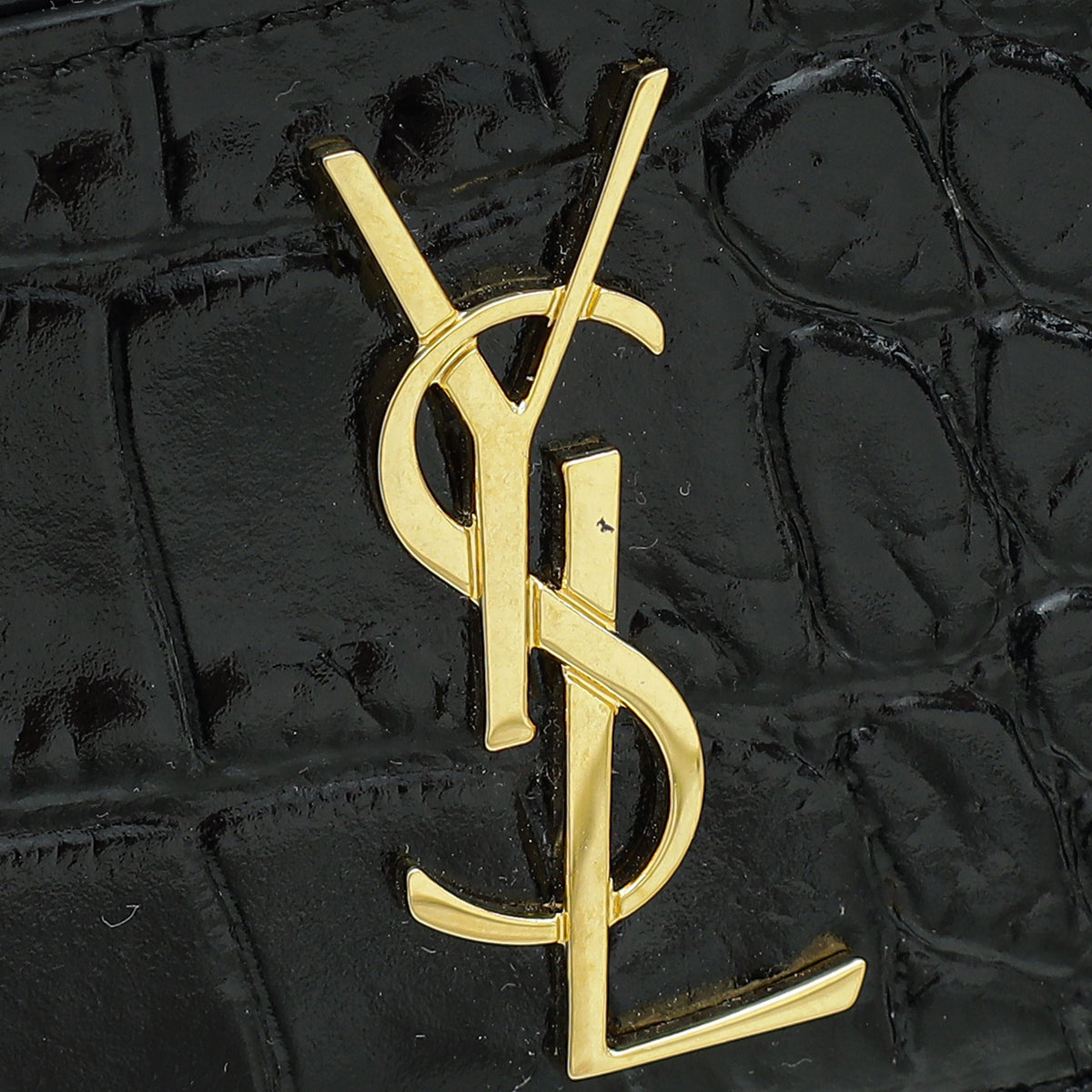YSL Black Croco Embossed Cassandre Card Case