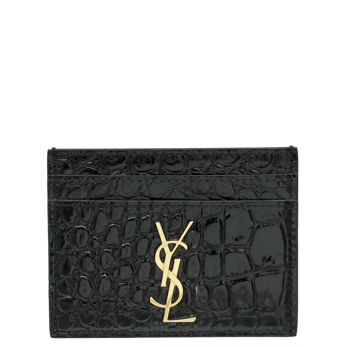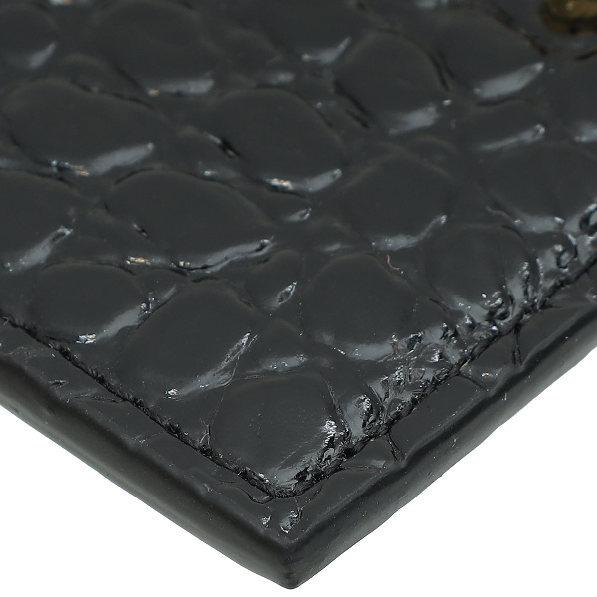 YSL Black Croco Embossed Cassandre Card Case