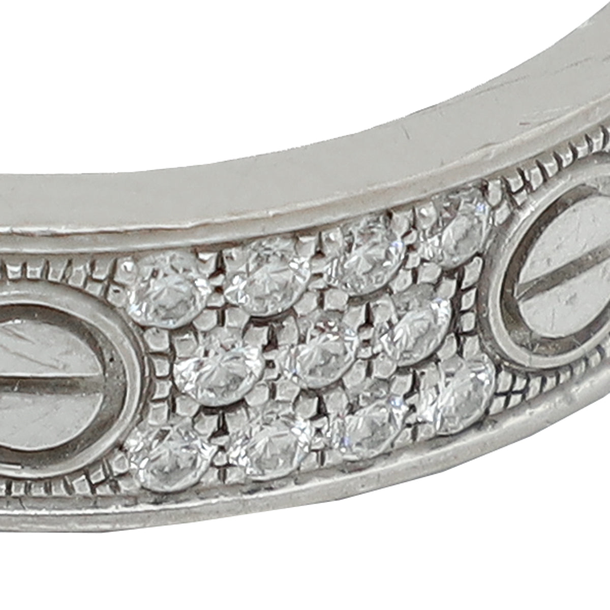 Cartier 18K White Gold Love Paved Diamond Small Model Ring 53
