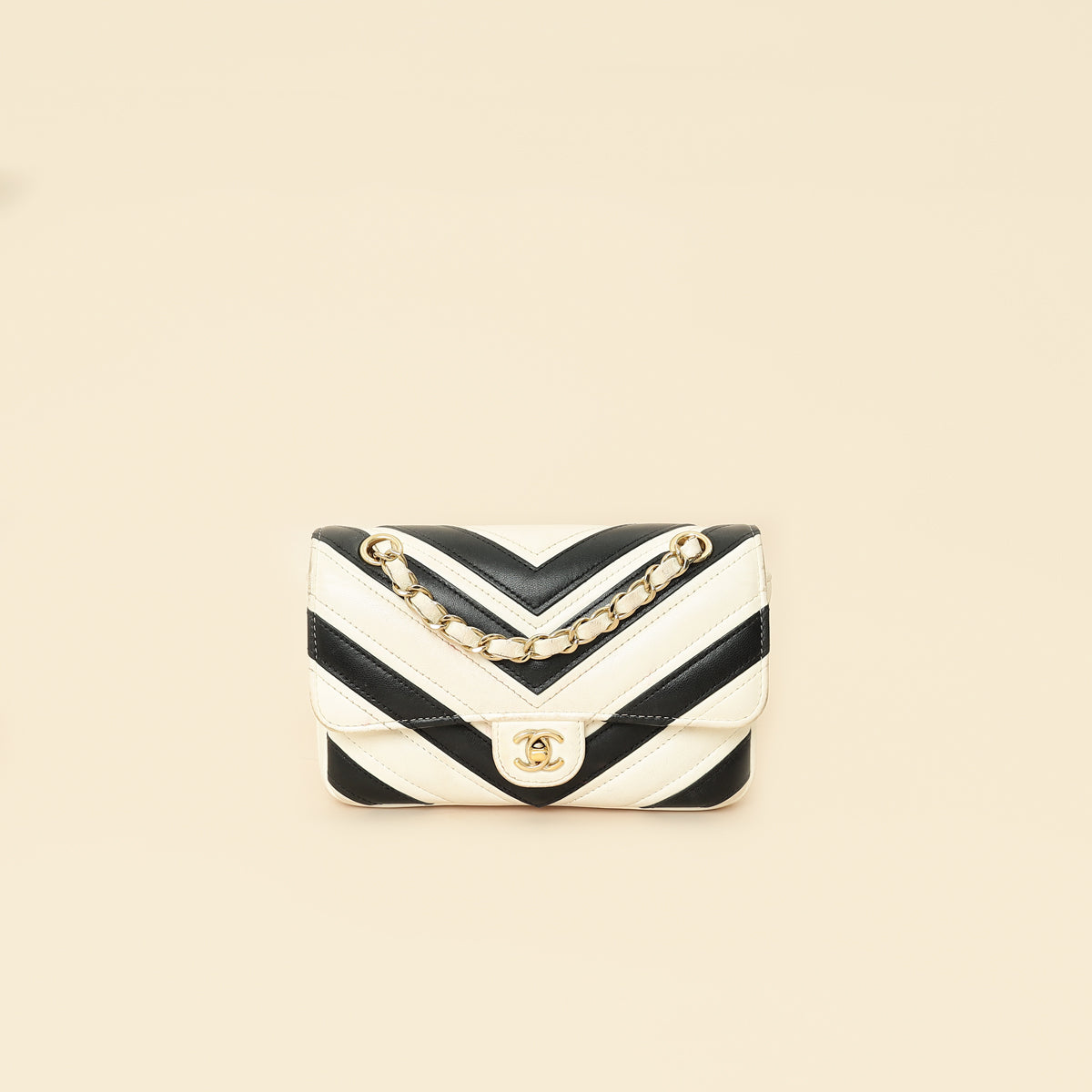 Chanel Bicolor Chevron Stitched Mini Flap Bag