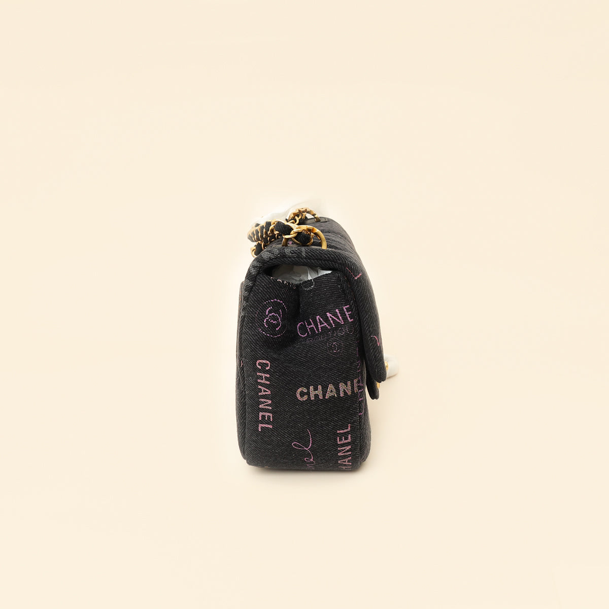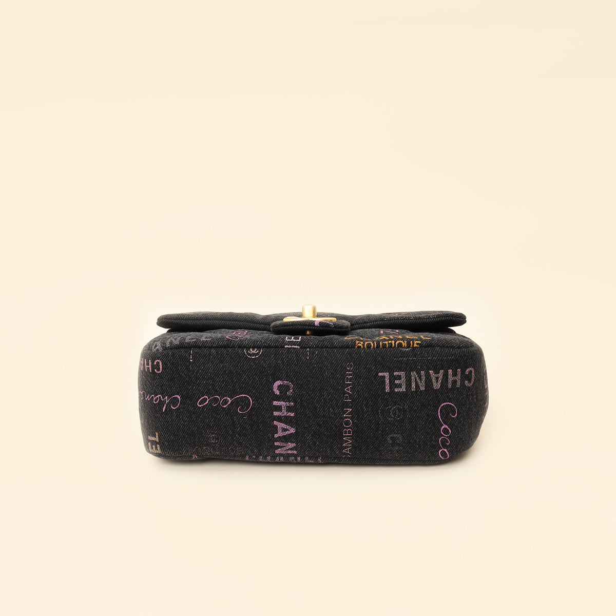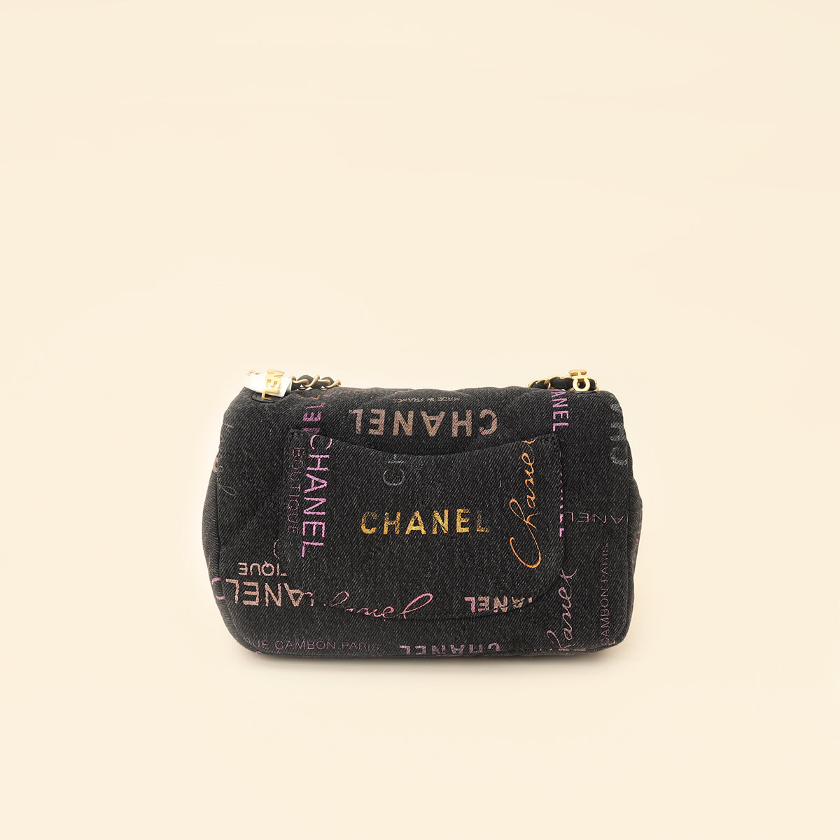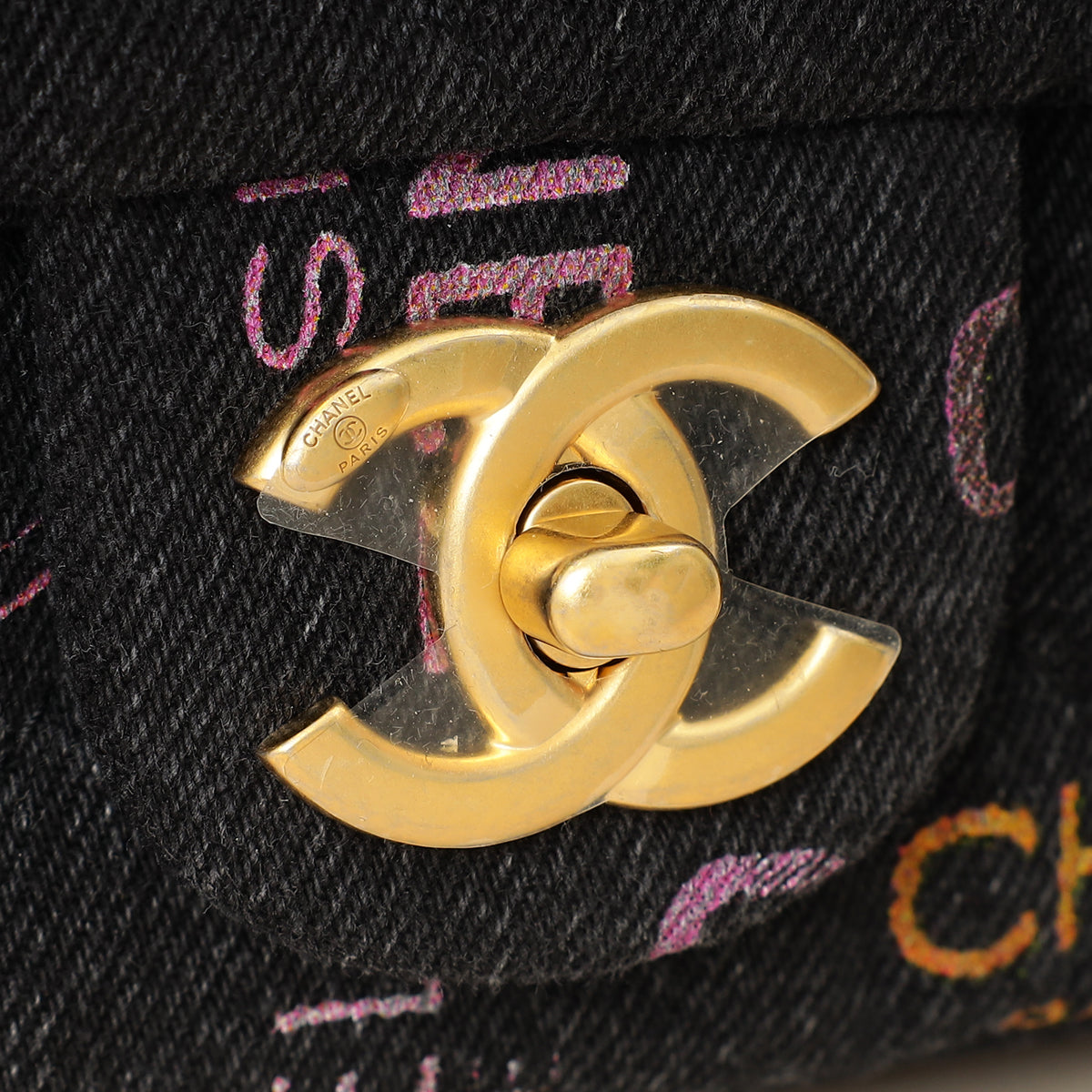 Chanel Black Multicolor CC Denim Logo Print Flap Bag-Chanel-THE CLOSET