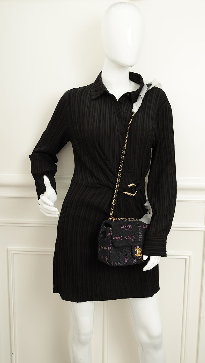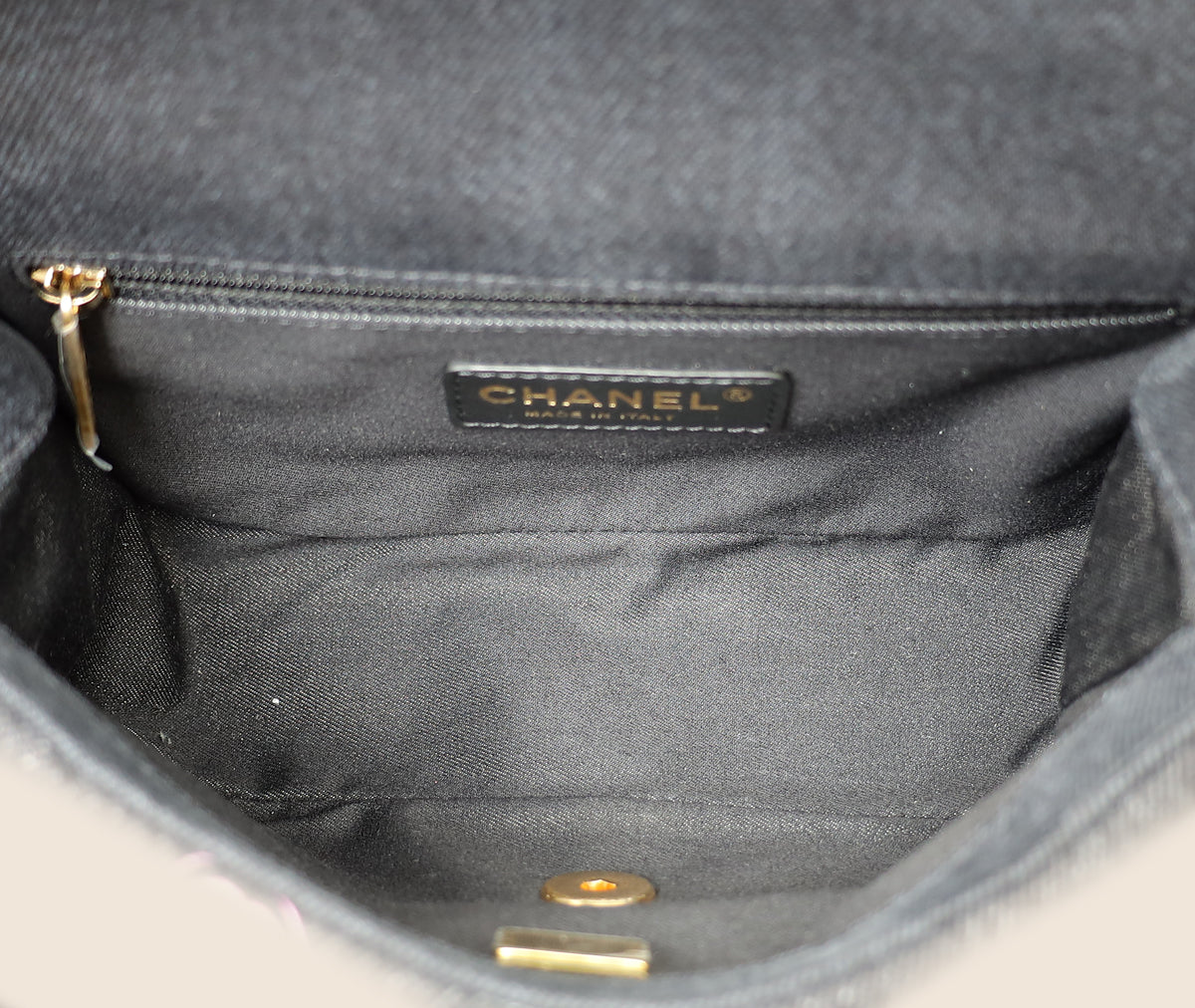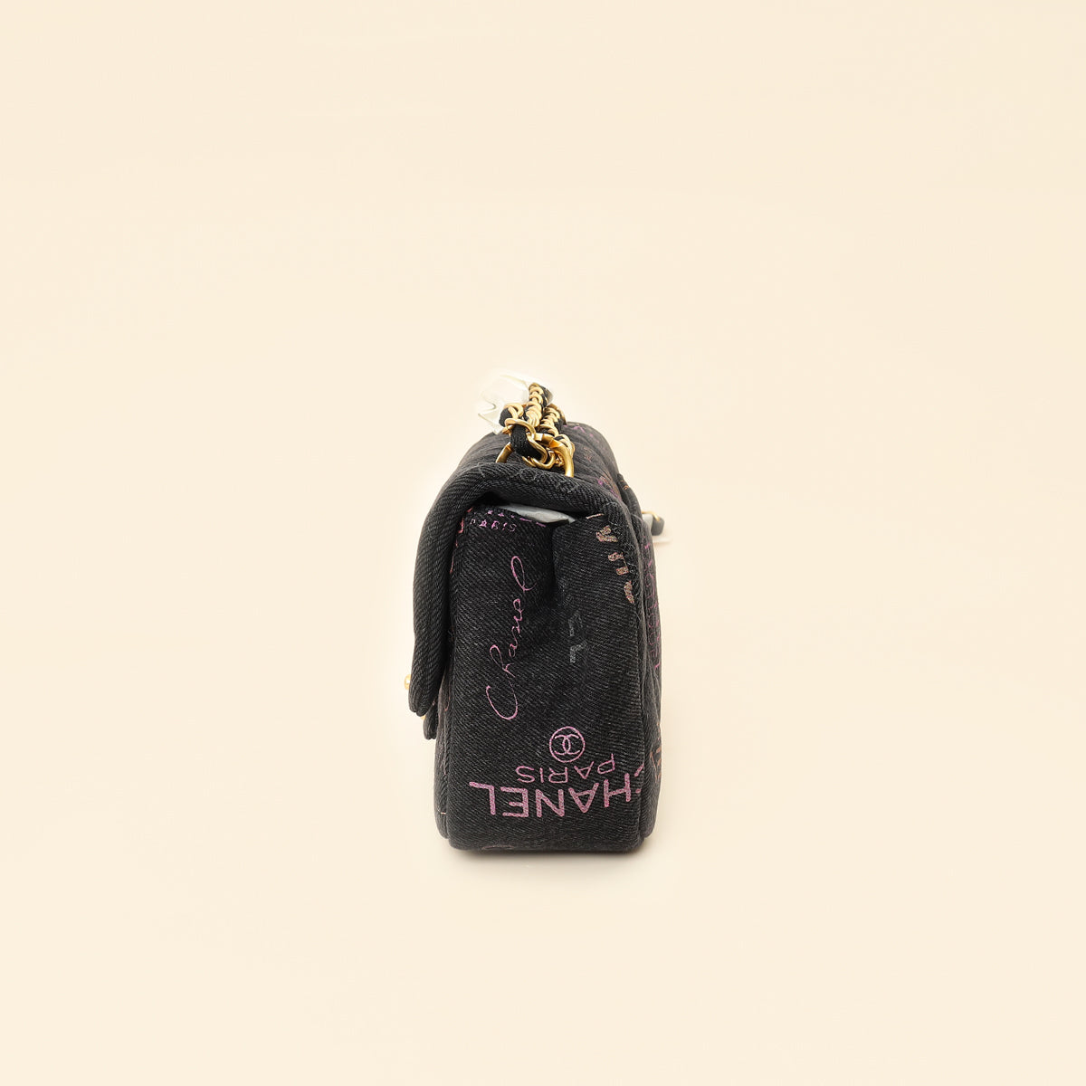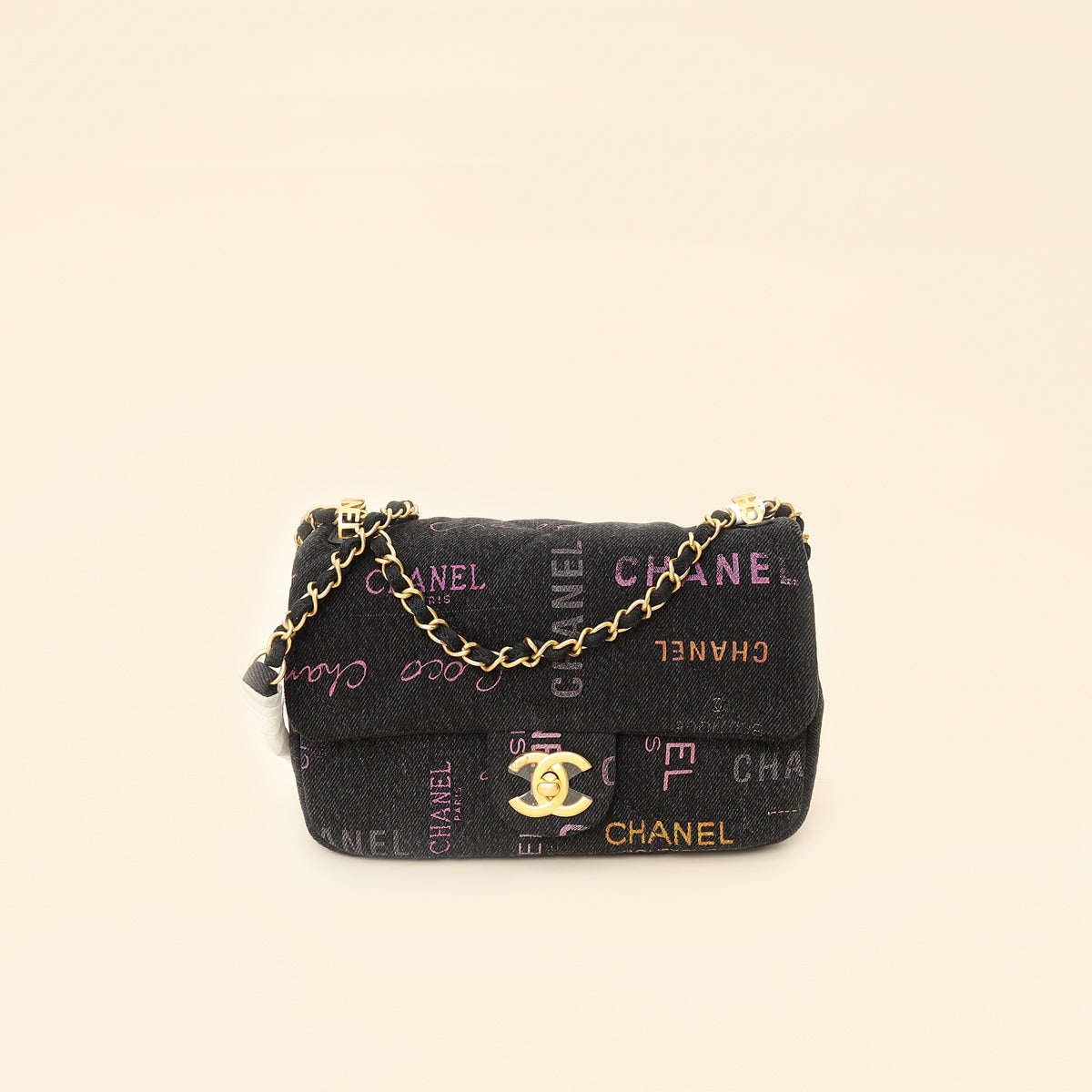 Chanel Black Multicolor CC Denim Logo Print Flap Bag-Chanel-THE CLOSET